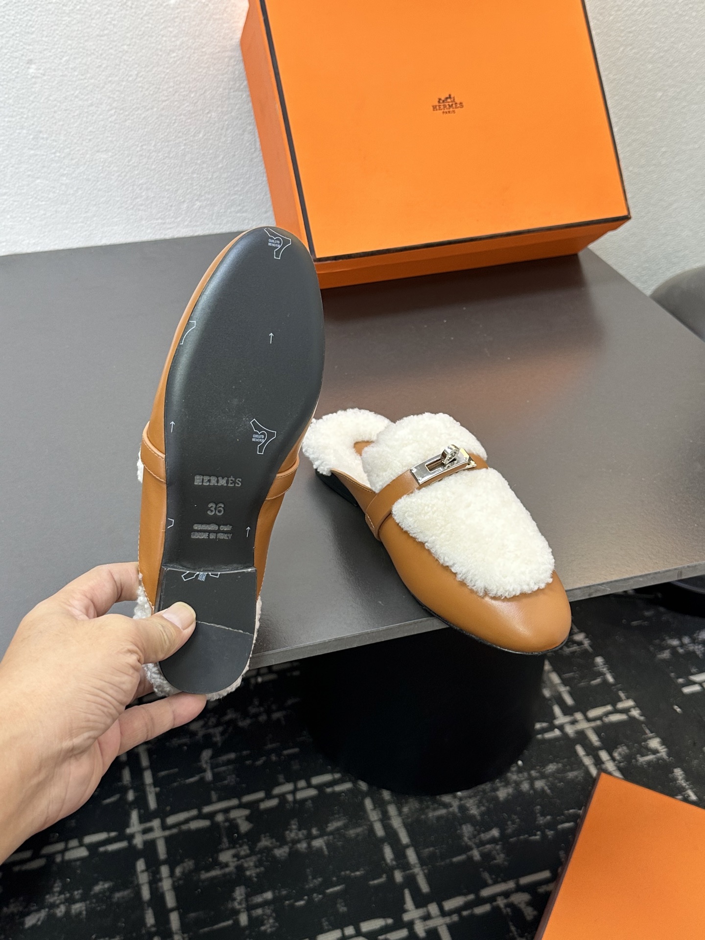这款鞋子是AAAAA 1:1 质量 (非常棒). 使用了和原版一模一样的材料. 商标部分也保持了和爱马仕/Hermes一样. 图片拍摄是实物鞋子拍摄, 您所收到的实物保证和我们图片一模一样.
