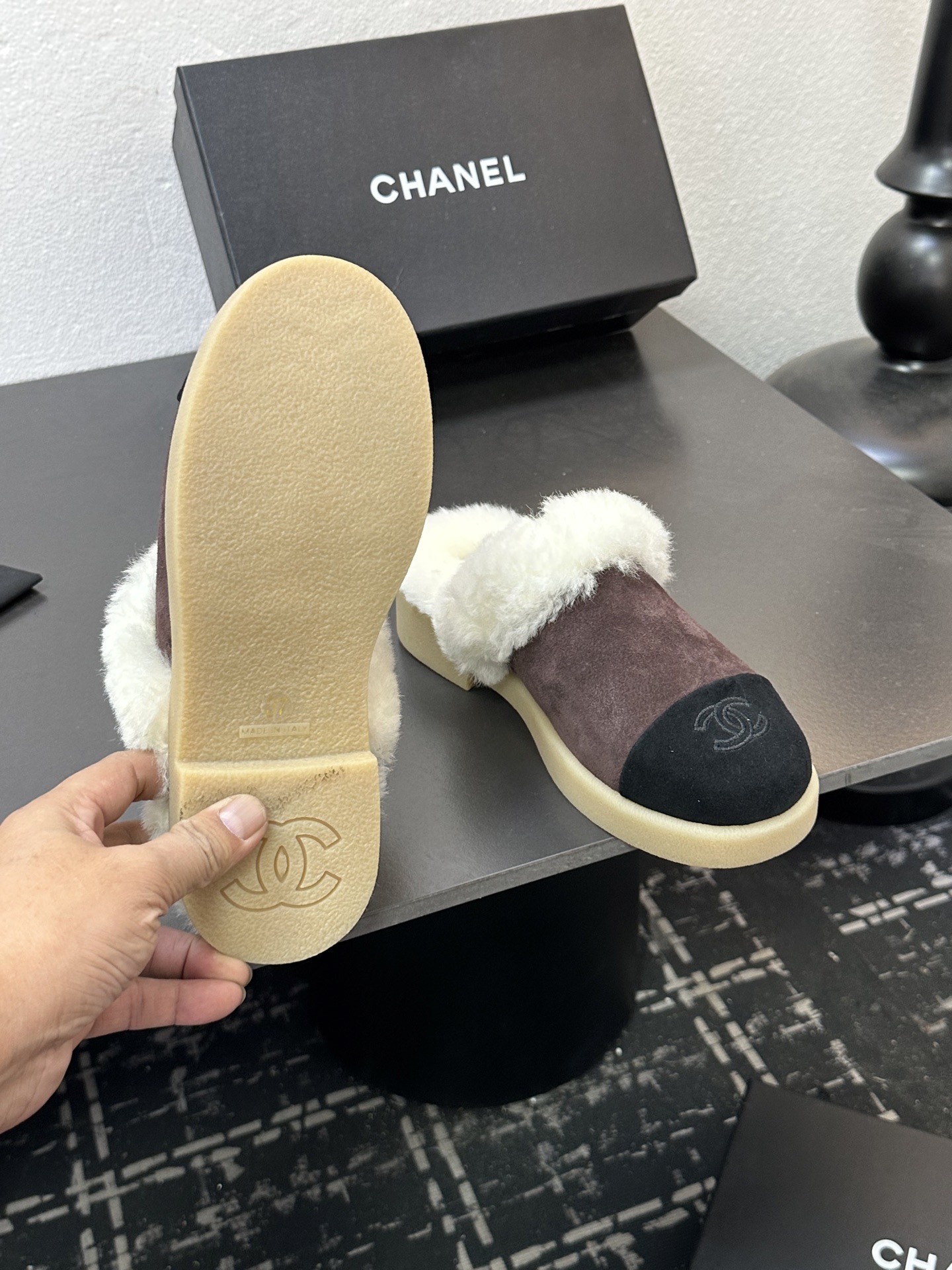 这款鞋子是AAAAA 1:1 质量 (非常棒). 使用了和原版一模一样的材料. 商标部分也保持了和香奈儿/Chanel一样. 图片拍摄是实物鞋子拍摄, 您所收到的实物保证和我们图片一模一样.