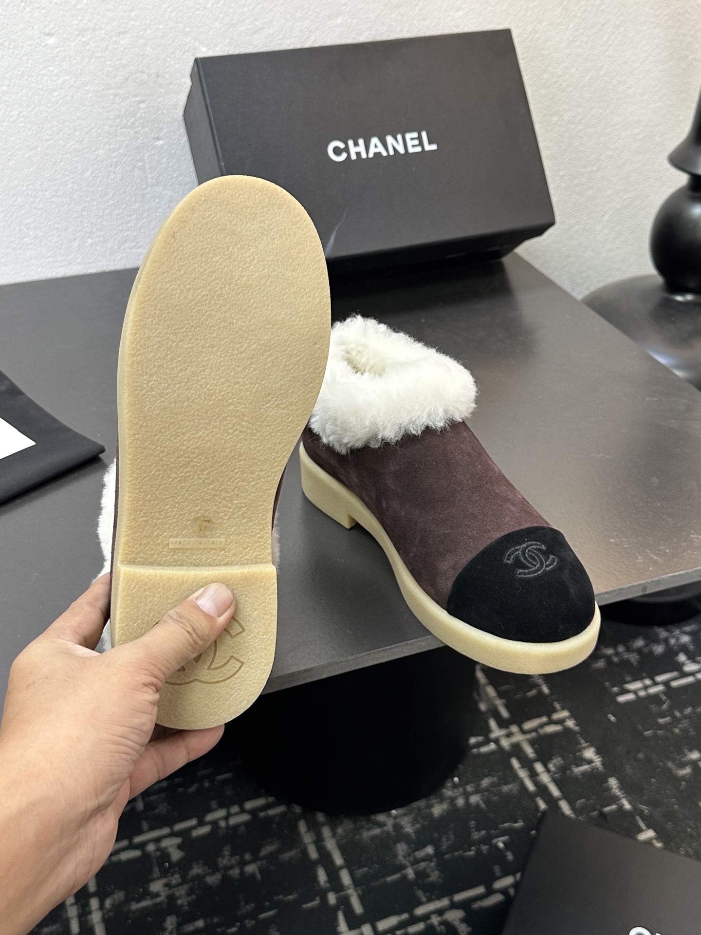 这款鞋子是AAAAA 1:1 质量 (非常棒). 使用了和原版一模一样的材料. 商标部分也保持了和香奈儿/Chanel一样. 图片拍摄是实物鞋子拍摄, 您所收到的实物保证和我们图片一模一样.