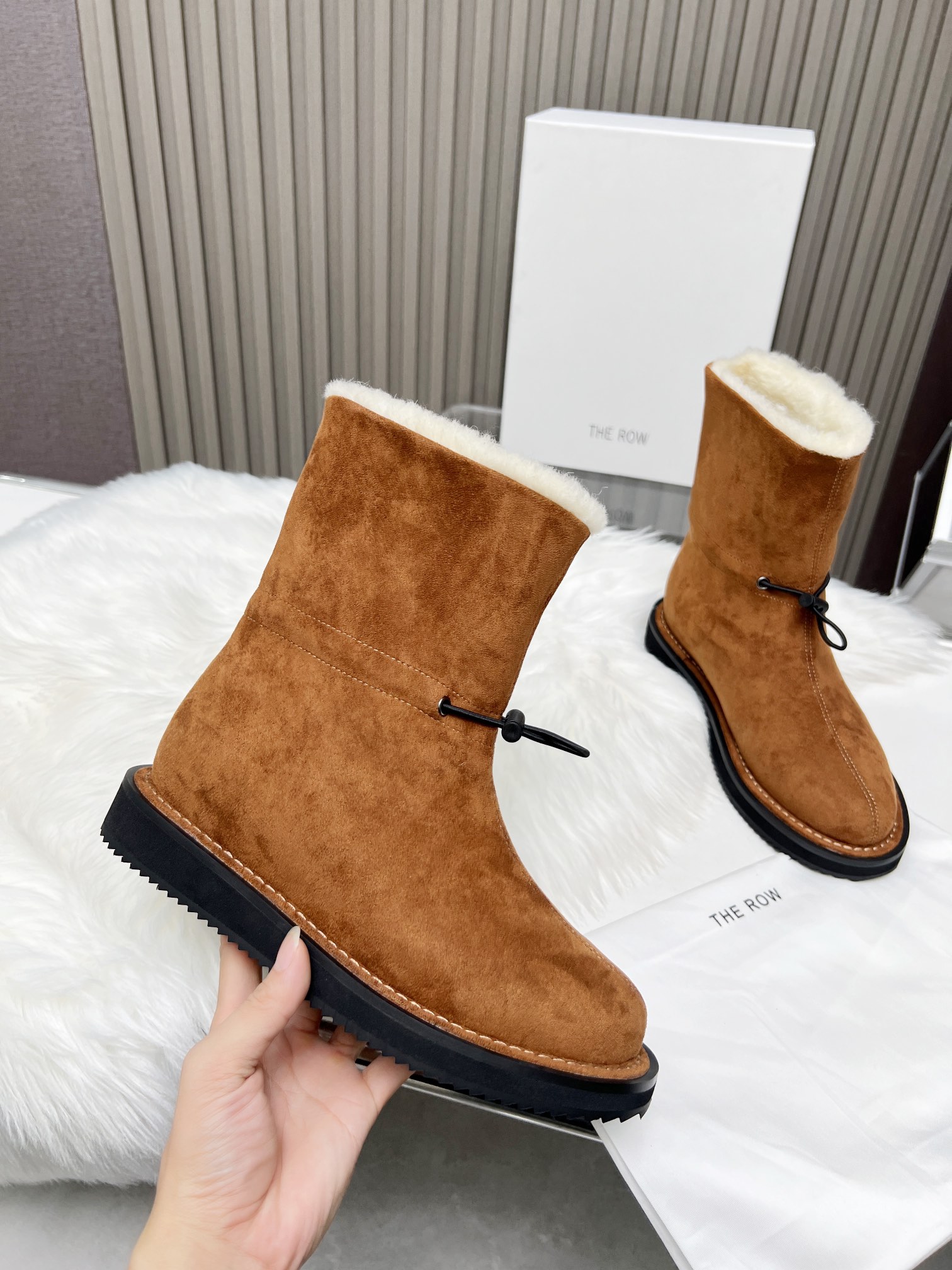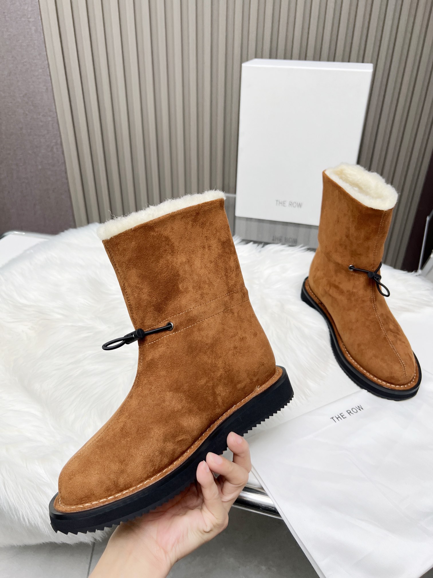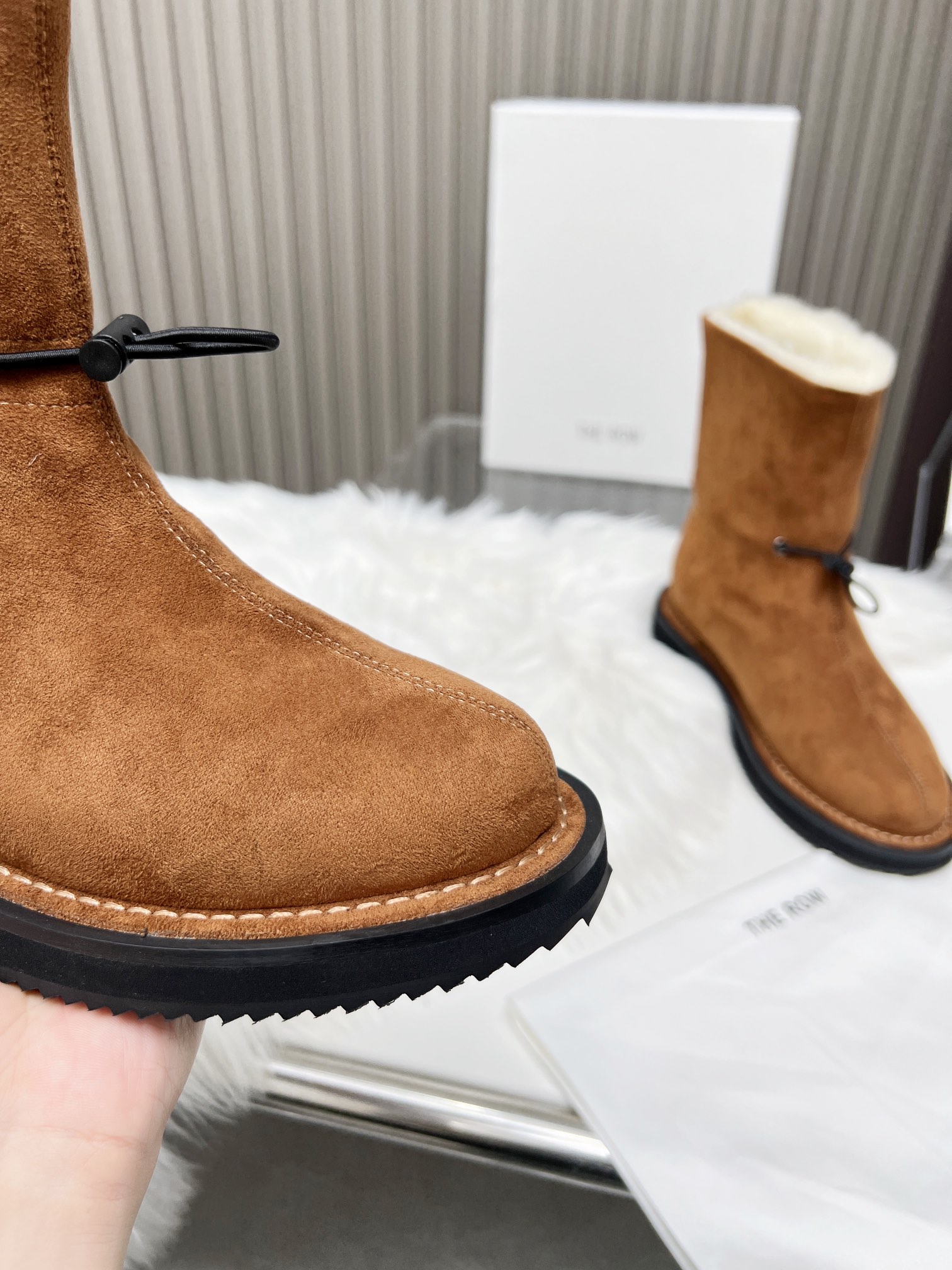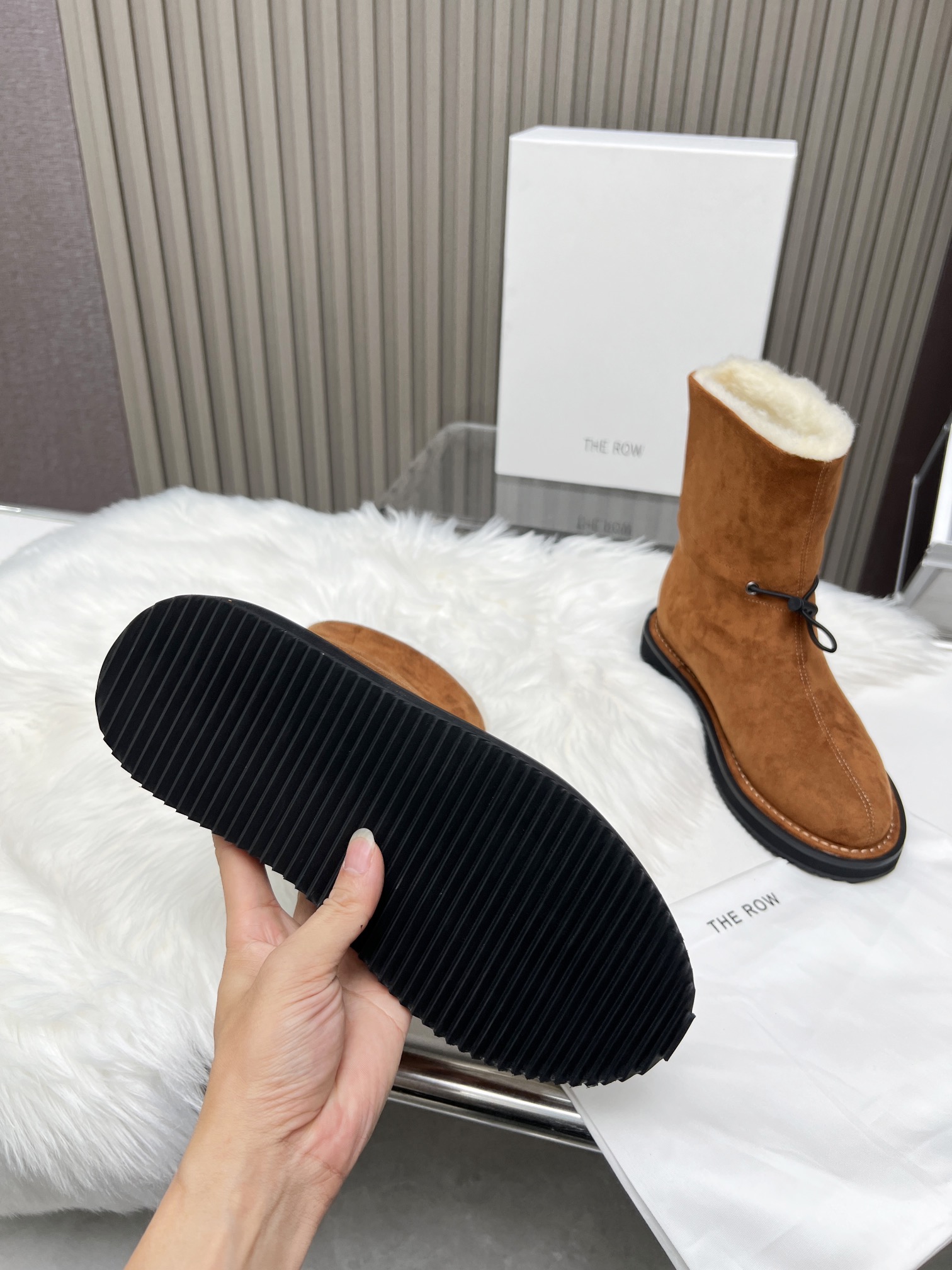这款鞋子是AAAAA 1:1 质量 (非常棒). 使用了和原版一模一样的材料. 商标部分也保持了和The Row一样. 图片拍摄是实物鞋子拍摄, 您所收到的实物保证和我们图片一模一样.