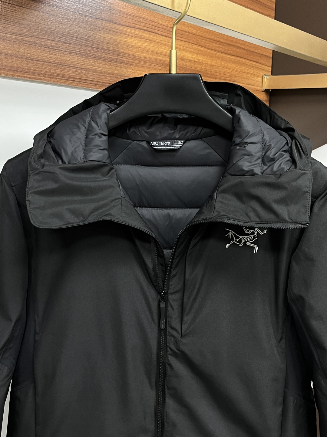 这款衣服是AAAAA 1:1 质量 (非常棒). 使用了和原版一模一样的材料. 商标部分也保持了和ARC'TERYX一样. 图片拍摄是实物衣服拍摄, 您所收到的实物保证和我们图片一模一样.