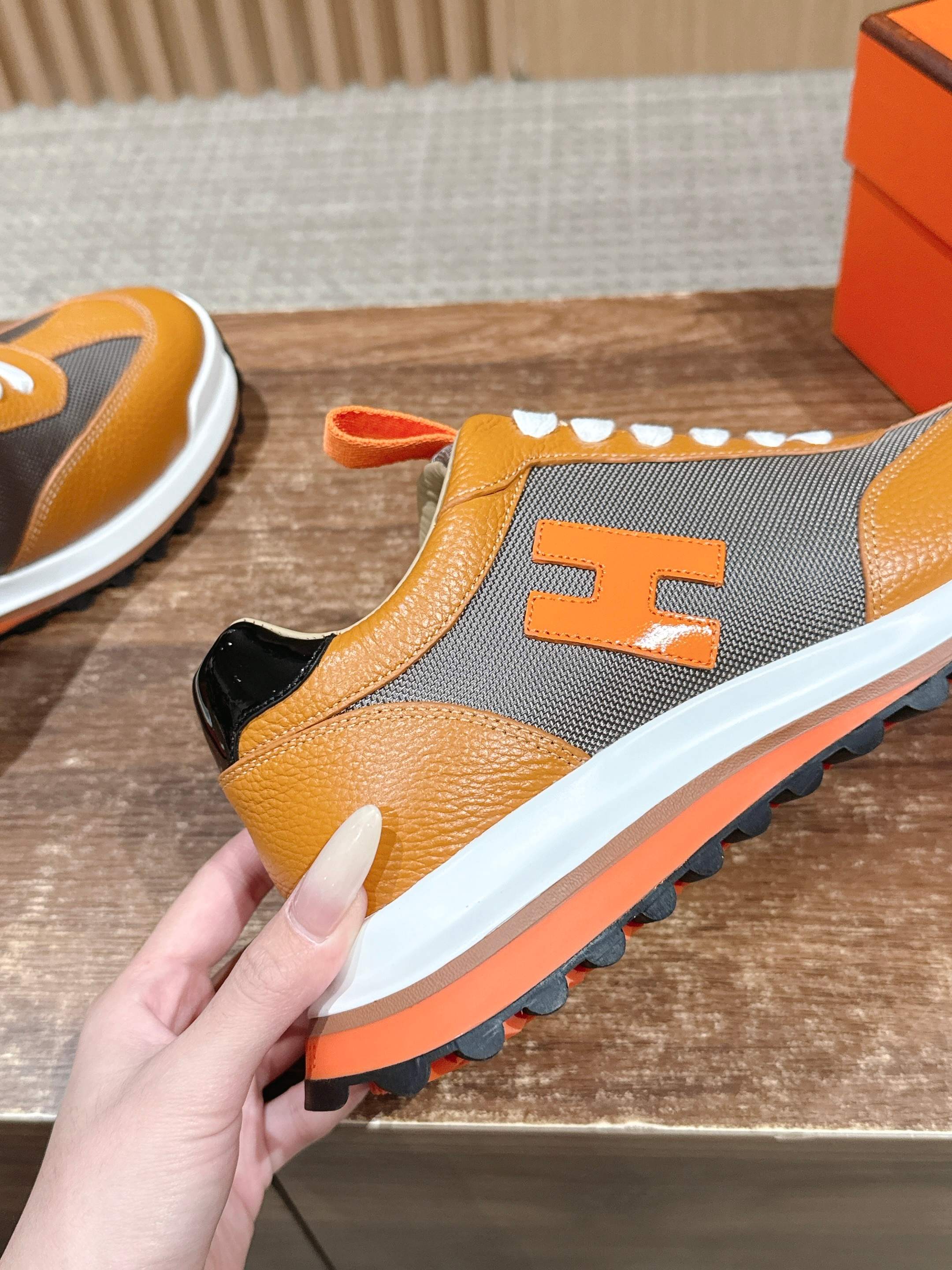这款鞋子是AAAAA 1:1 质量 (非常棒). 使用了和原版一模一样的材料. 商标部分也保持了和爱马仕/Hermes一样. 图片拍摄是实物鞋子拍摄, 您所收到的实物保证和我们图片一模一样.