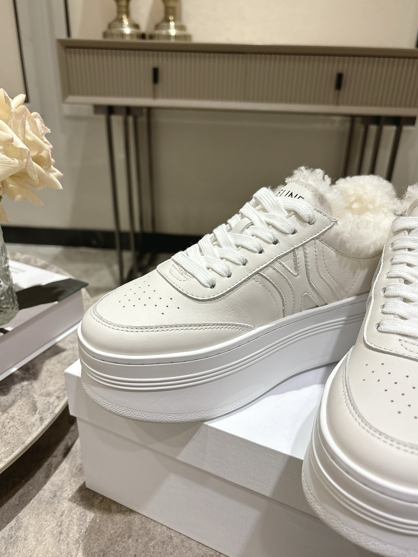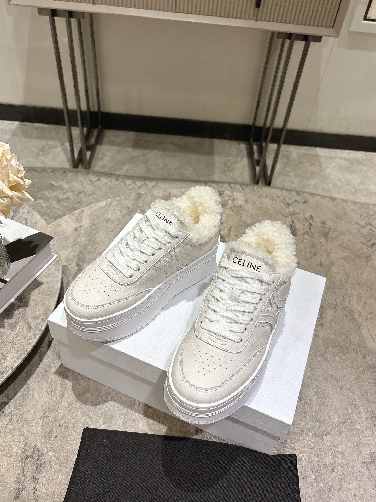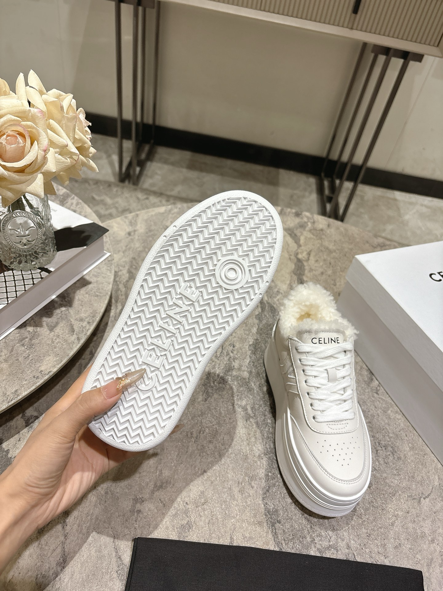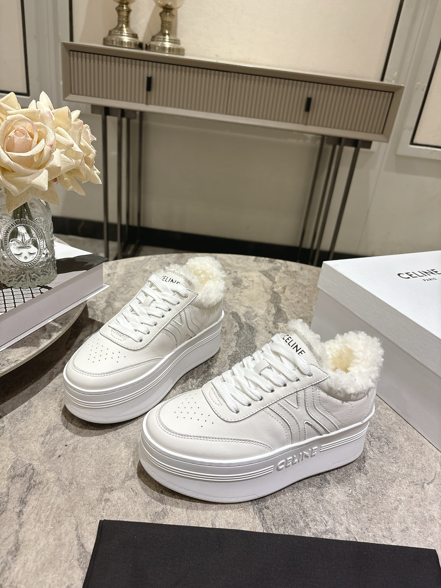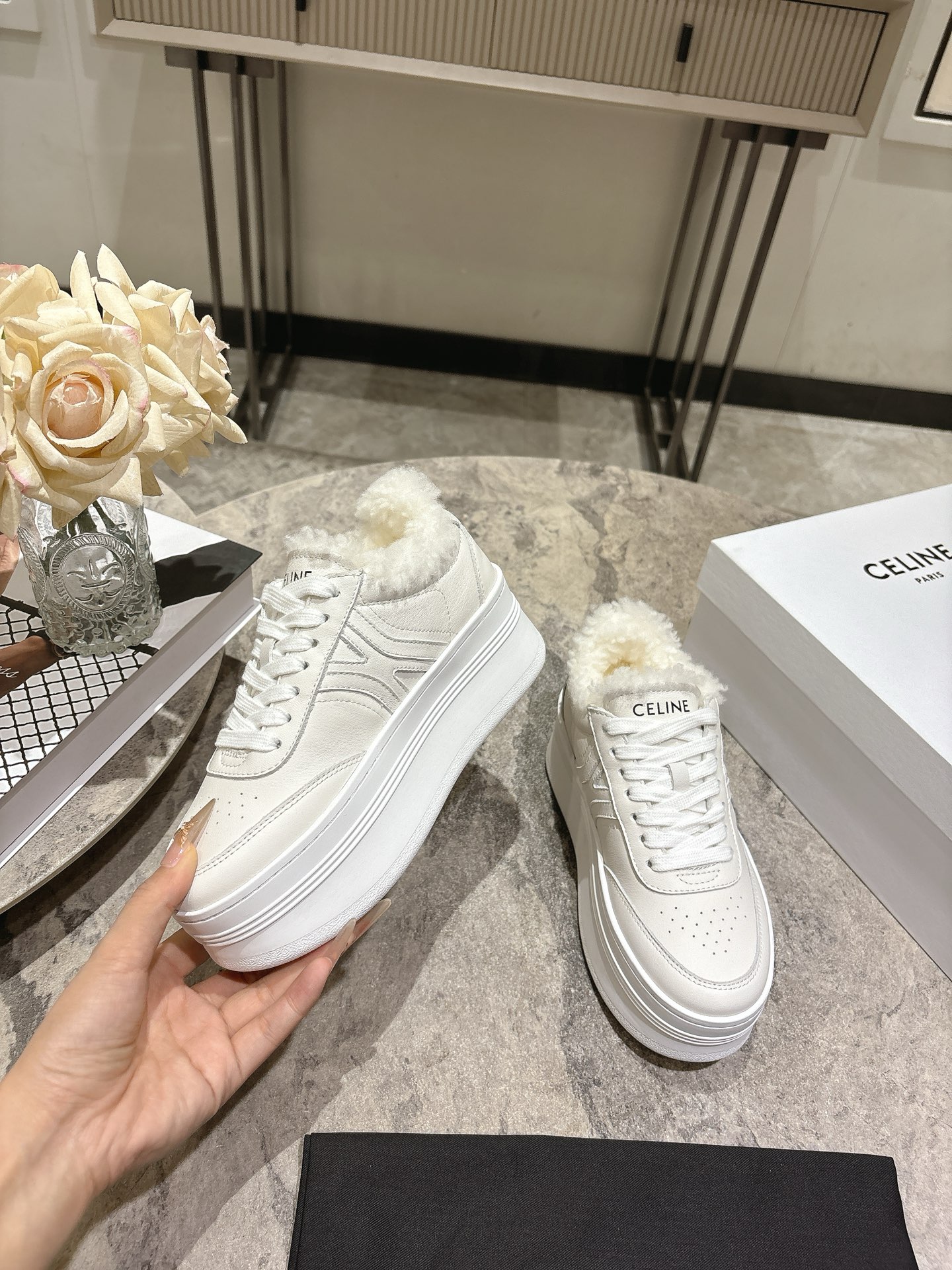 这款鞋子是AAAAA 1:1 质量 (非常棒). 使用了和原版一模一样的材料. 商标部分也保持了和思琳/Celine一样. 图片拍摄是实物鞋子拍摄, 您所收到的实物保证和我们图片一模一样.