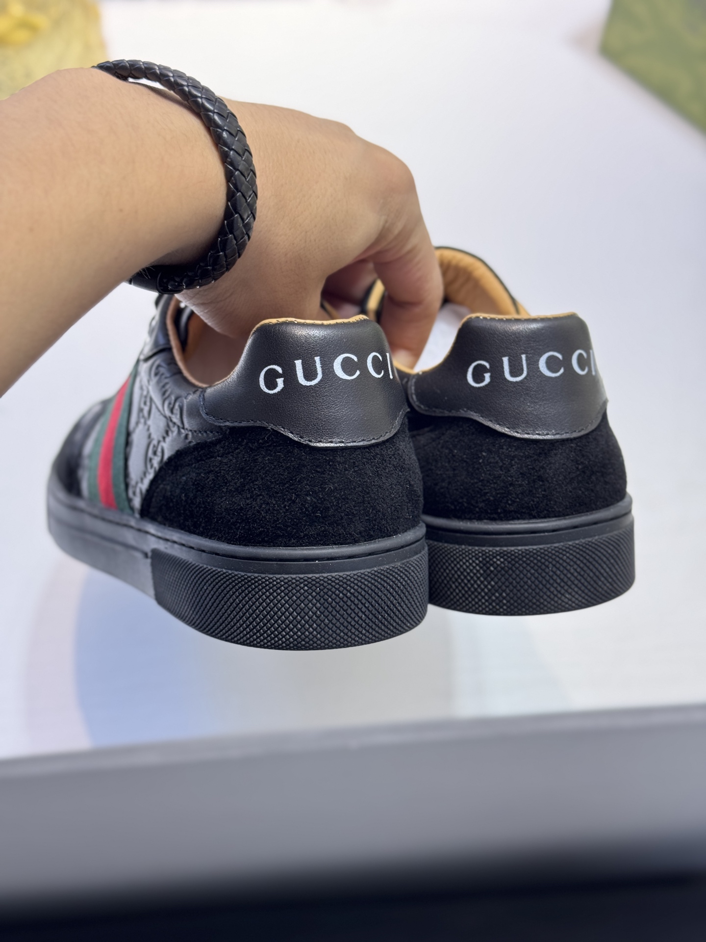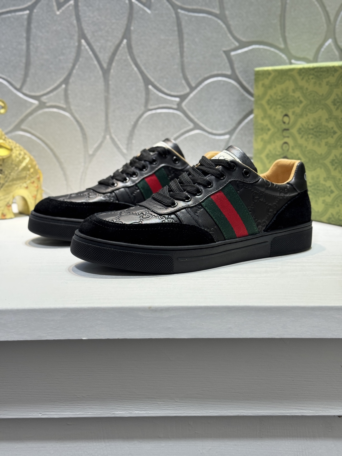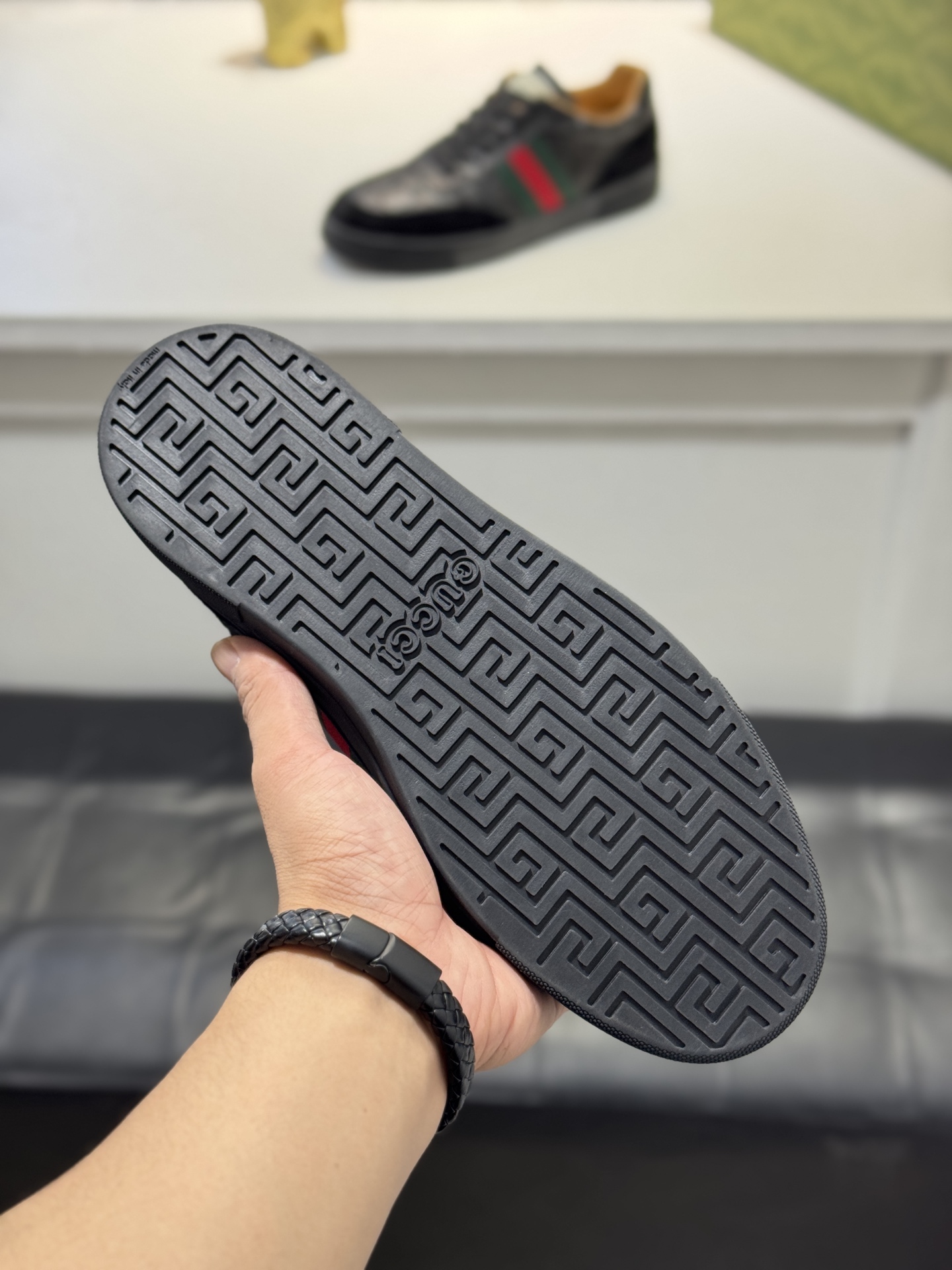 这款鞋子是AAAAA 1:1 质量 (非常棒). 使用了和原版一模一样的材料. 商标部分也保持了和古奇/Gucci一样. 图片拍摄是实物鞋子拍摄, 您所收到的实物保证和我们图片一模一样.