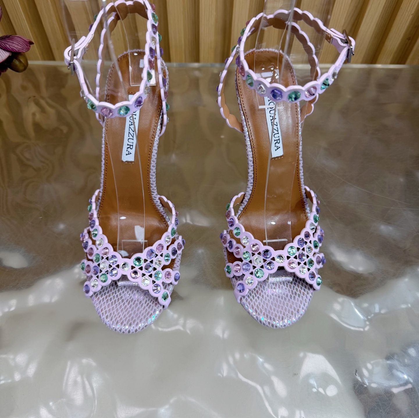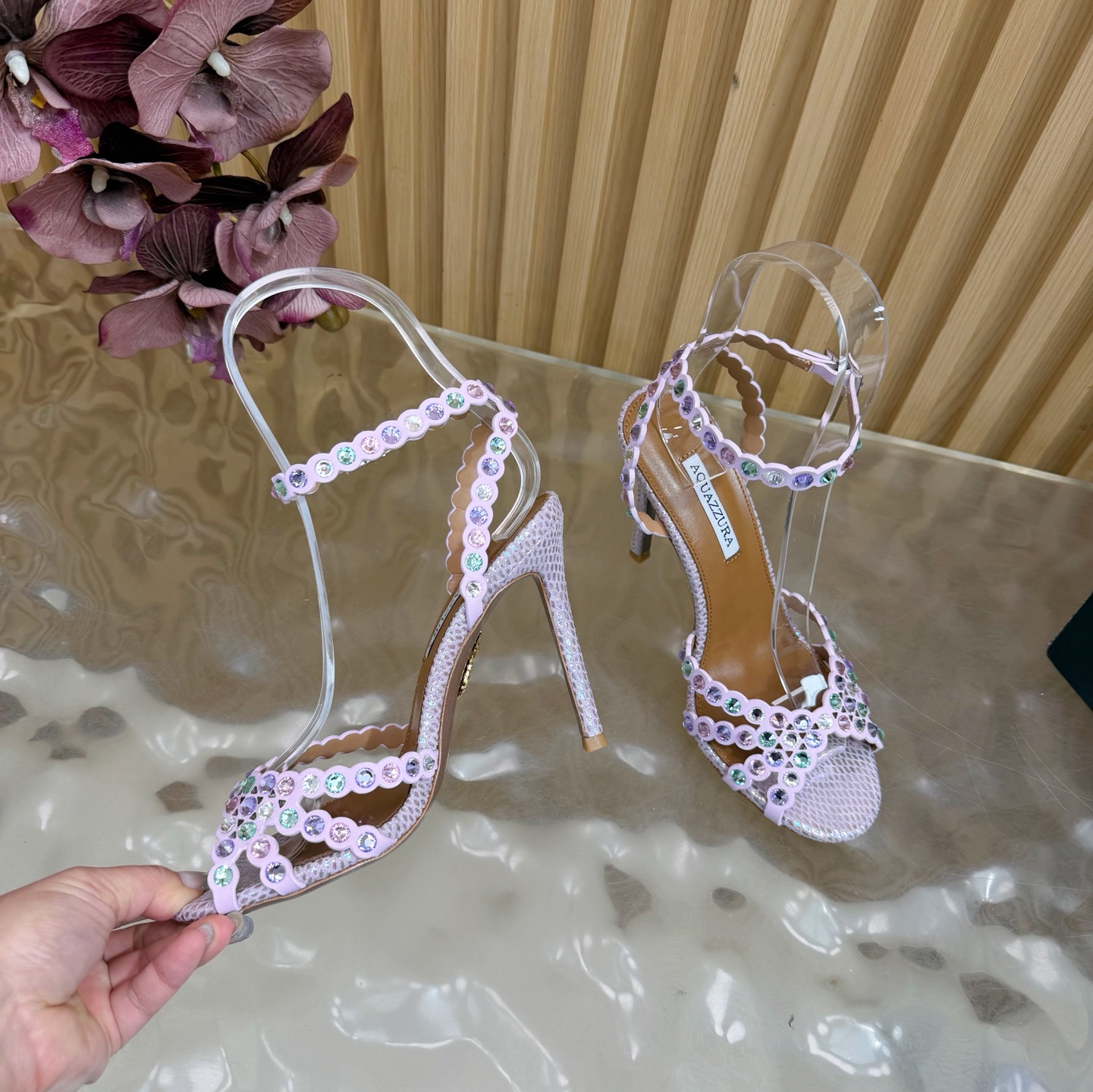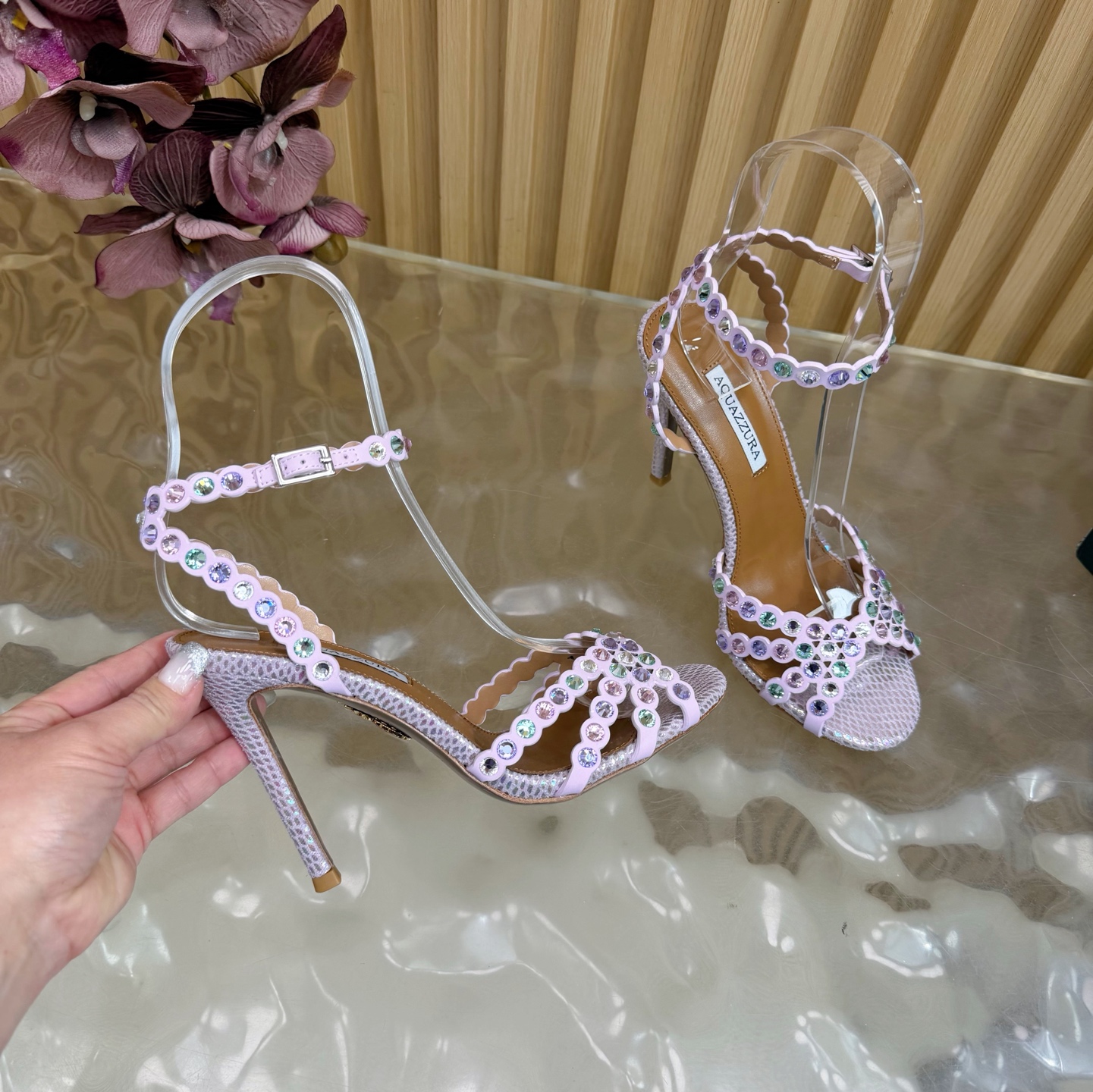 这款鞋子是AAAAA 1:1 质量 (非常棒). 使用了和原版一模一样的材料. 商标部分也保持了和Aquazzura一样. 图片拍摄是实物鞋子拍摄, 您所收到的实物保证和我们图片一模一样.