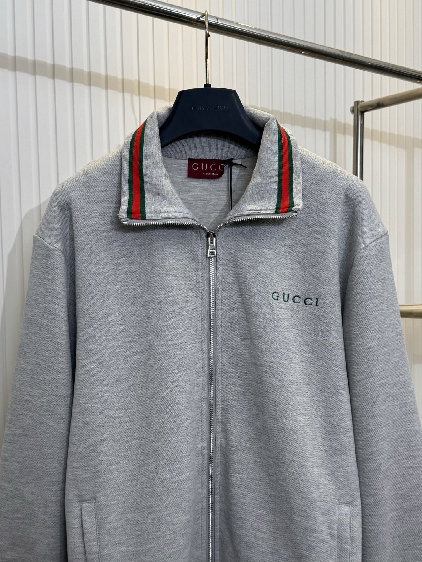 这款衣服是AAAAA 1:1 质量 (非常棒). 使用了和原版一模一样的材料. 商标部分也保持了和古奇/Gucci一样. 图片拍摄是实物衣服拍摄, 您所收到的实物保证和我们图片一模一样.