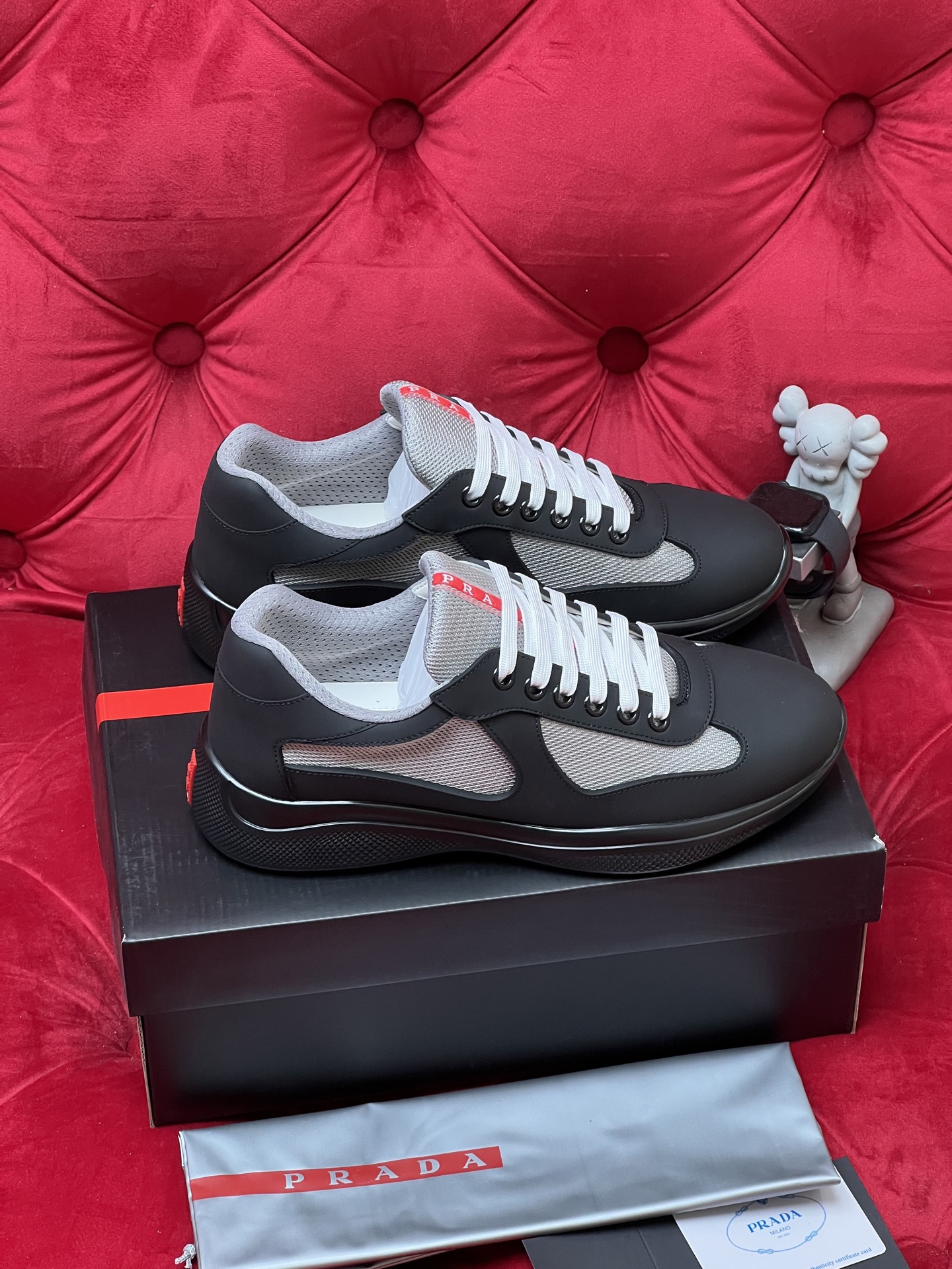 这款鞋子是AAAAA 1:1 质量 (非常棒). 使用了和原版一模一样的材料. 商标部分也保持了和普拉达/Prada一样. 图片拍摄是实物鞋子拍摄, 您所收到的实物保证和我们图片一模一样.