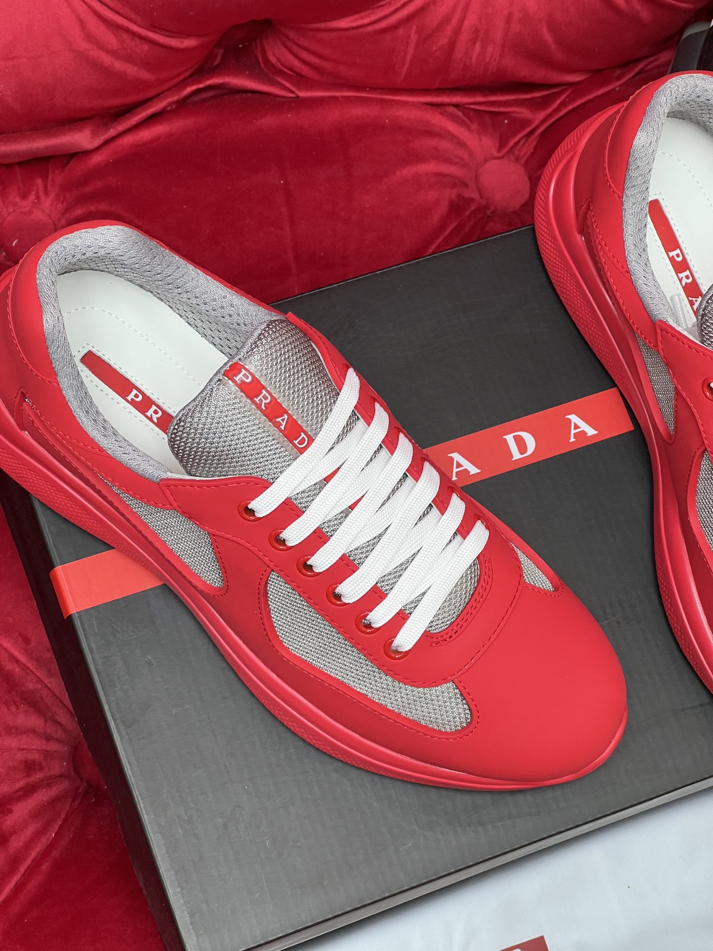 这款鞋子是AAAAA 1:1 质量 (非常棒). 使用了和原版一模一样的材料. 商标部分也保持了和普拉达/Prada一样. 图片拍摄是实物鞋子拍摄, 您所收到的实物保证和我们图片一模一样.