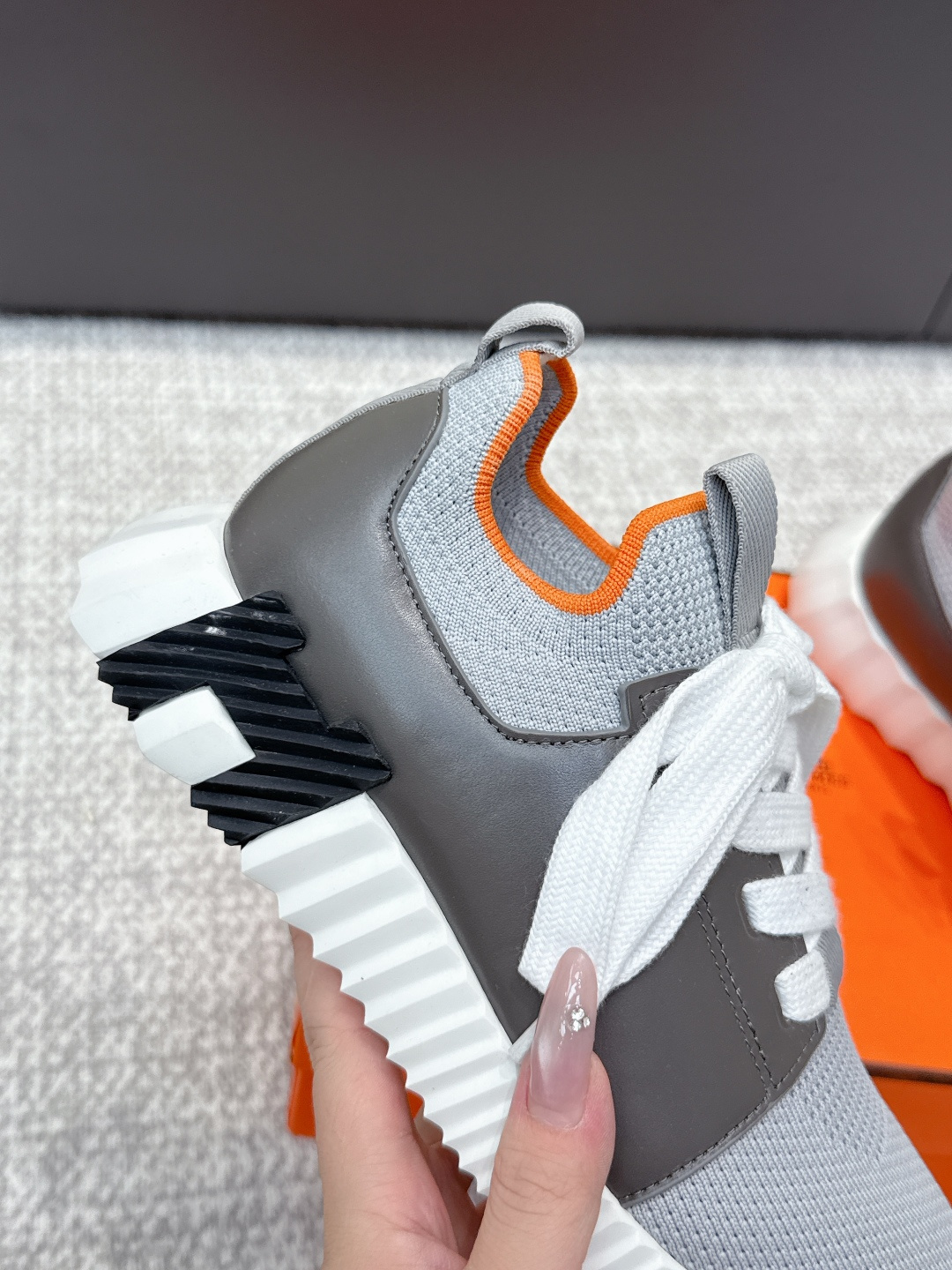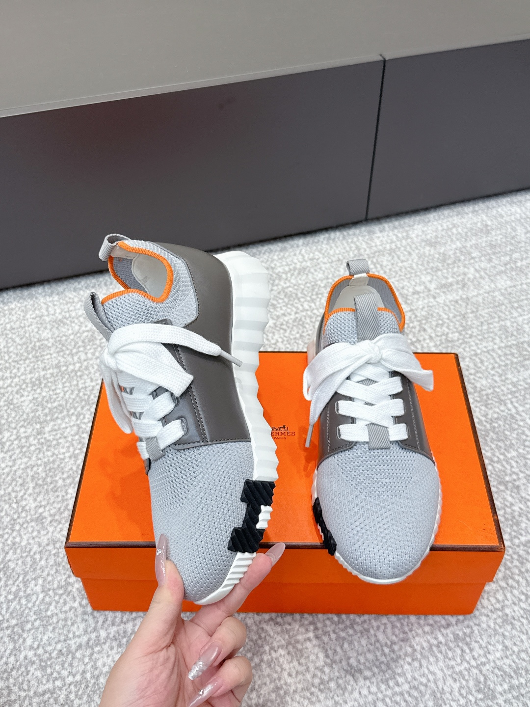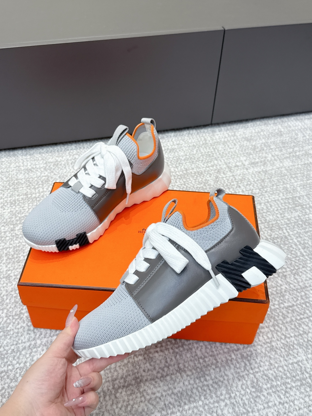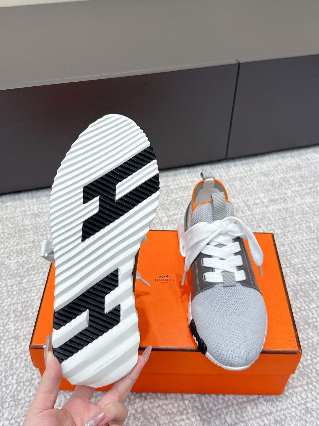 这款鞋子是AAAAA 1:1 质量 (非常棒). 使用了和原版一模一样的材料. 商标部分也保持了和爱马仕/Hermes一样. 图片拍摄是实物鞋子拍摄, 您所收到的实物保证和我们图片一模一样.