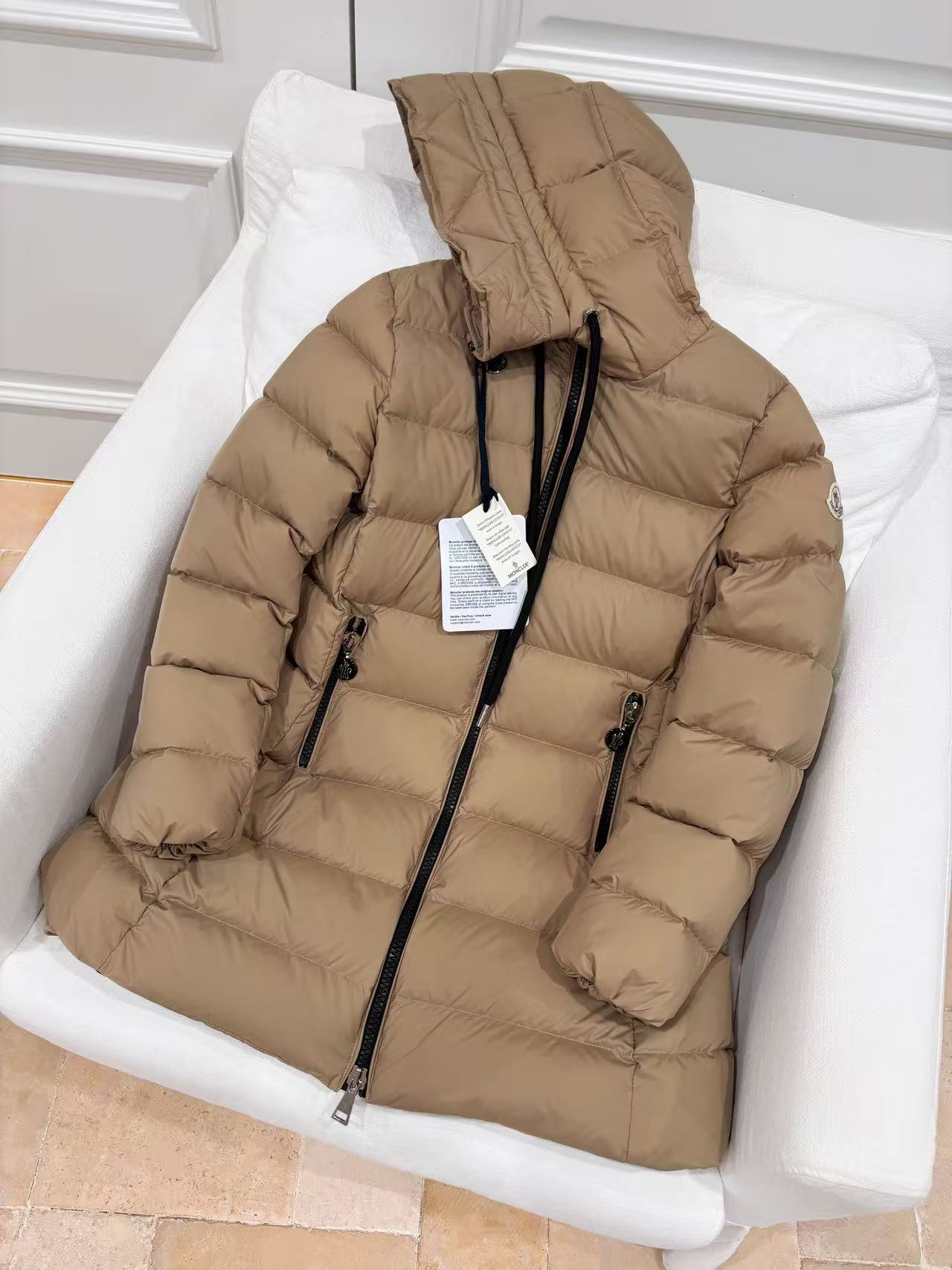 这款衣服是AAAAA 1:1 质量 (非常棒). 使用了和原版一模一样的材料. 商标部分也保持了和盟可睐/moncler一样. 图片拍摄是实物衣服拍摄, 您所收到的实物保证和我们图片一模一样.