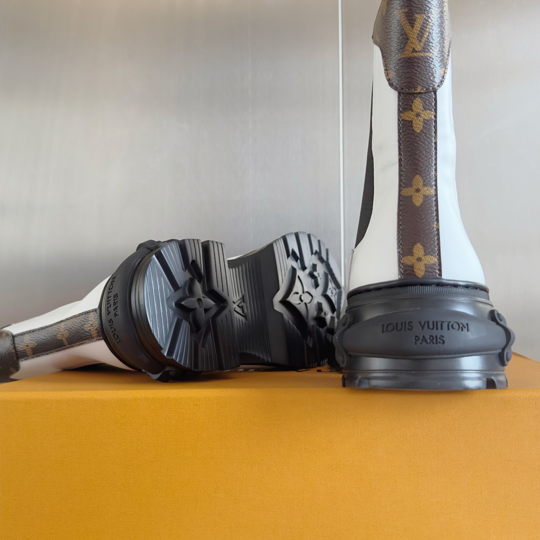 这款鞋子是AAAAA 1:1 质量 (非常棒). 使用了和原版一模一样的材料. 商标部分也保持了和路易威登/Louis Vuitton一样. 图片拍摄是实物鞋子拍摄, 您所收到的实物保证和我们图片一模一样.