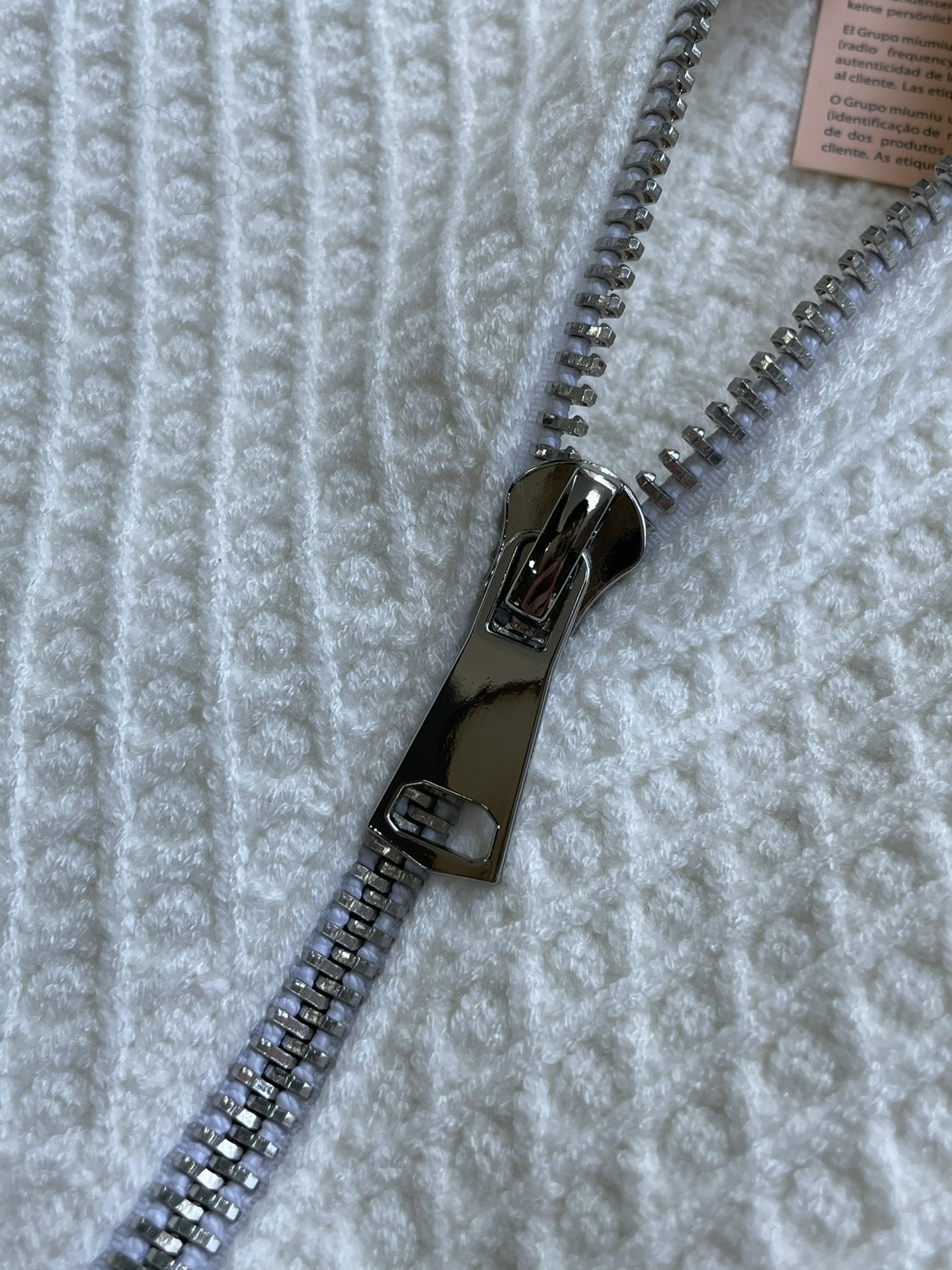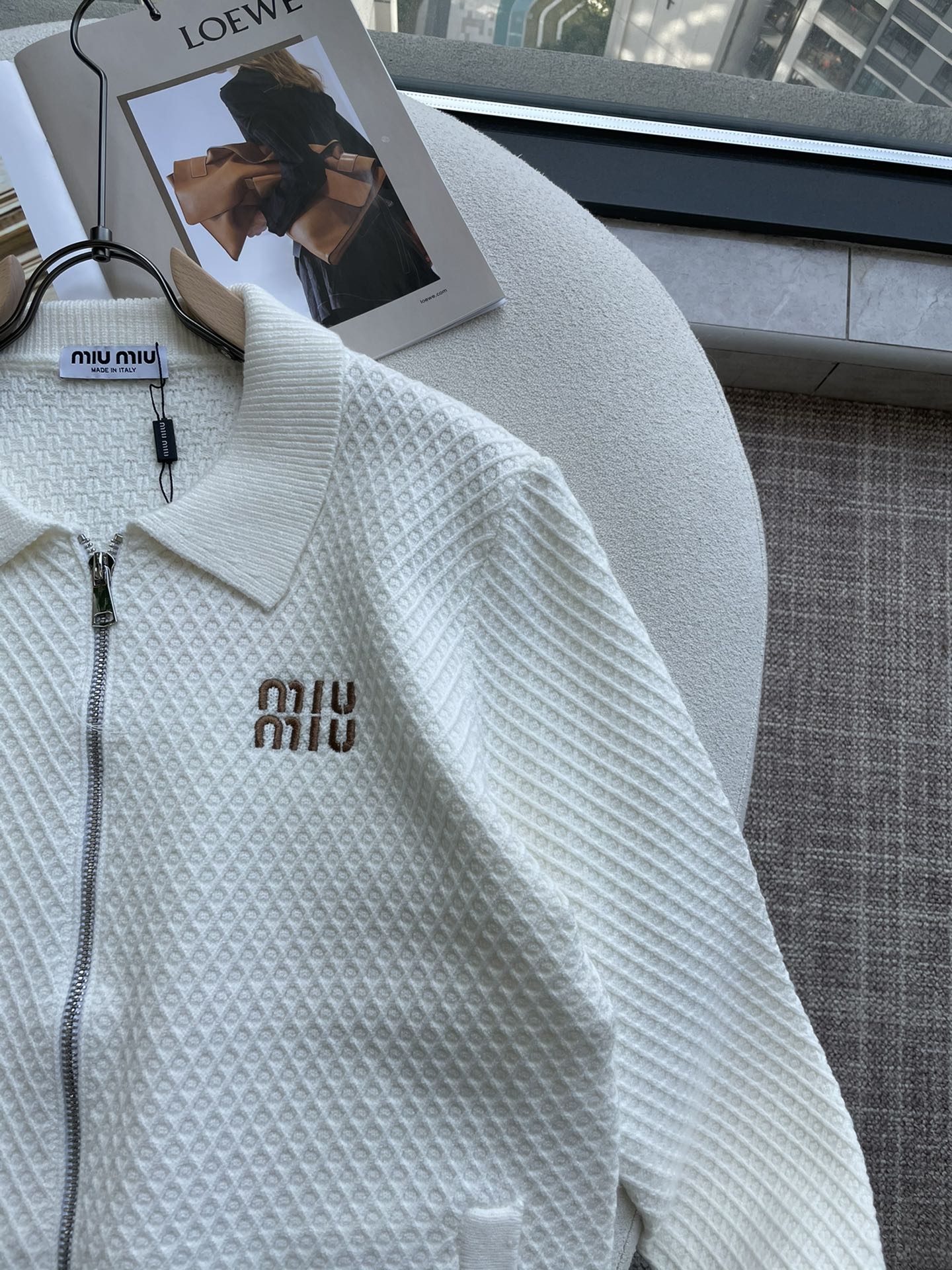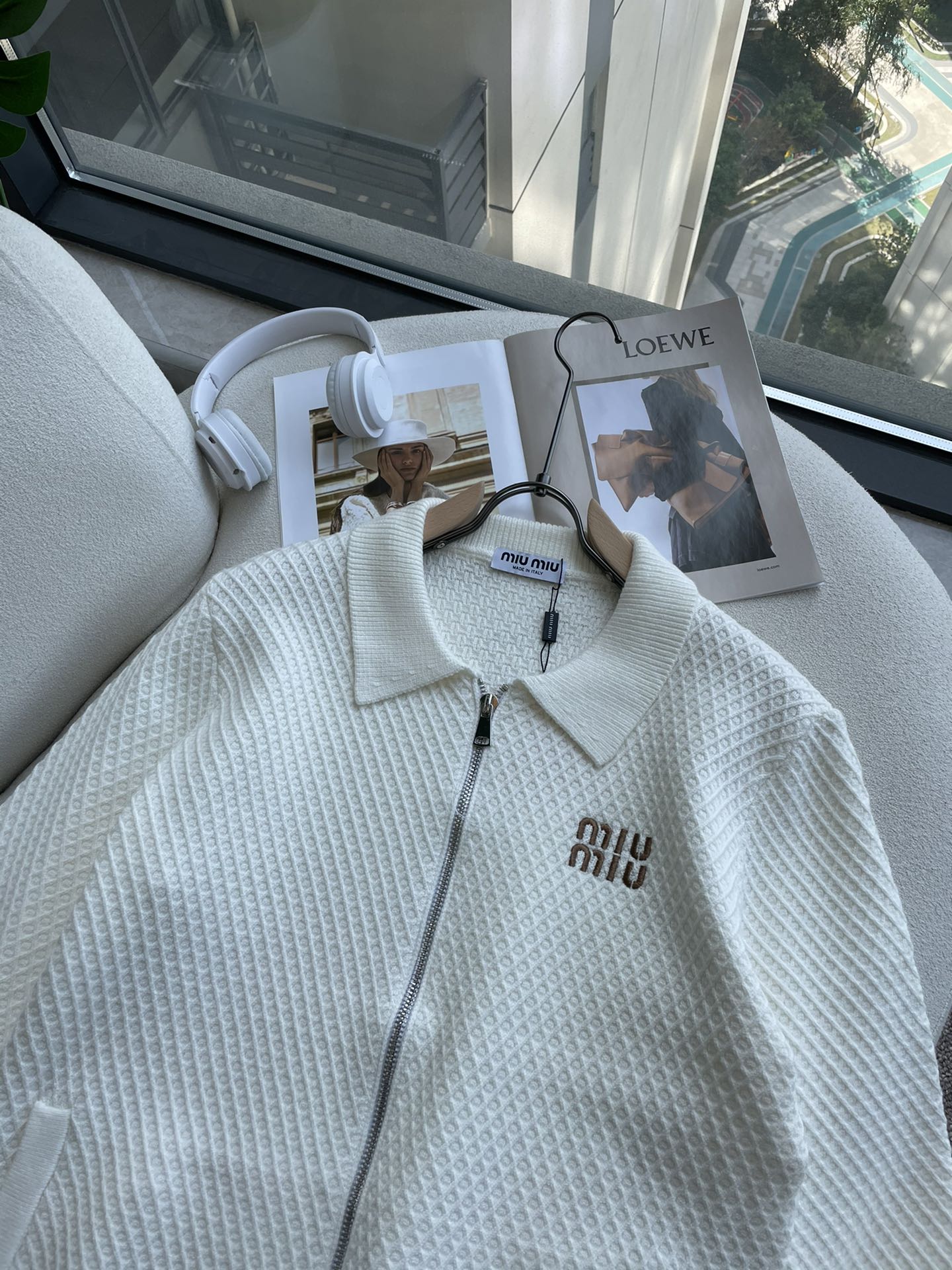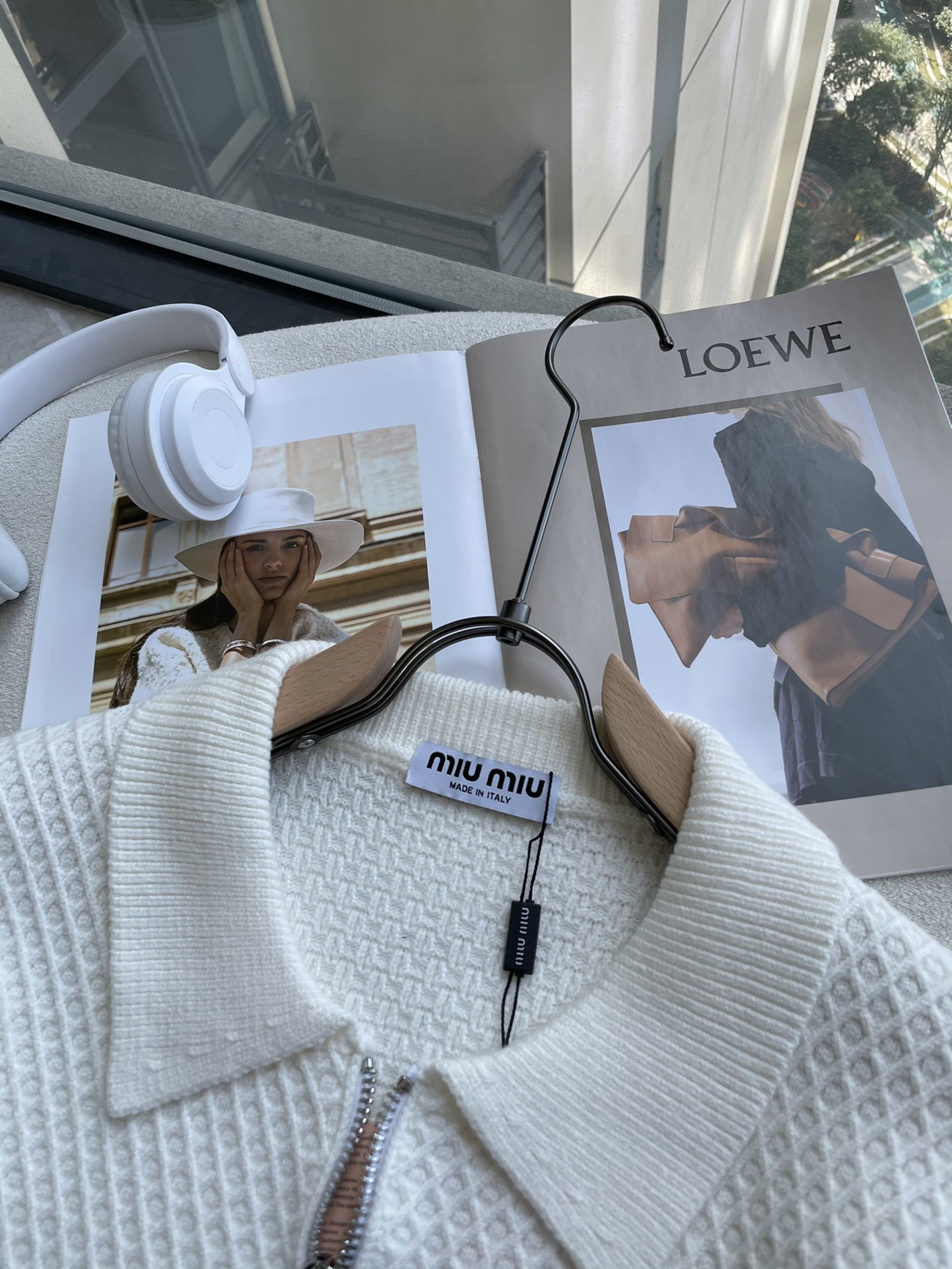 这款衣服是AAAAA 1:1 质量 (非常棒). 使用了和原版一模一样的材料. 商标部分也保持了和缪缪/Miu Miu一样. 图片拍摄是实物衣服拍摄, 您所收到的实物保证和我们图片一模一样.