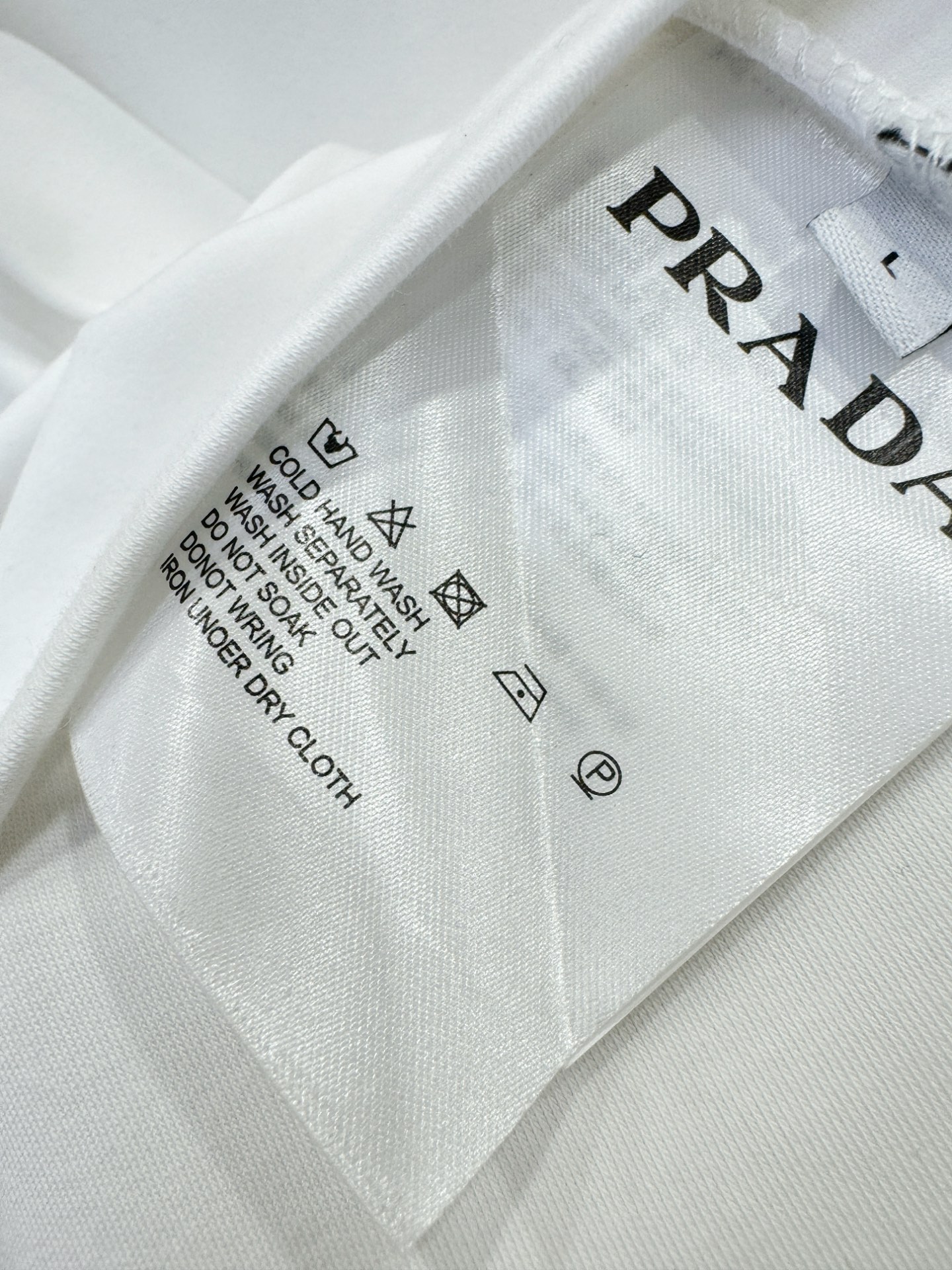 这款衣服是AAAAA 1:1 质量 (非常棒). 使用了和原版一模一样的材料. 商标部分也保持了和普拉达/Prada一样. 图片拍摄是实物衣服拍摄, 您所收到的实物保证和我们图片一模一样.