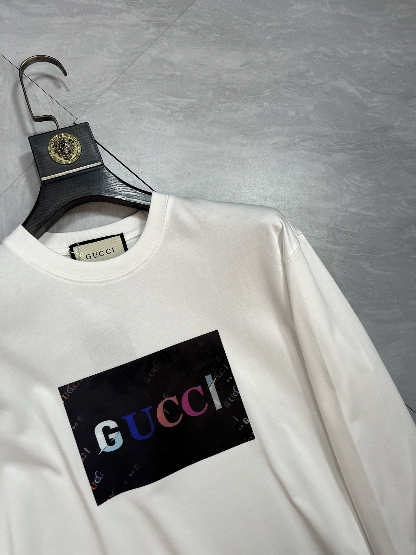 这款衣服是AAAAA 1:1 质量 (非常棒). 使用了和原版一模一样的材料. 商标部分也保持了和古奇/Gucci一样. 图片拍摄是实物衣服拍摄, 您所收到的实物保证和我们图片一模一样.