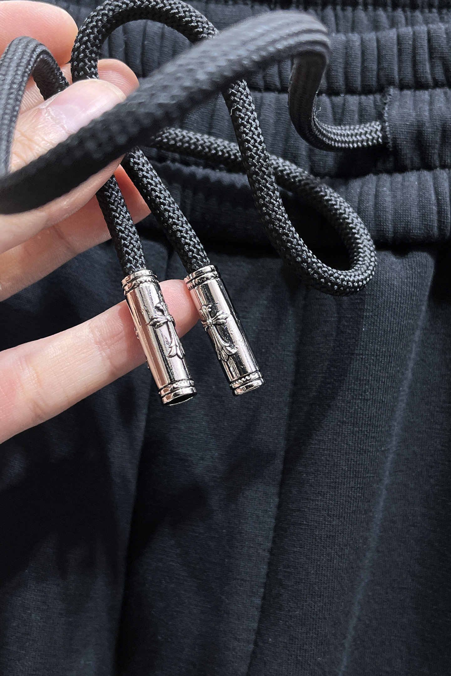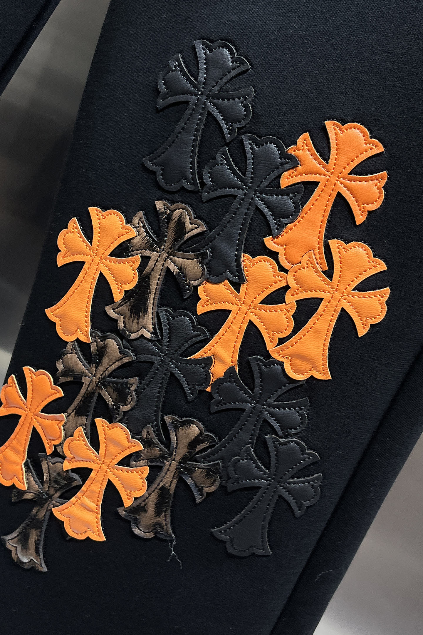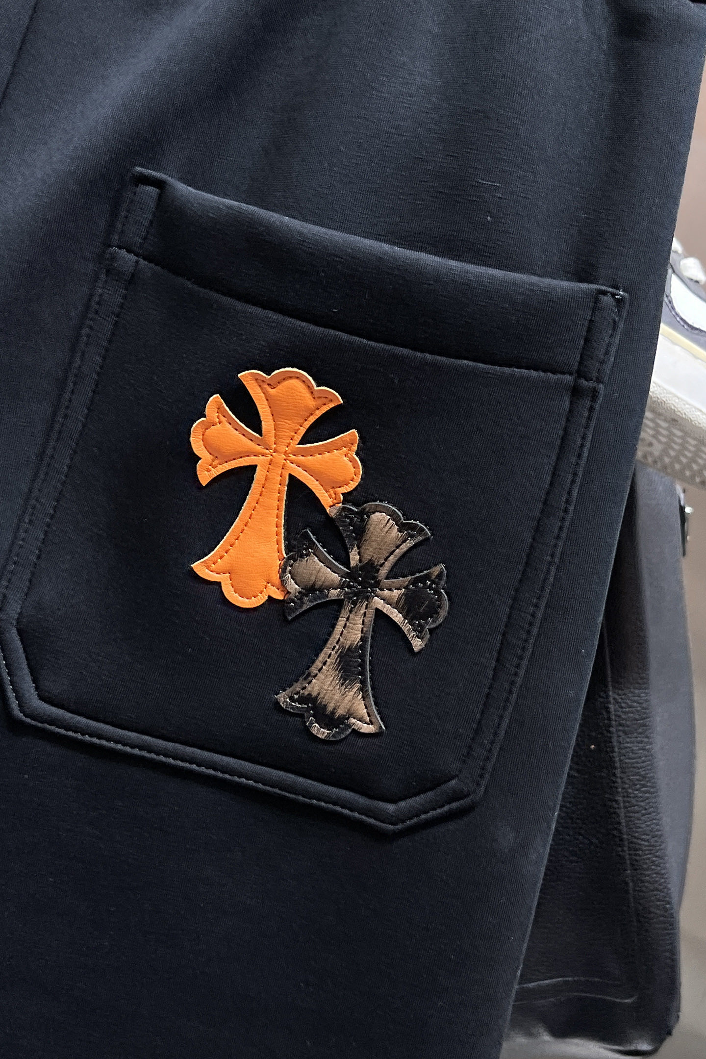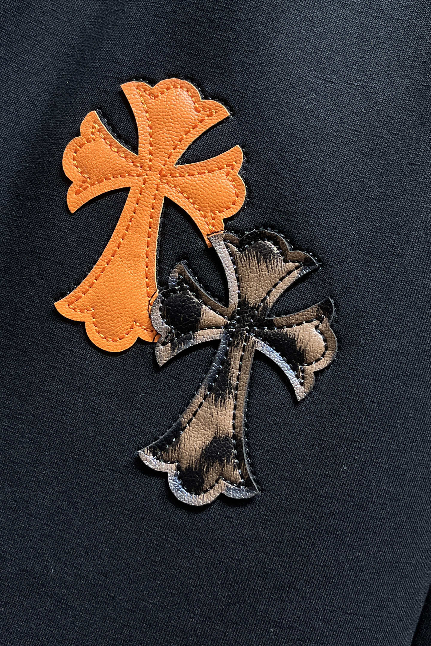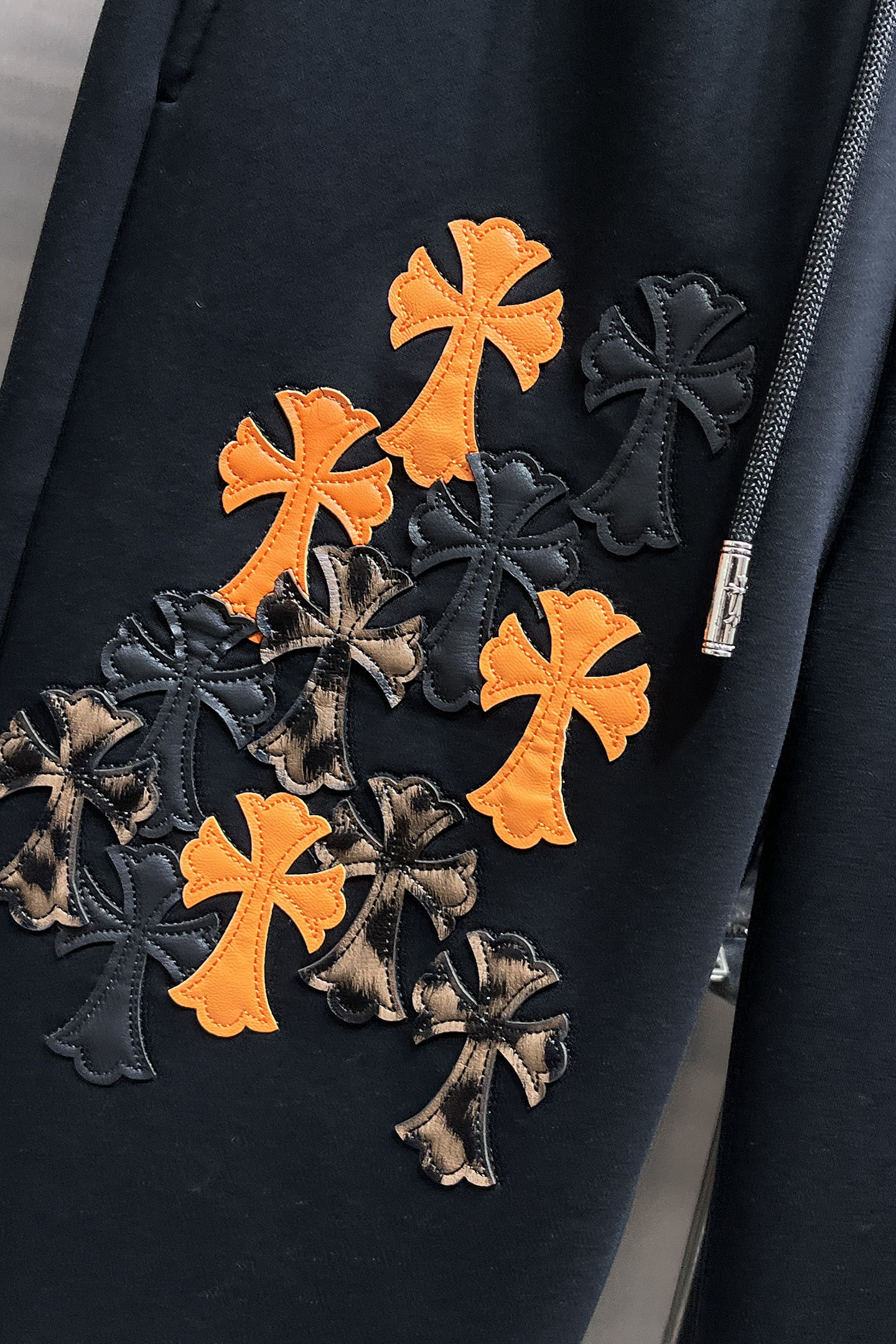 这款衣服是AAAAA 1:1 质量 (非常棒). 使用了和原版一模一样的材料. 商标部分也保持了和克罗心/Chrome Hearts一样. 图片拍摄是实物衣服拍摄, 您所收到的实物保证和我们图片一模一样.