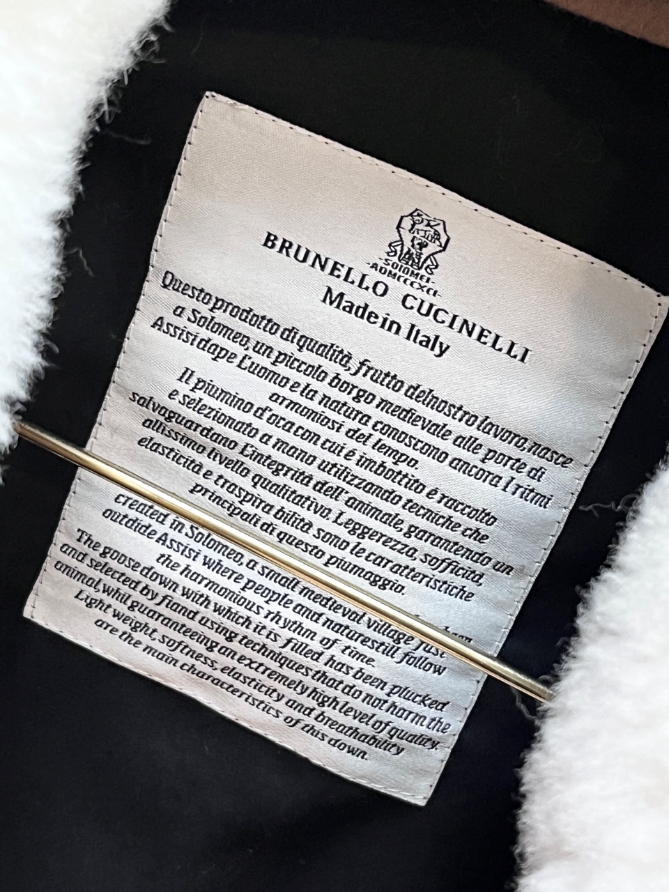 这款衣服是AAAAA 1:1 质量 (非常棒). 使用了和原版一模一样的材料. 商标部分也保持了和Brunello Cucinelli一样. 图片拍摄是实物衣服拍摄, 您所收到的实物保证和我们图片一模一样.