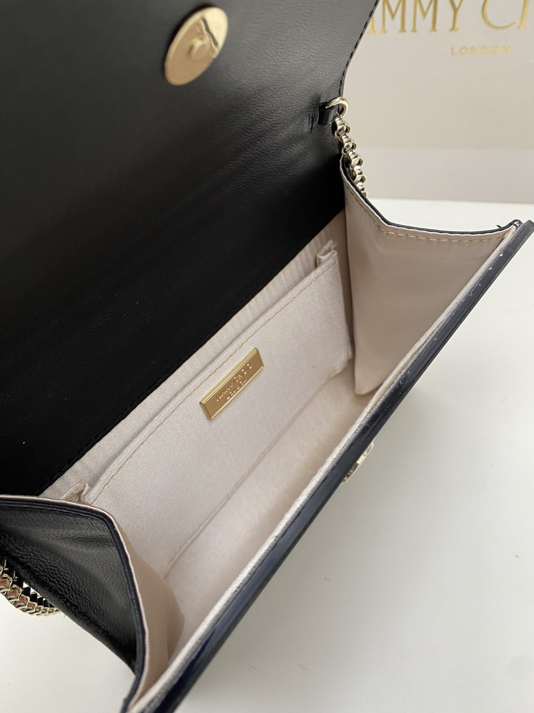 这款包包是AAAAA 1:1 质量 (非常棒). 使用了和原版一模一样的材料. 商标部分也保持了和吉米乔/JIMMY CHOO一样. 图片拍摄是实物包包拍摄, 您所收到的实物保证和我们图片一模一样.