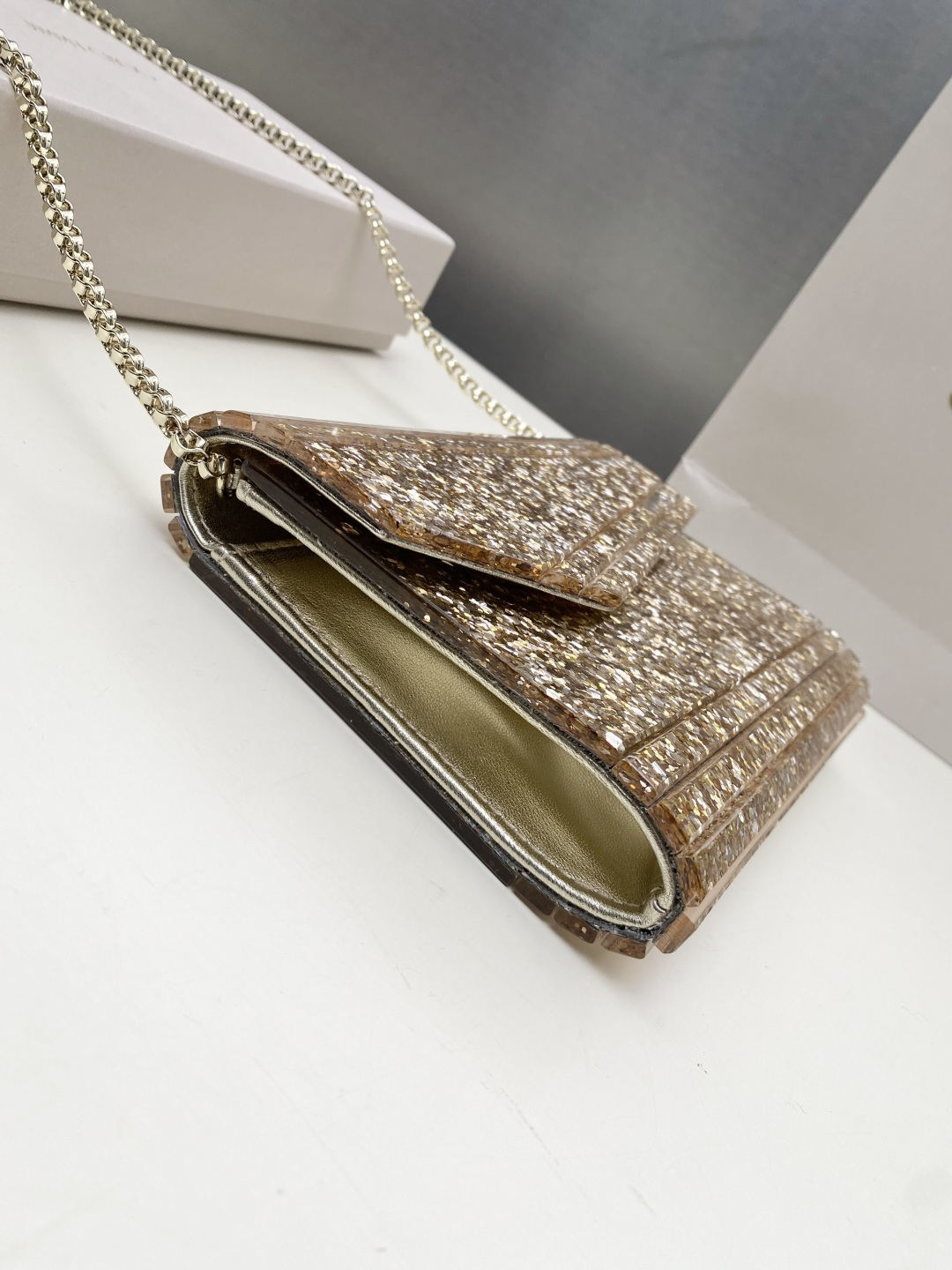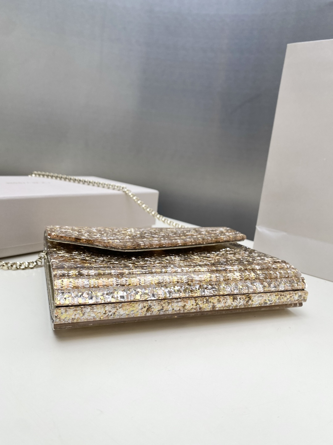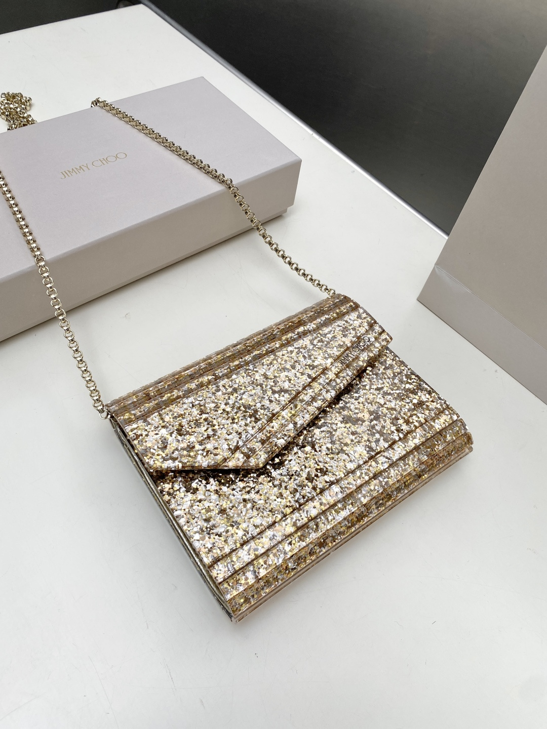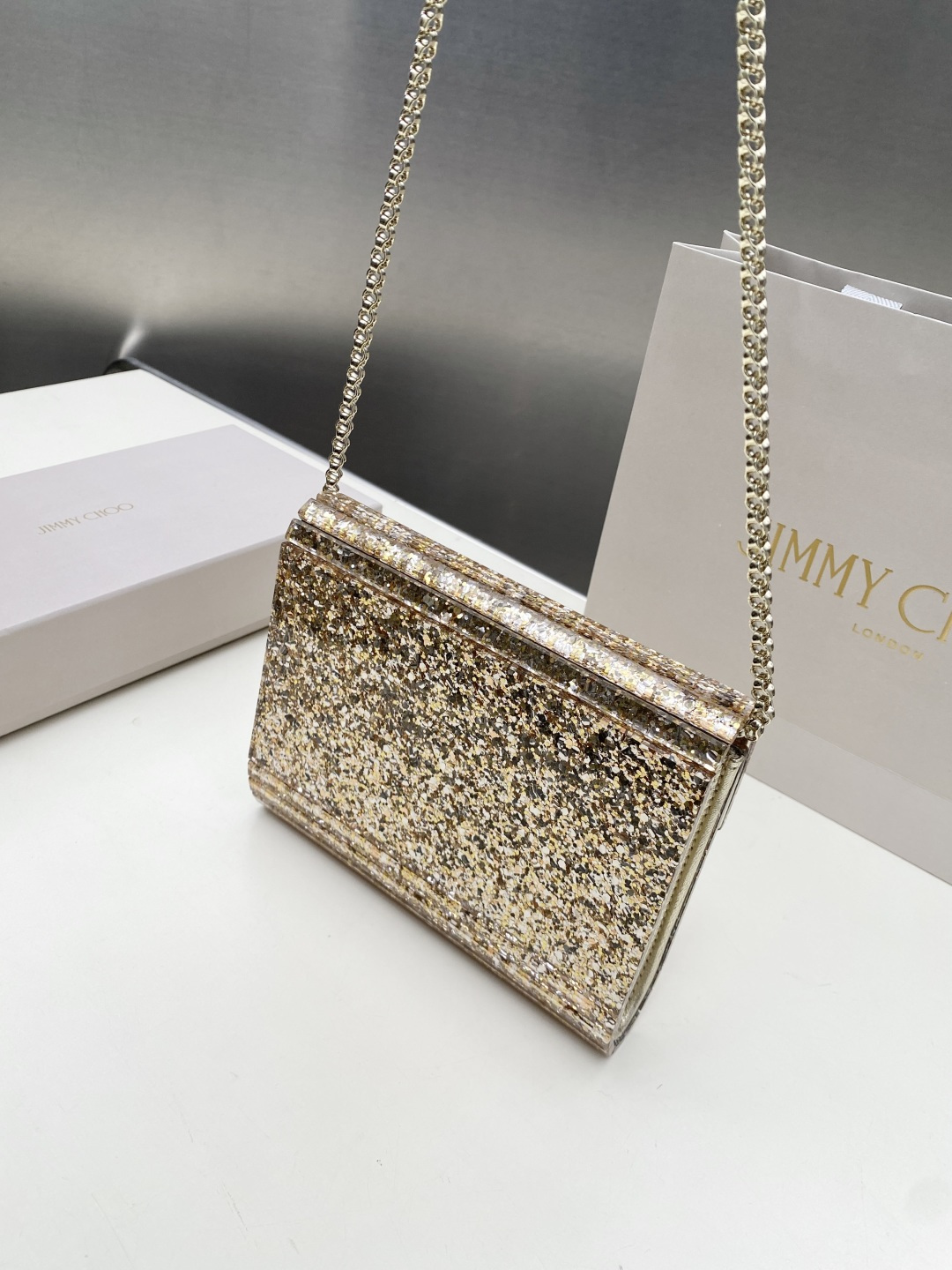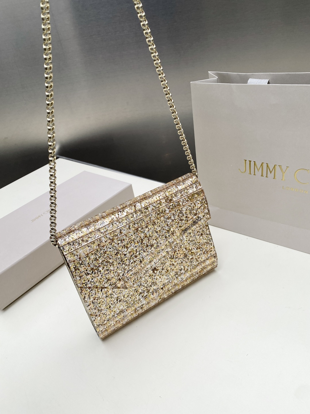 这款包包是AAAAA 1:1 质量 (非常棒). 使用了和原版一模一样的材料. 商标部分也保持了和吉米乔/JIMMY CHOO一样. 图片拍摄是实物包包拍摄, 您所收到的实物保证和我们图片一模一样.