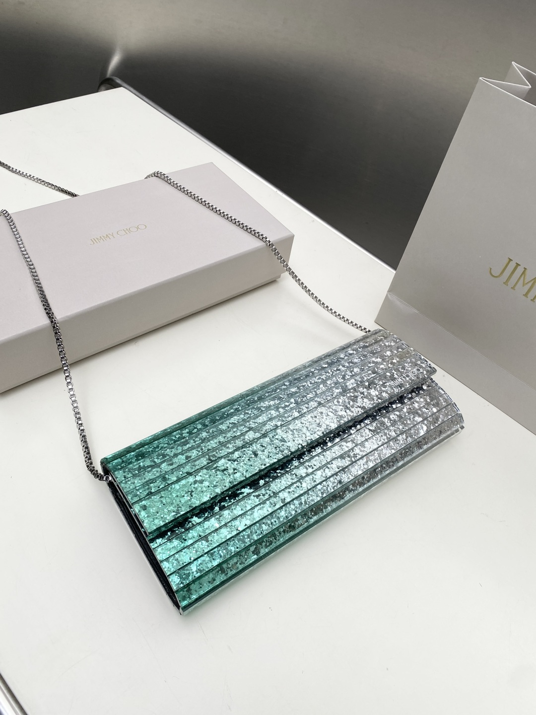 这款包包是AAAAA 1:1 质量 (非常棒). 使用了和原版一模一样的材料. 商标部分也保持了和吉米乔/JIMMY CHOO一样. 图片拍摄是实物包包拍摄, 您所收到的实物保证和我们图片一模一样.