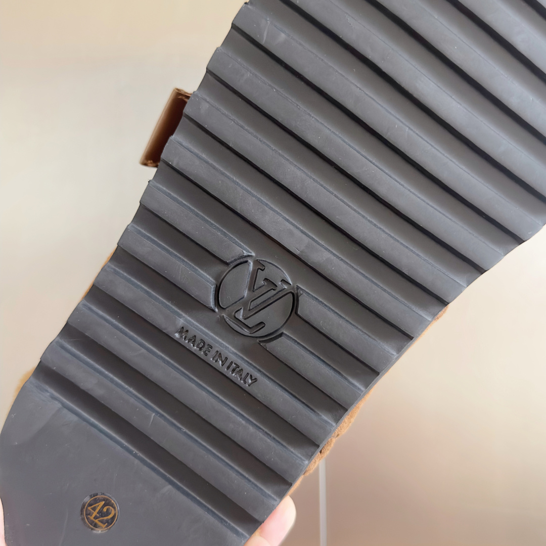 这款鞋子是AAAAA 1:1 质量 (非常棒). 使用了和原版一模一样的材料. 商标部分也保持了和路易威登/Louis Vuitton一样. 图片拍摄是实物鞋子拍摄, 您所收到的实物保证和我们图片一模一样.