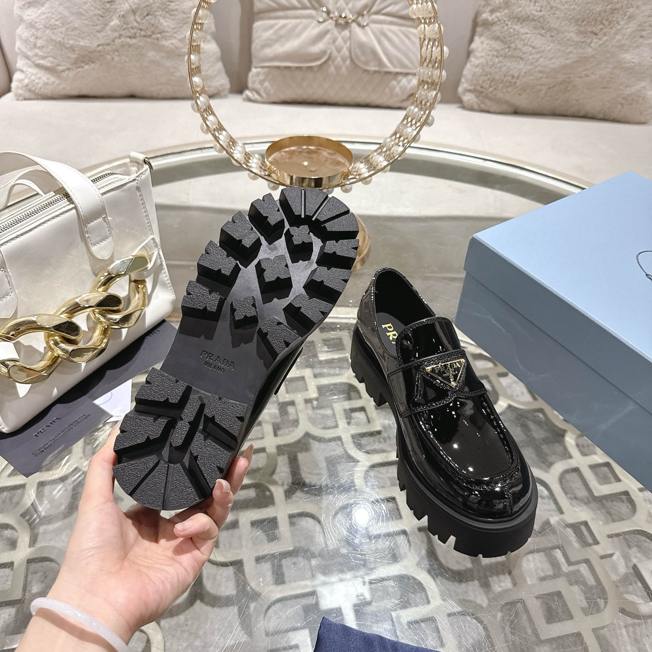 这款鞋子是AAAAA 1:1 质量 (非常棒). 使用了和原版一模一样的材料. 商标部分也保持了和普拉达/Prada一样. 图片拍摄是实物鞋子拍摄, 您所收到的实物保证和我们图片一模一样.
