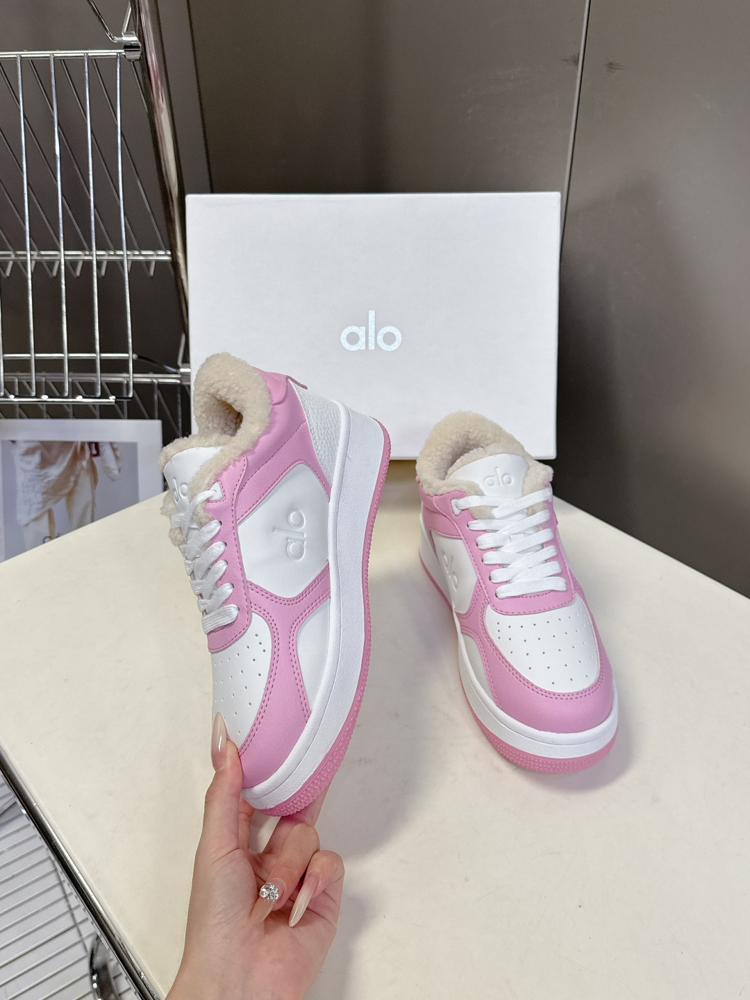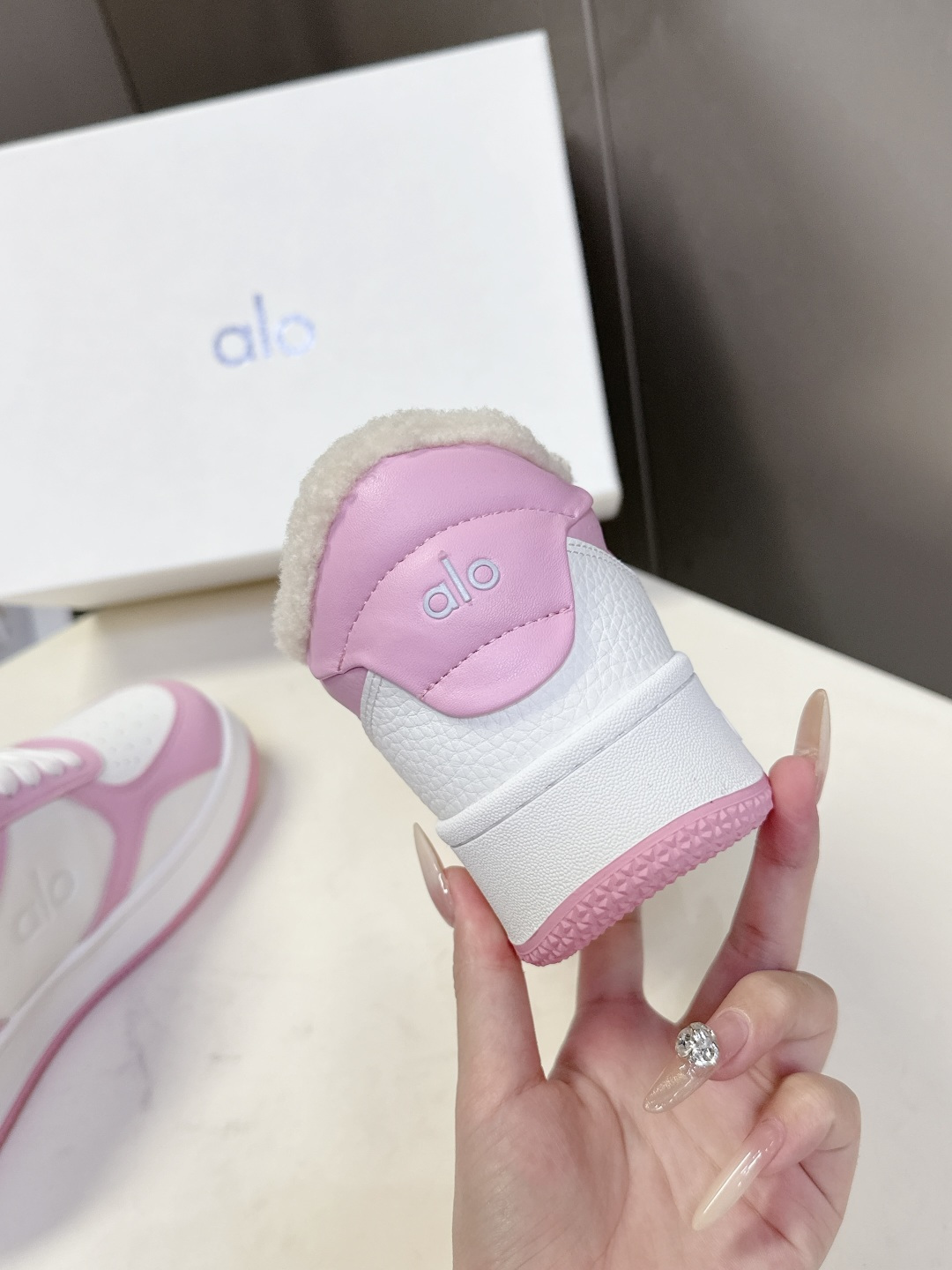 这款鞋子是AAAAA 1:1 质量 (非常棒). 使用了和原版一模一样的材料. 商标部分也保持了和Alo Yoga一样. 图片拍摄是实物鞋子拍摄, 您所收到的实物保证和我们图片一模一样.