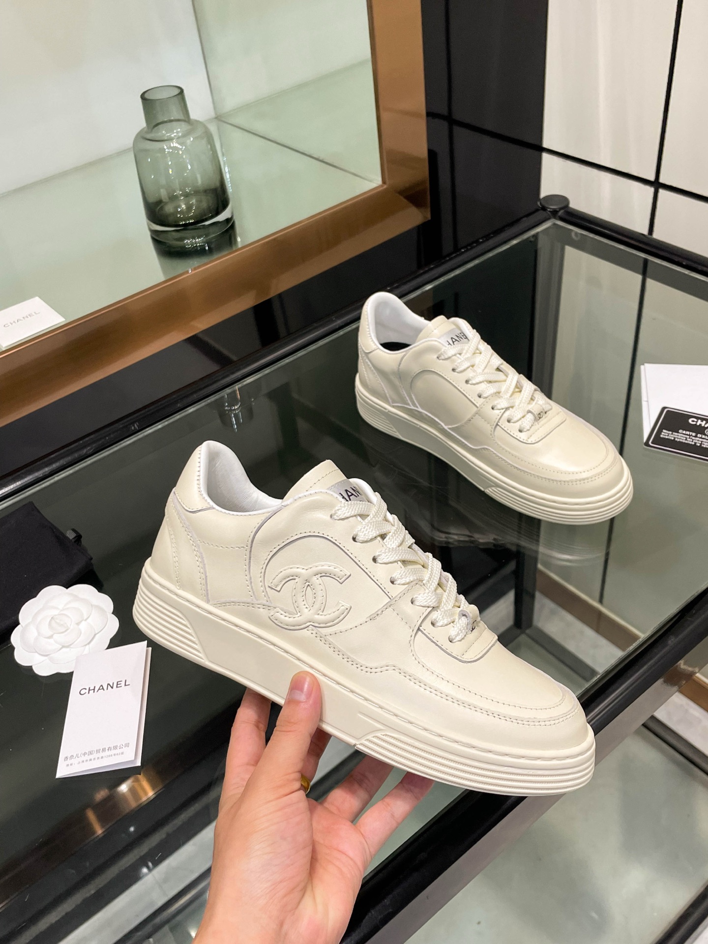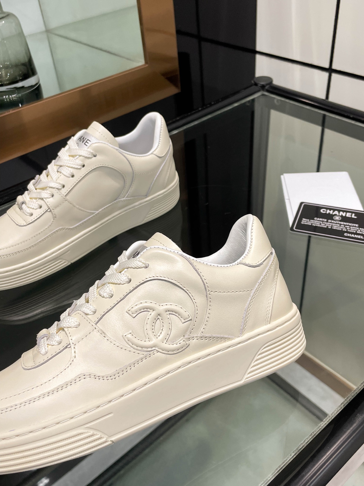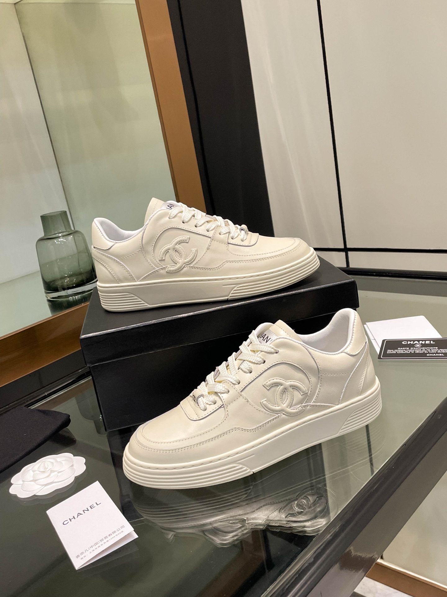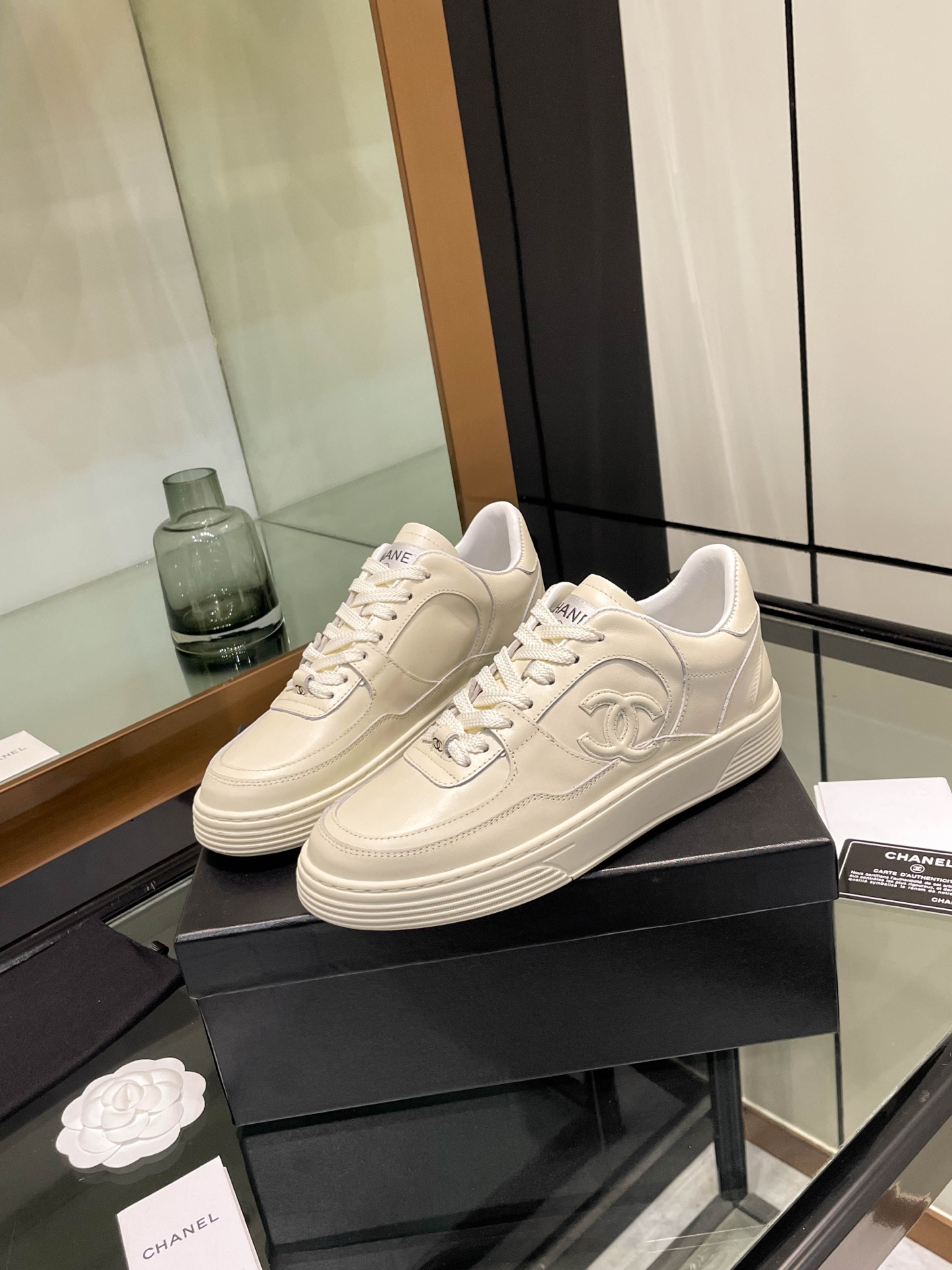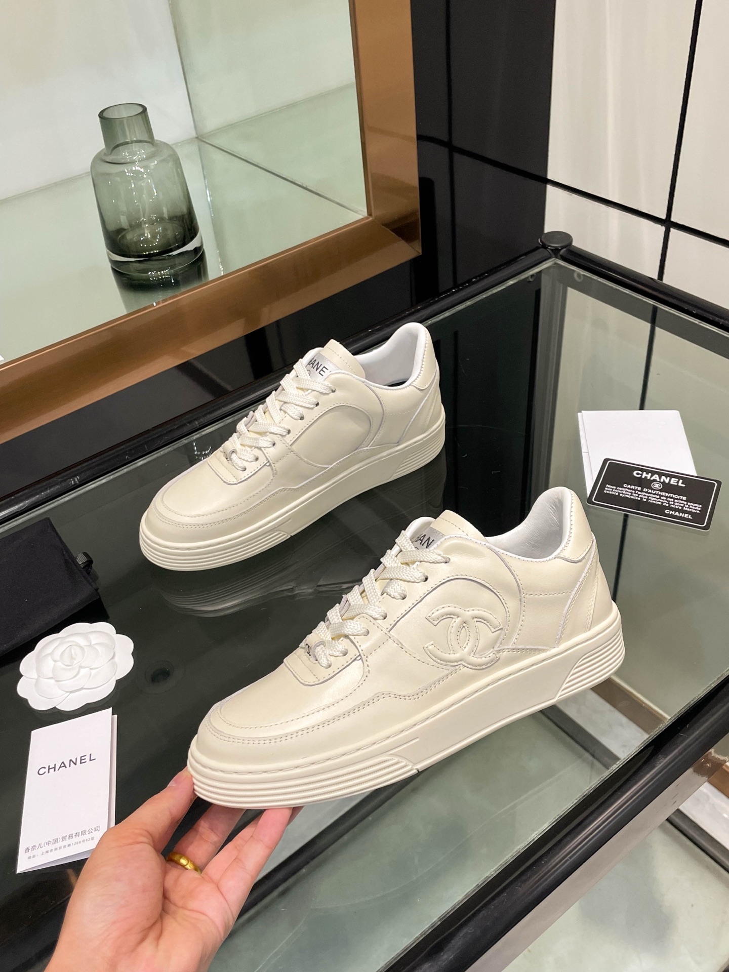 这款鞋子是AAAAA 1:1 质量 (非常棒). 使用了和原版一模一样的材料. 商标部分也保持了和香奈儿/Chanel一样. 图片拍摄是实物鞋子拍摄, 您所收到的实物保证和我们图片一模一样.