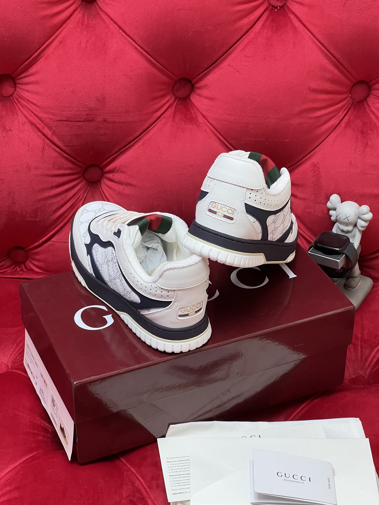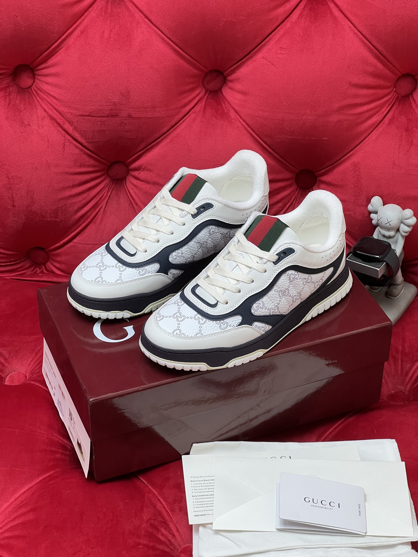 这款鞋子是AAAAA 1:1 质量 (非常棒). 使用了和原版一模一样的材料. 商标部分也保持了和古奇/Gucci一样. 图片拍摄是实物鞋子拍摄, 您所收到的实物保证和我们图片一模一样.