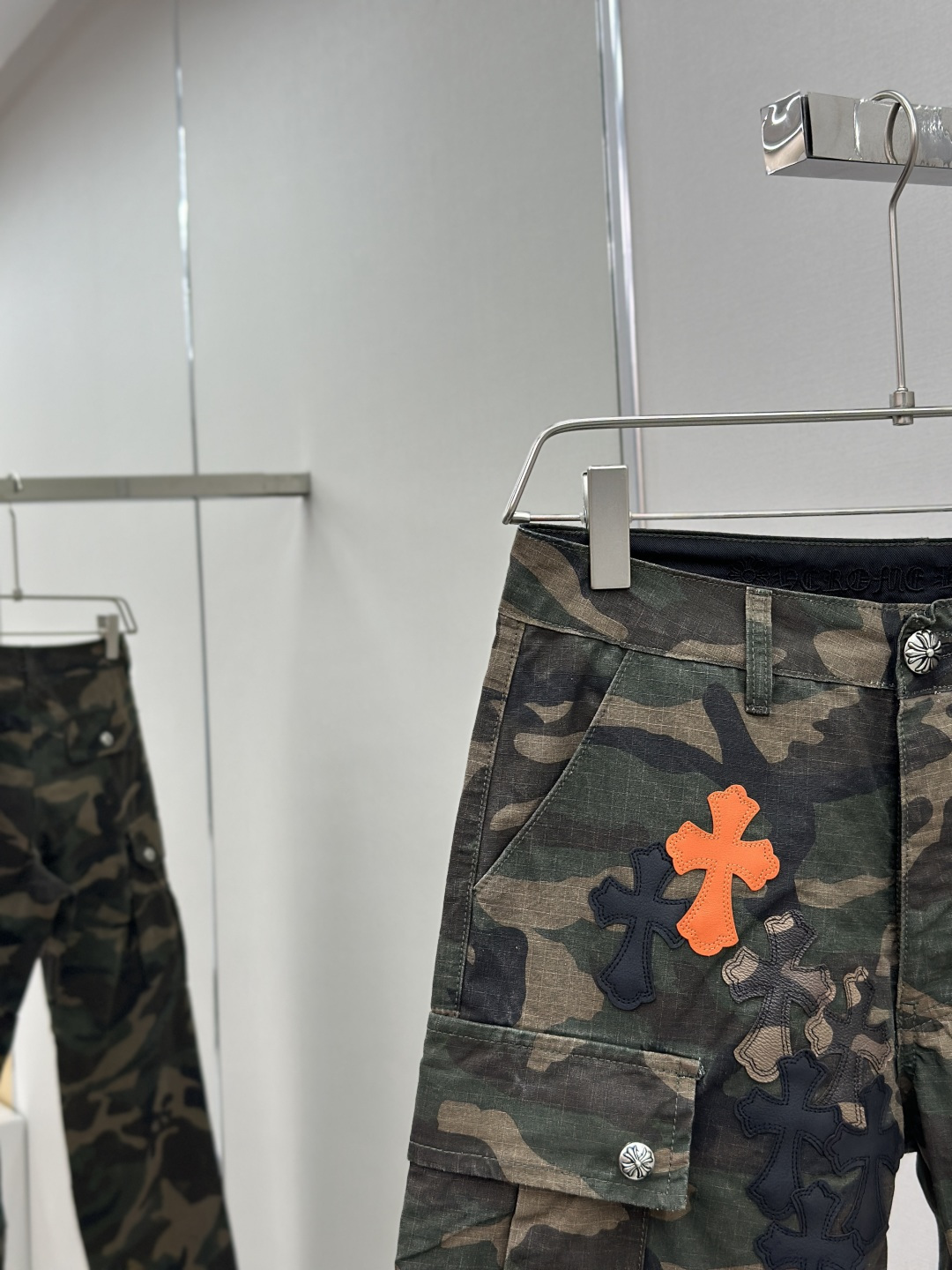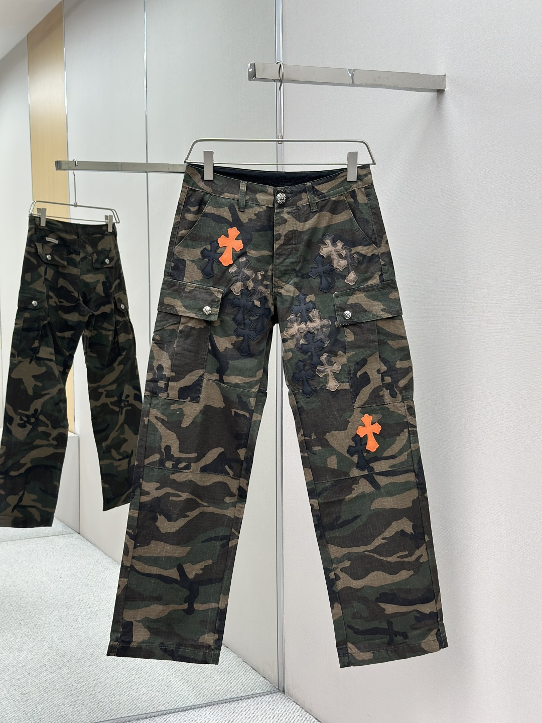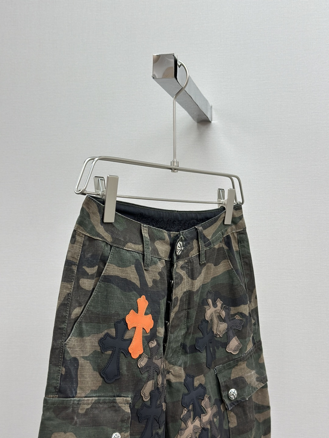 这款衣服是AAAAA 1:1 质量 (非常棒). 使用了和原版一模一样的材料. 商标部分也保持了和克罗心/Chrome Hearts一样. 图片拍摄是实物衣服拍摄, 您所收到的实物保证和我们图片一模一样.