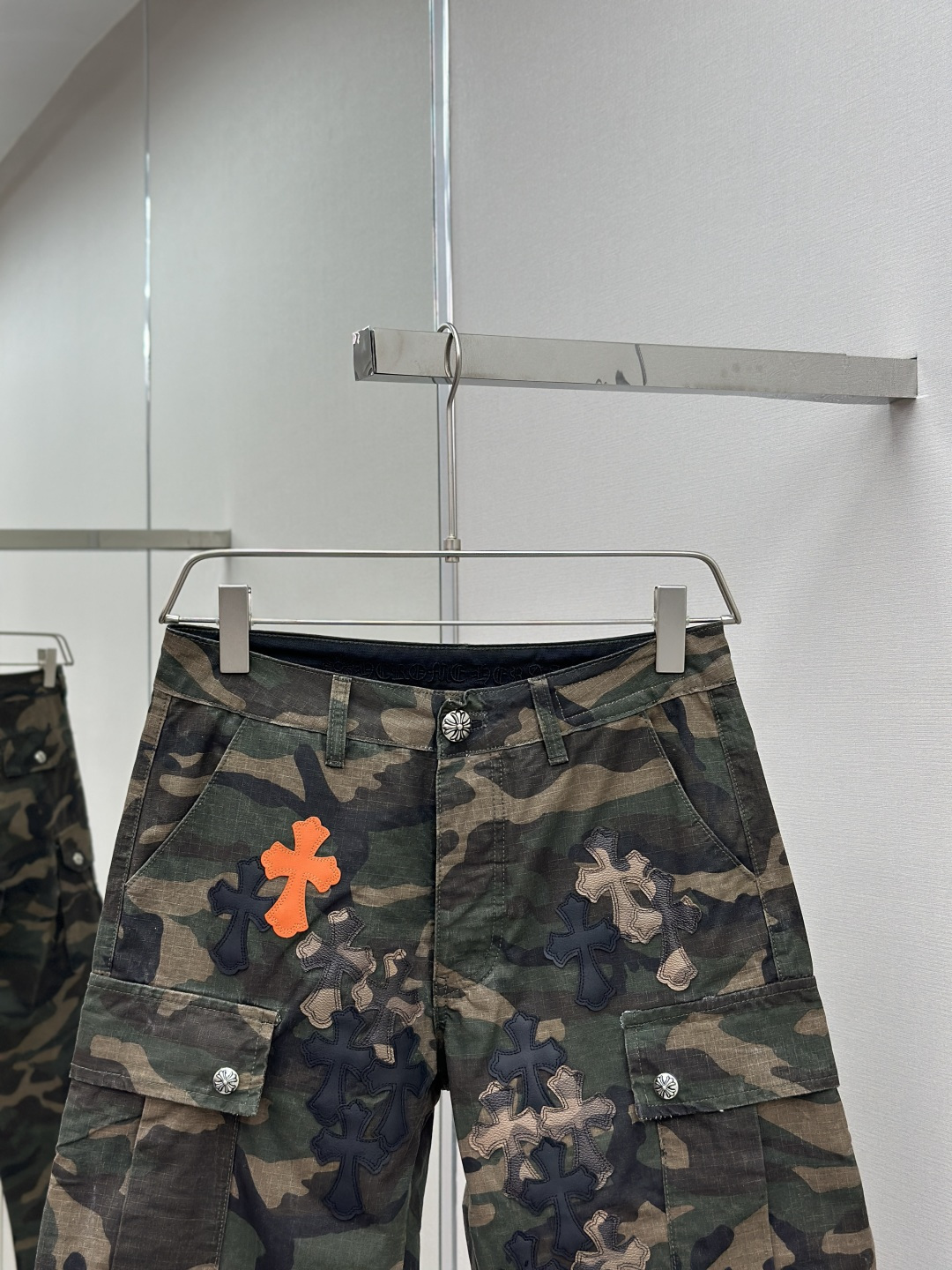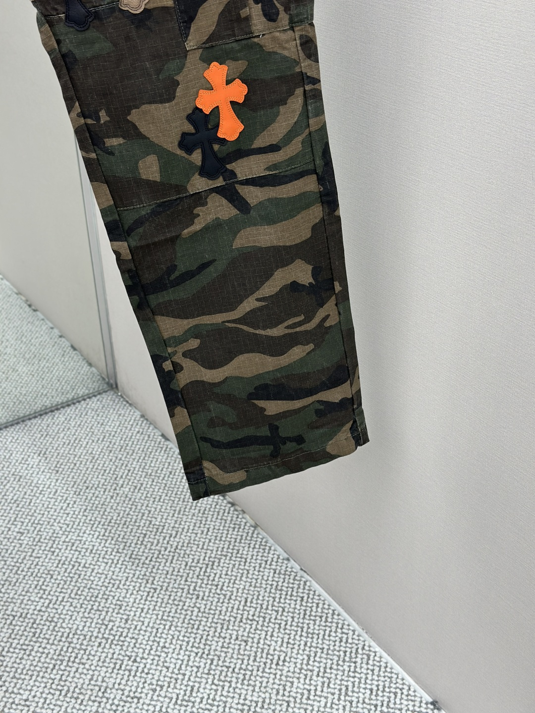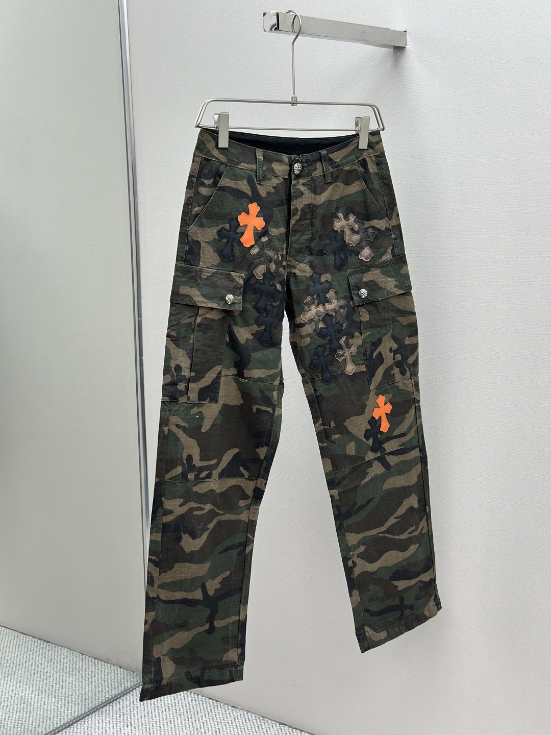 这款衣服是AAAAA 1:1 质量 (非常棒). 使用了和原版一模一样的材料. 商标部分也保持了和克罗心/Chrome Hearts一样. 图片拍摄是实物衣服拍摄, 您所收到的实物保证和我们图片一模一样.