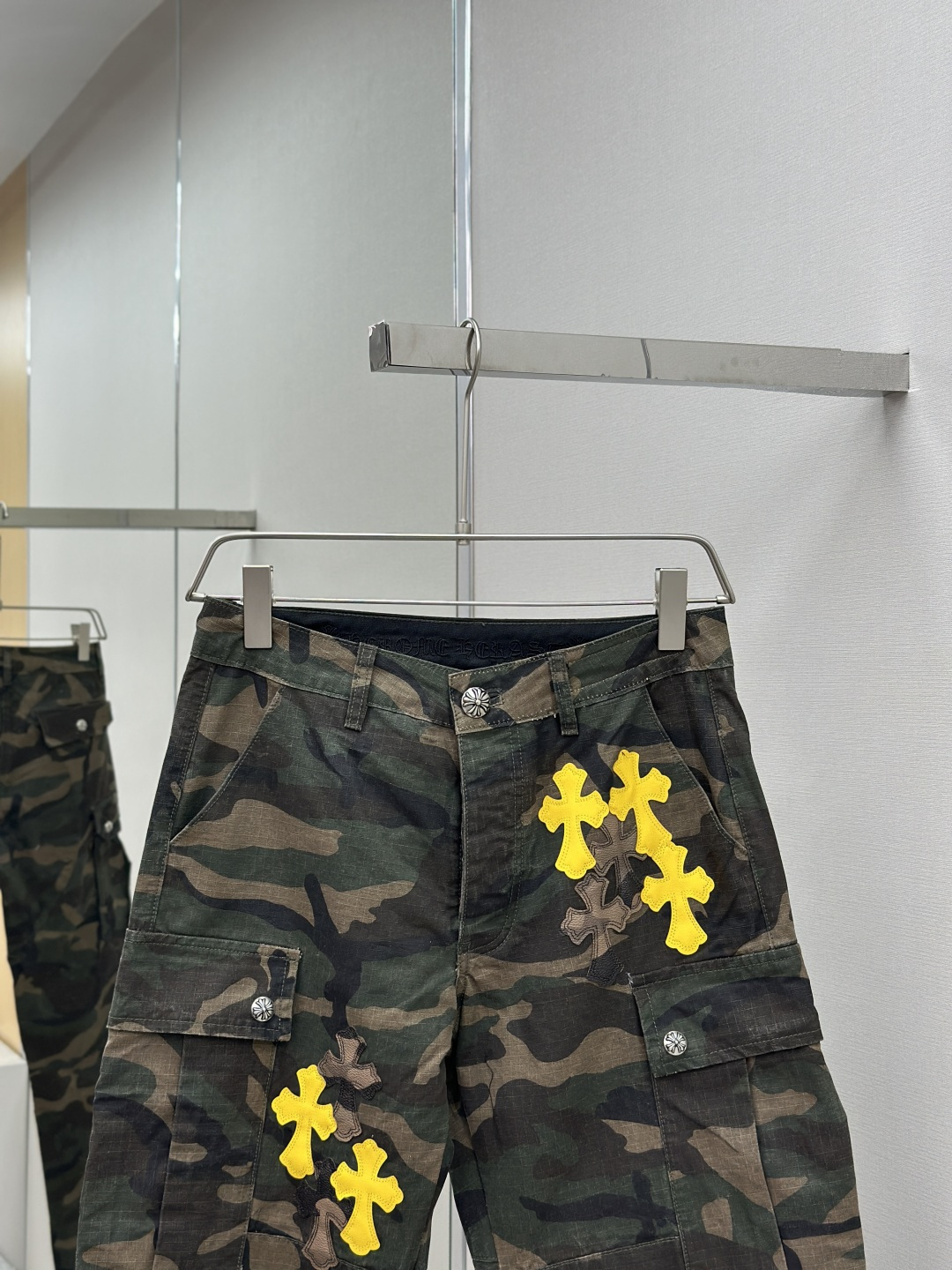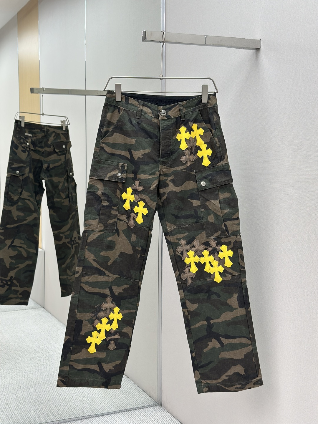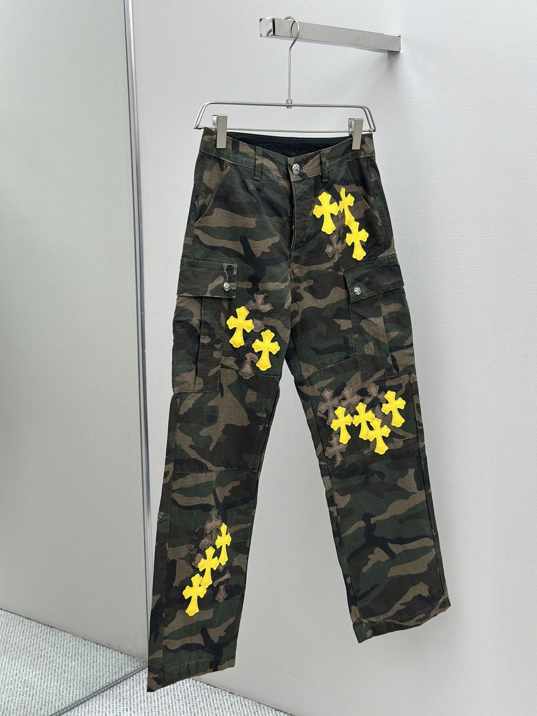 这款衣服是AAAAA 1:1 质量 (非常棒). 使用了和原版一模一样的材料. 商标部分也保持了和克罗心/Chrome Hearts一样. 图片拍摄是实物衣服拍摄, 您所收到的实物保证和我们图片一模一样.