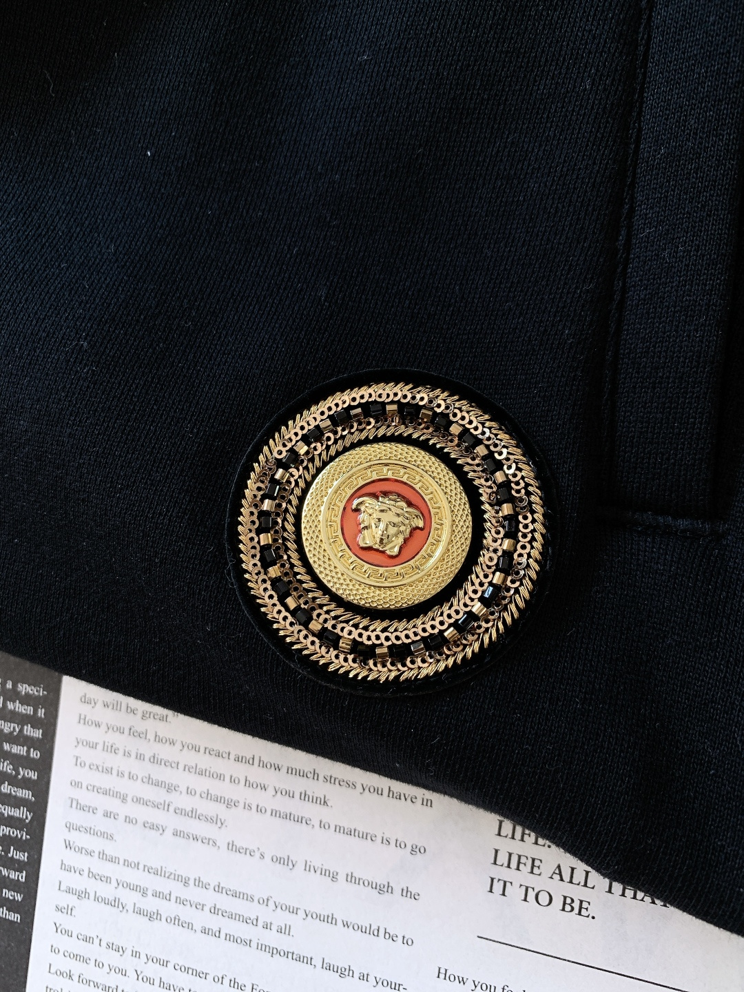 这款衣服是AAAAA 1:1 质量 (非常棒). 使用了和原版一模一样的材料. 商标部分也保持了和范思哲/Versace一样. 图片拍摄是实物衣服拍摄, 您所收到的实物保证和我们图片一模一样.