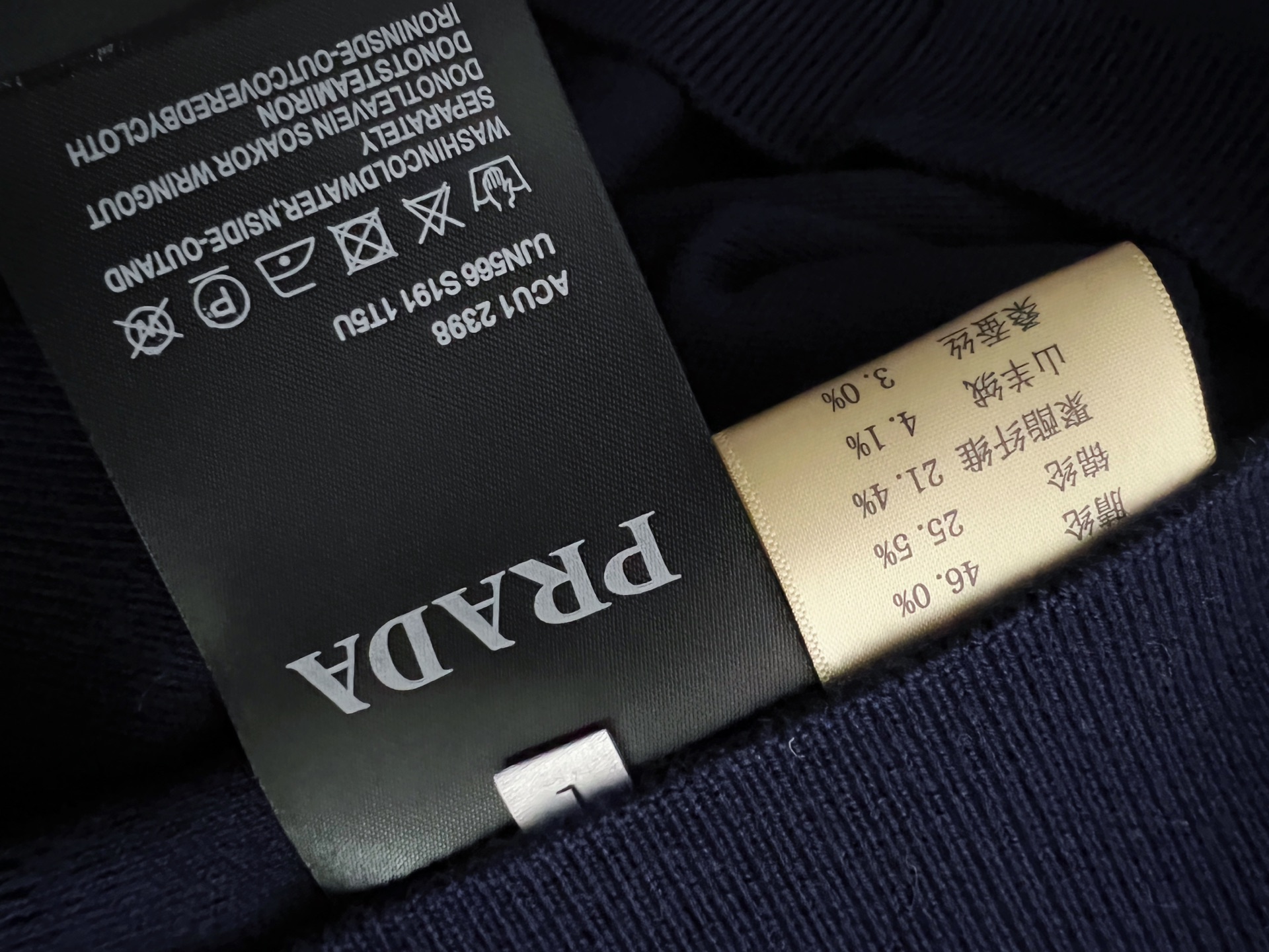 这款衣服是AAAAA 1:1 质量 (非常棒). 使用了和原版一模一样的材料. 商标部分也保持了和普拉达/Prada一样. 图片拍摄是实物衣服拍摄, 您所收到的实物保证和我们图片一模一样.