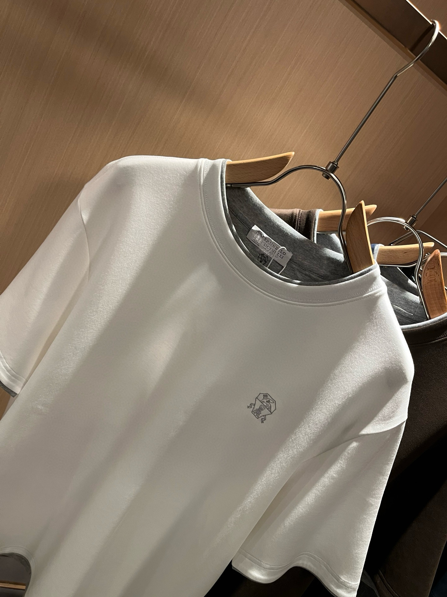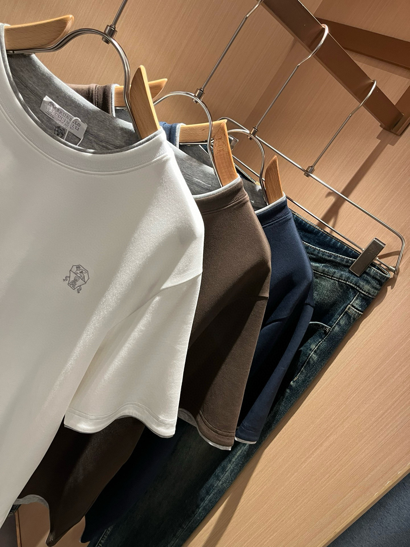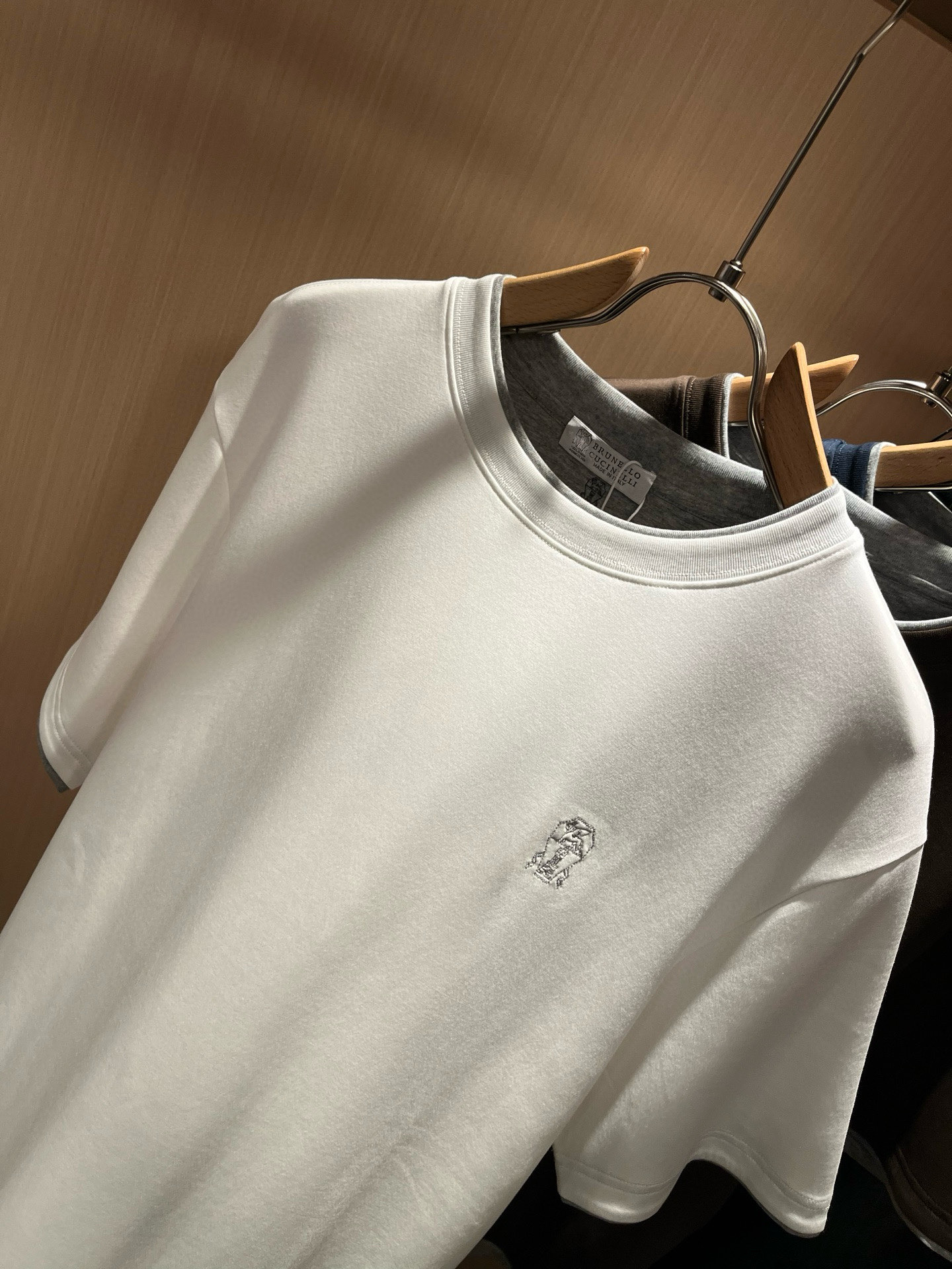 这款衣服是AAAAA 1:1 质量 (非常棒). 使用了和原版一模一样的材料. 商标部分也保持了和Brunello Cucinelli一样. 图片拍摄是实物衣服拍摄, 您所收到的实物保证和我们图片一模一样.