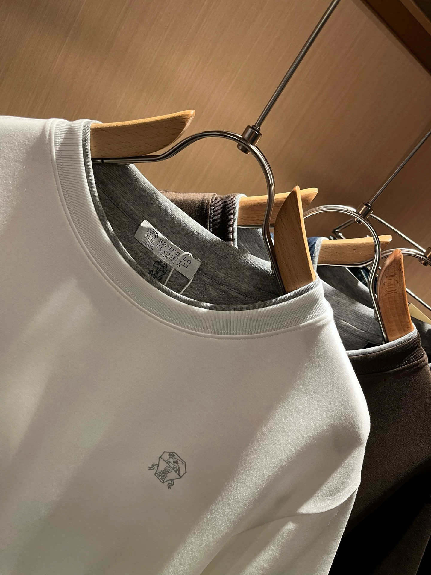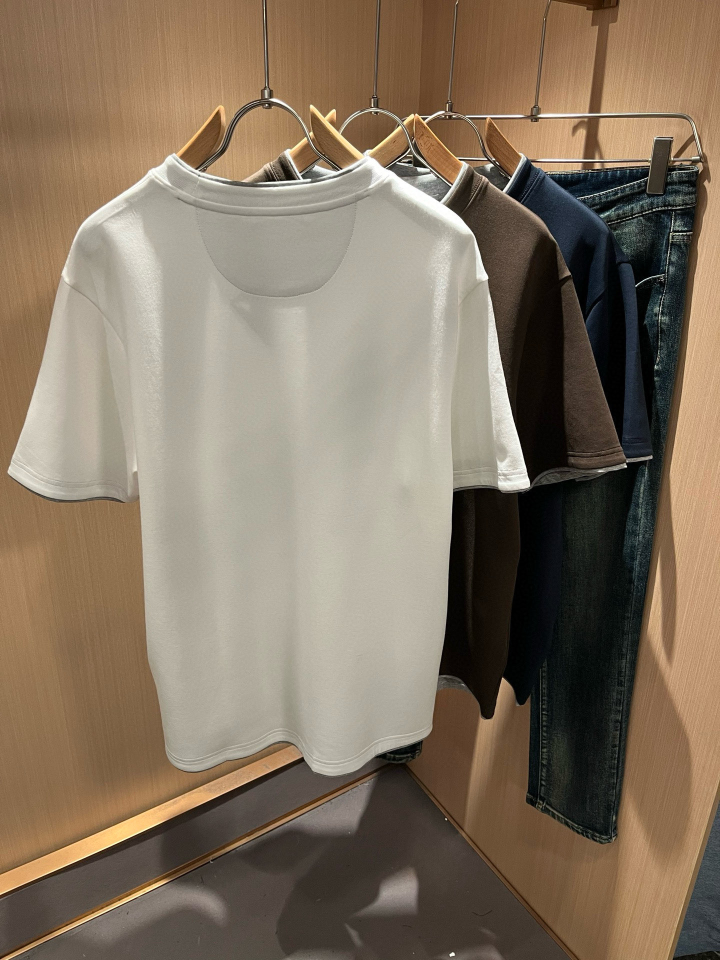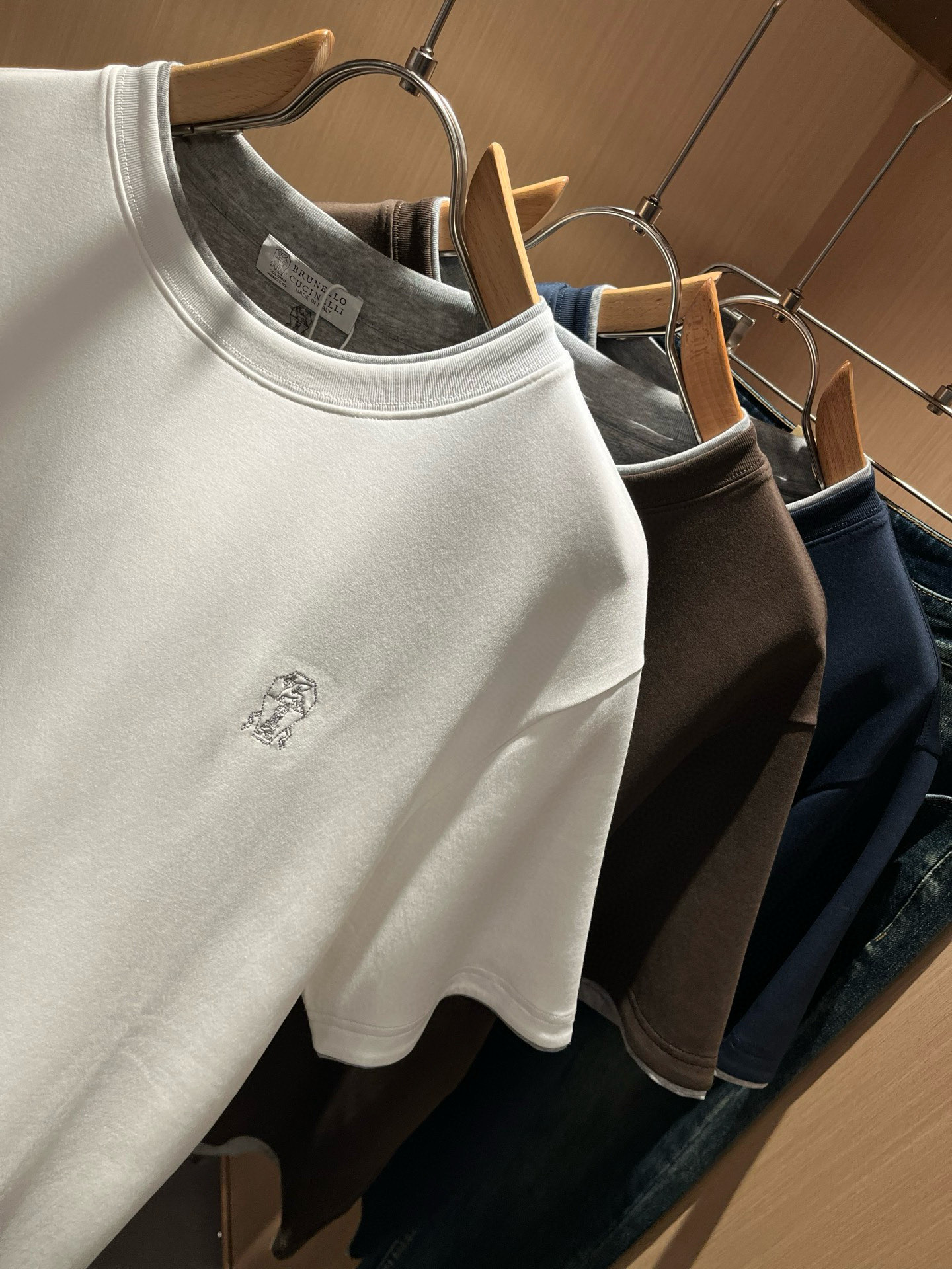 这款衣服是AAAAA 1:1 质量 (非常棒). 使用了和原版一模一样的材料. 商标部分也保持了和Brunello Cucinelli一样. 图片拍摄是实物衣服拍摄, 您所收到的实物保证和我们图片一模一样.