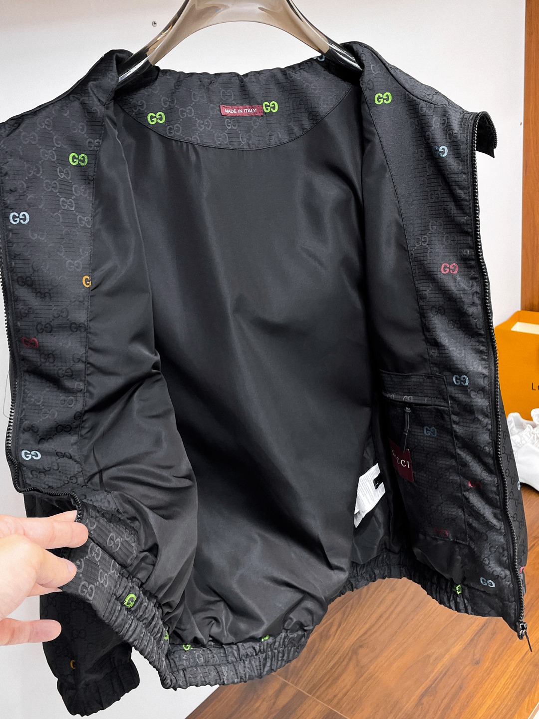 这款衣服是AAAAA 1:1 质量 (非常棒). 使用了和原版一模一样的材料. 商标部分也保持了和古奇/Gucci一样. 图片拍摄是实物衣服拍摄, 您所收到的实物保证和我们图片一模一样.