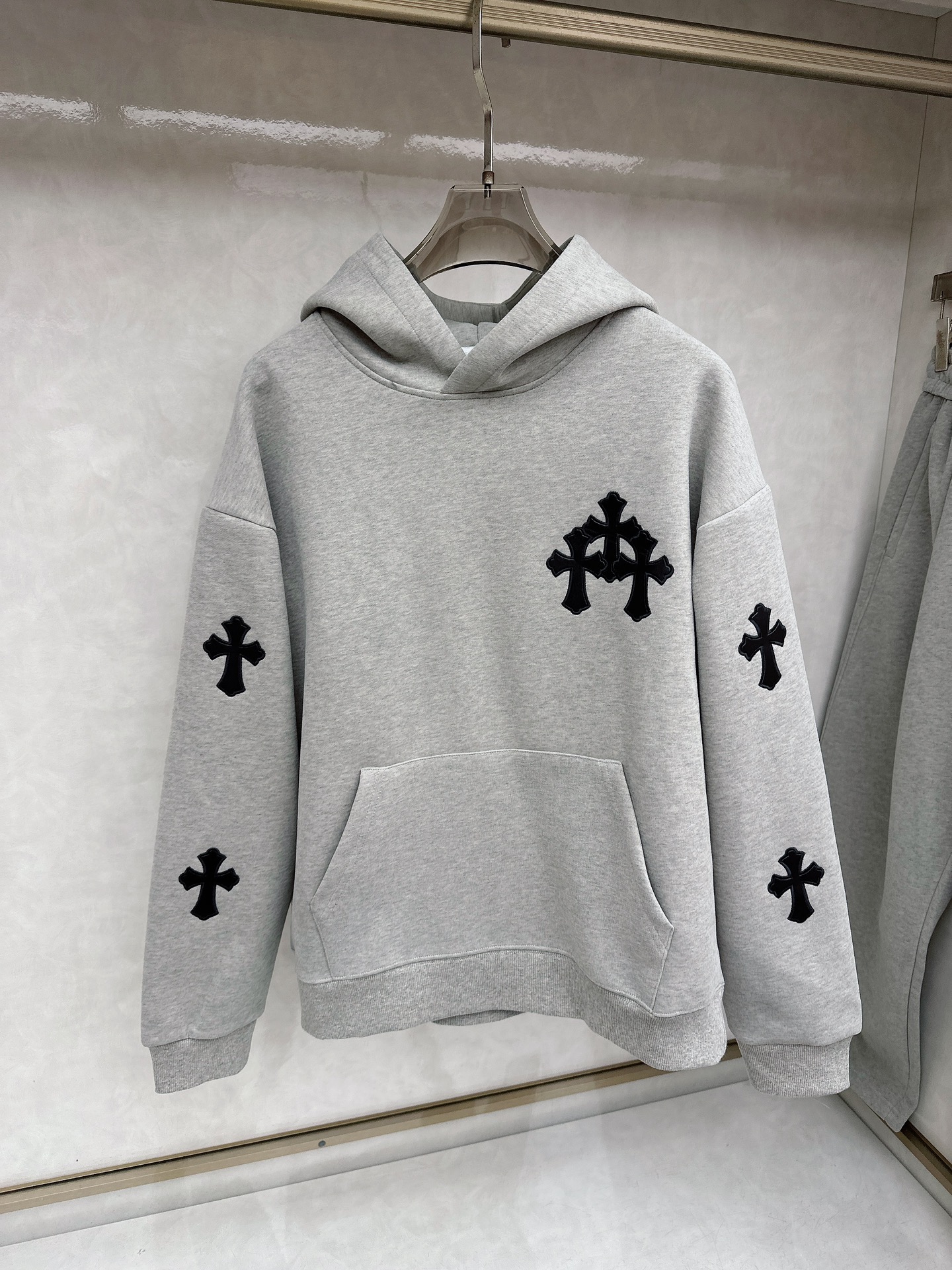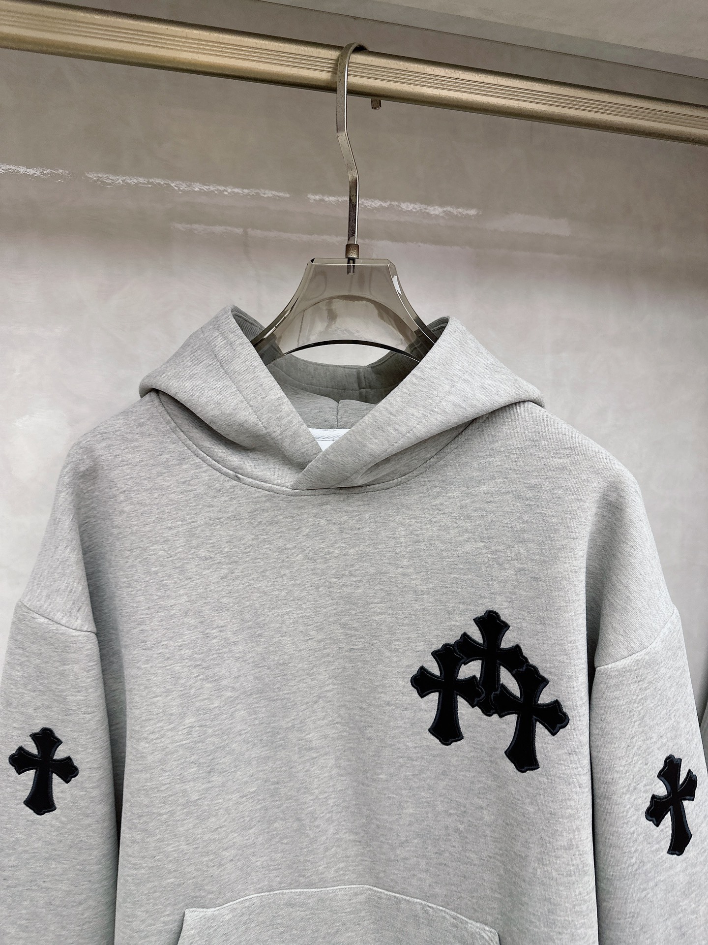 这款衣服是AAAAA 1:1 质量 (非常棒). 使用了和原版一模一样的材料. 商标部分也保持了和克罗心/Chrome Hearts一样. 图片拍摄是实物衣服拍摄, 您所收到的实物保证和我们图片一模一样.