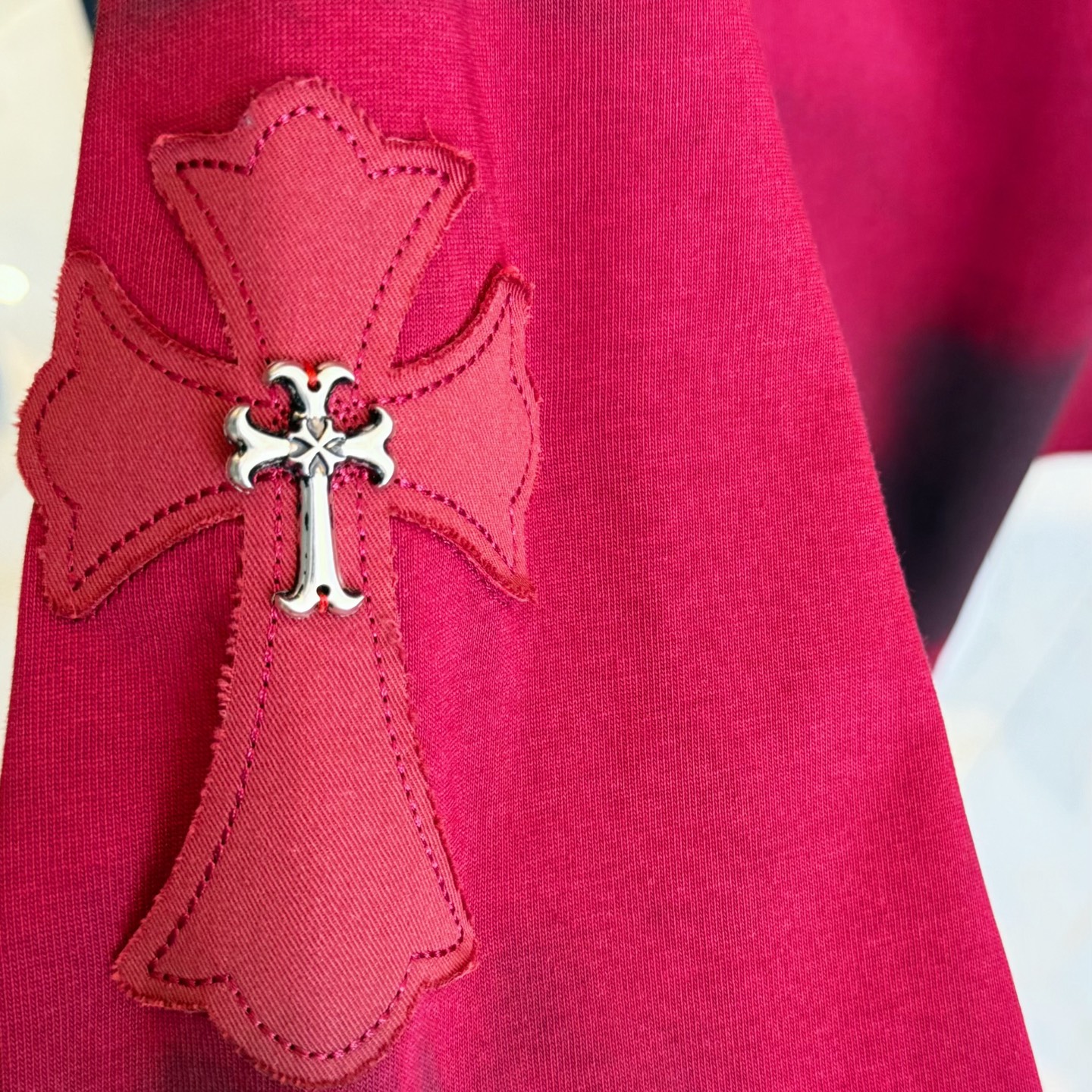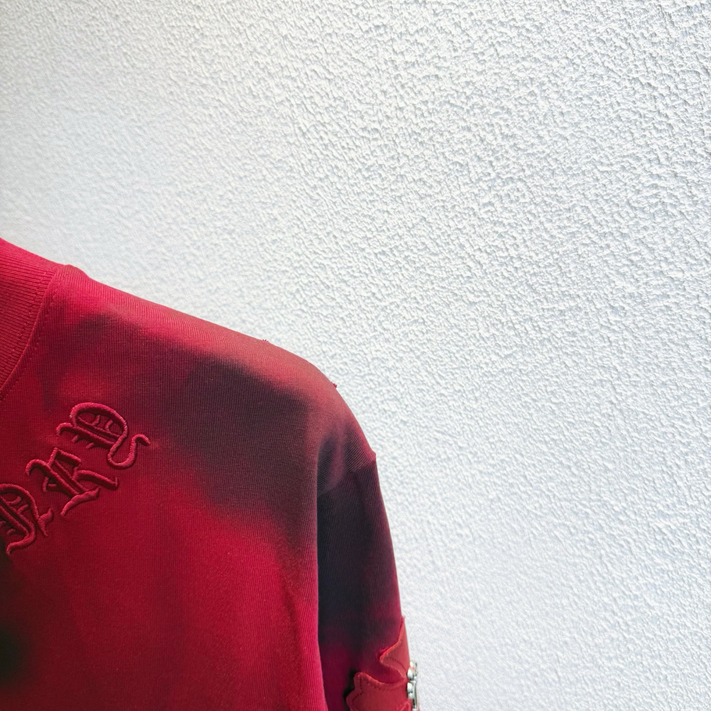 这款衣服是AAAAA 1:1 质量 (非常棒). 使用了和原版一模一样的材料. 商标部分也保持了和克罗心/Chrome Hearts一样. 图片拍摄是实物衣服拍摄, 您所收到的实物保证和我们图片一模一样.