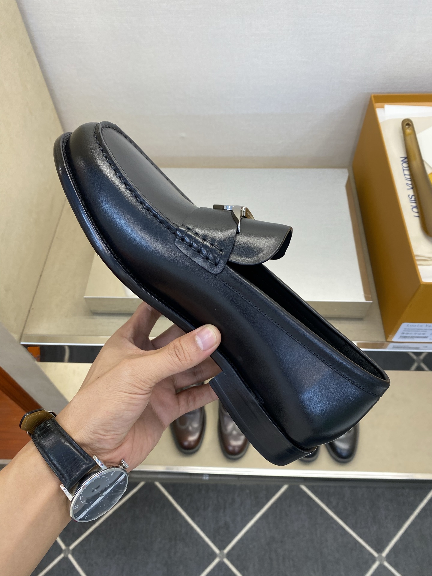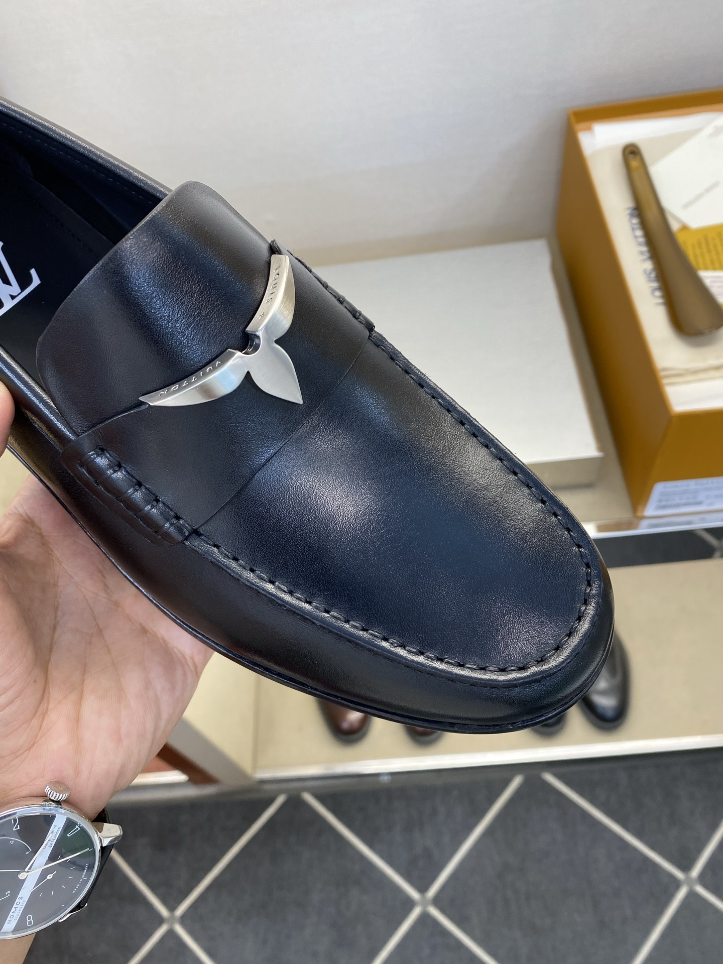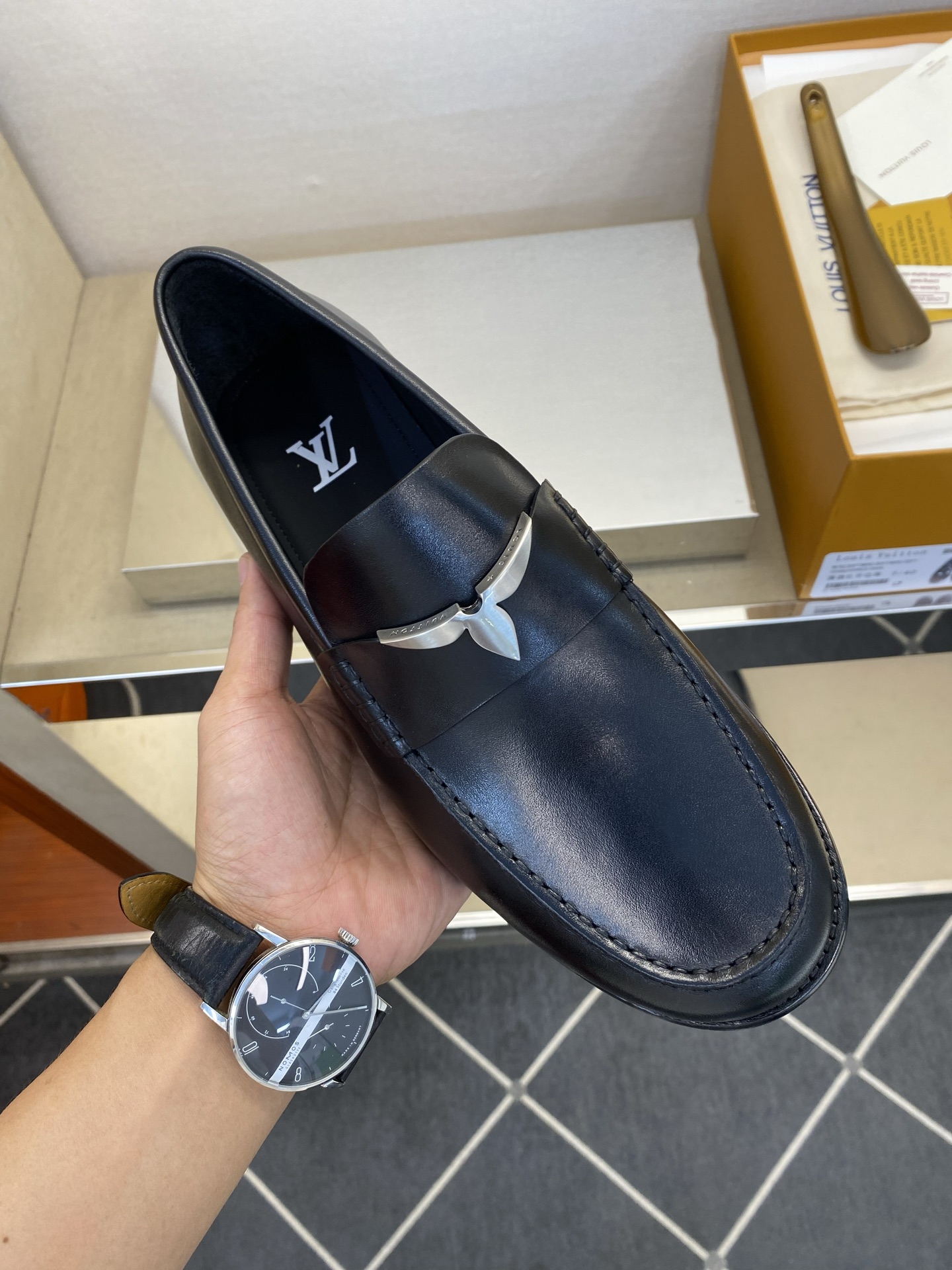 这款鞋子是AAAAA 1:1 质量 (非常棒). 使用了和原版一模一样的材料. 商标部分也保持了和路易威登/Louis Vuitton一样. 图片拍摄是实物鞋子拍摄, 您所收到的实物保证和我们图片一模一样.