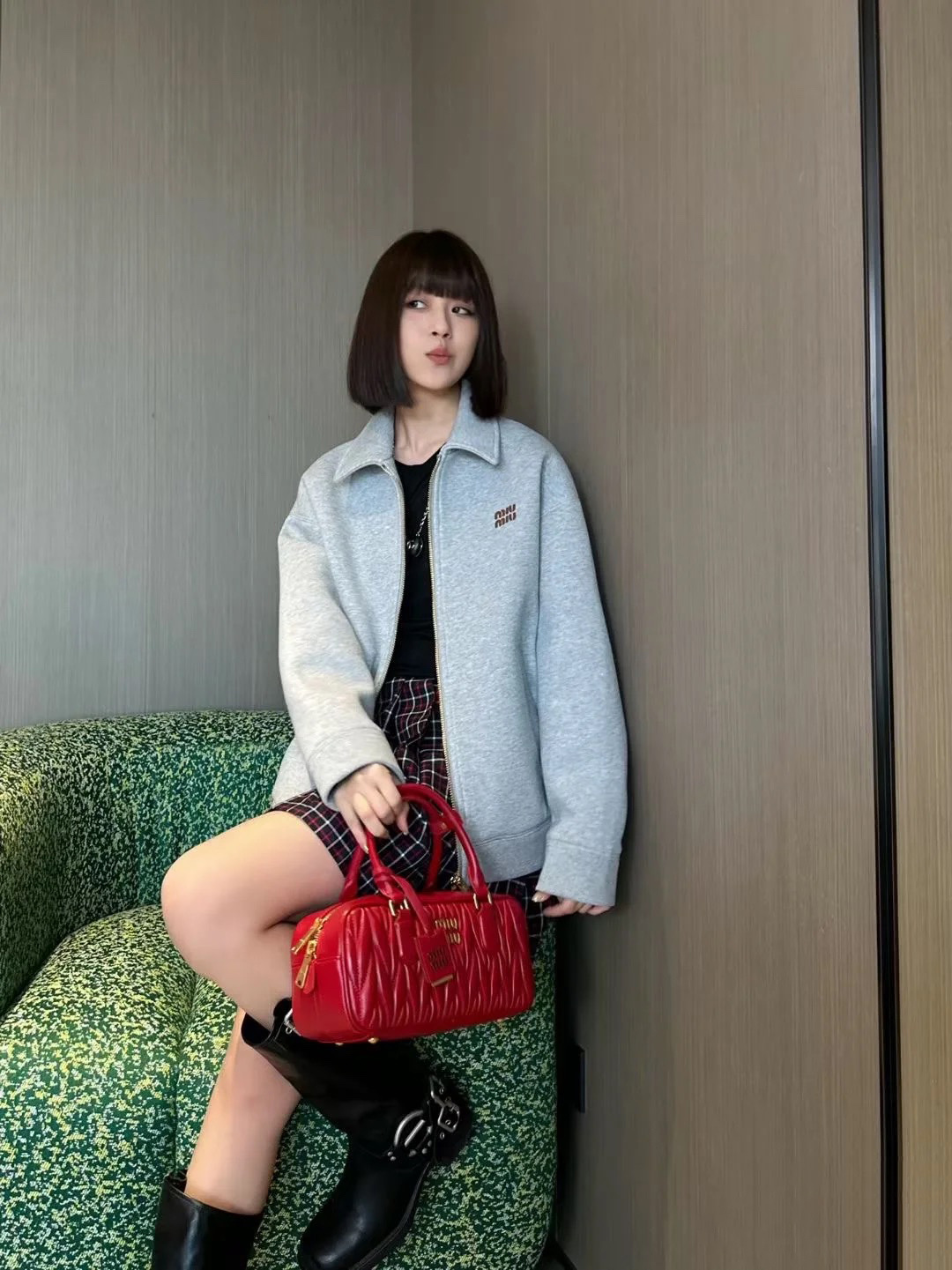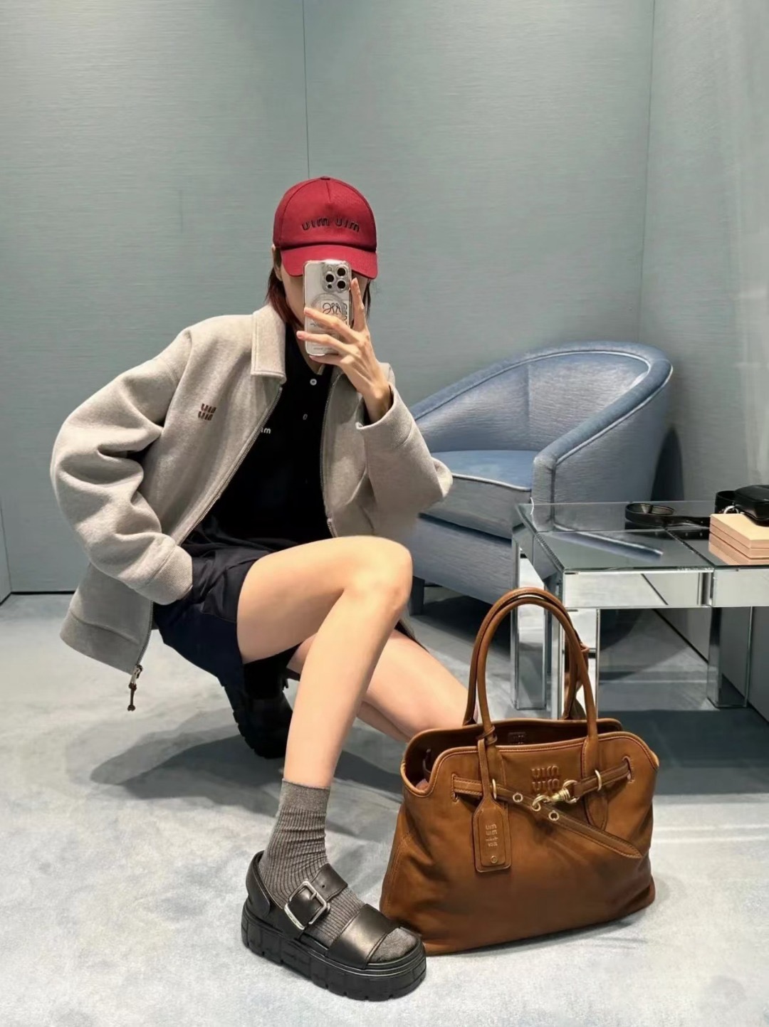 这款衣服是AAAAA 1:1 质量 (非常棒). 使用了和原版一模一样的材料. 商标部分也保持了和缪缪/Miu Miu一样. 图片拍摄是实物衣服拍摄, 您所收到的实物保证和我们图片一模一样.