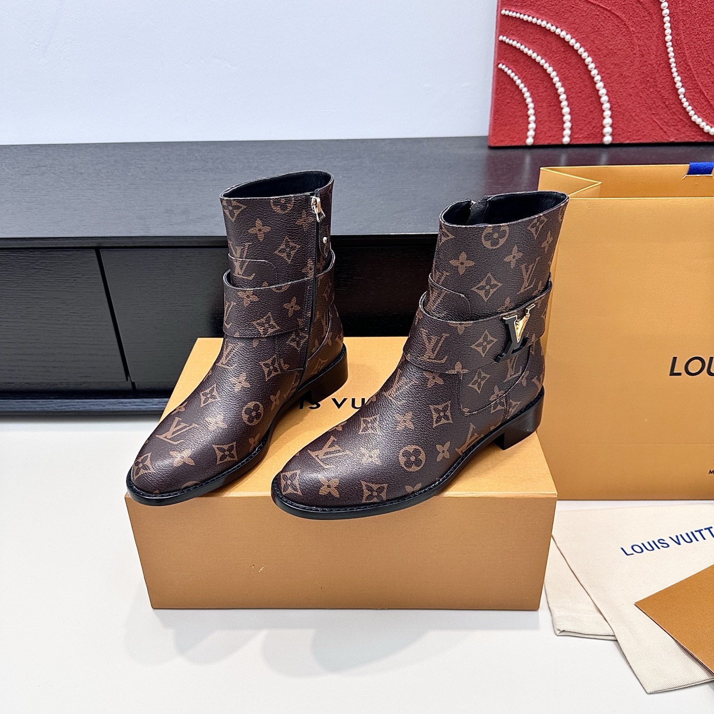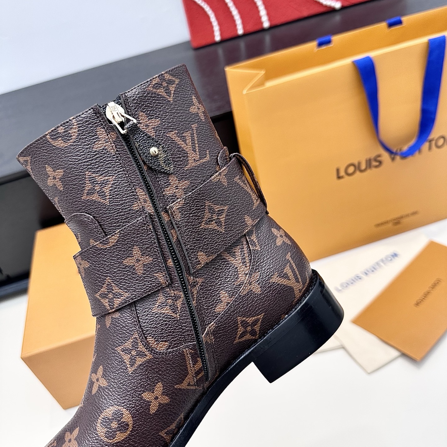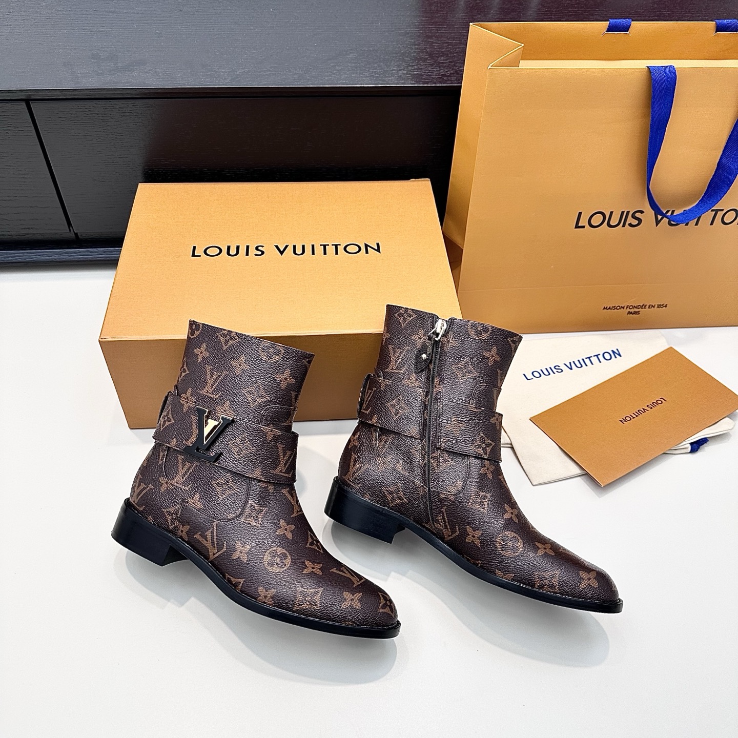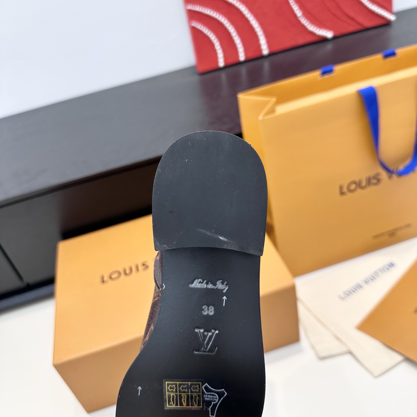 这款鞋子是AAAAA 1:1 质量 (非常棒). 使用了和原版一模一样的材料. 商标部分也保持了和路易威登/Louis Vuitton一样. 图片拍摄是实物鞋子拍摄, 您所收到的实物保证和我们图片一模一样.