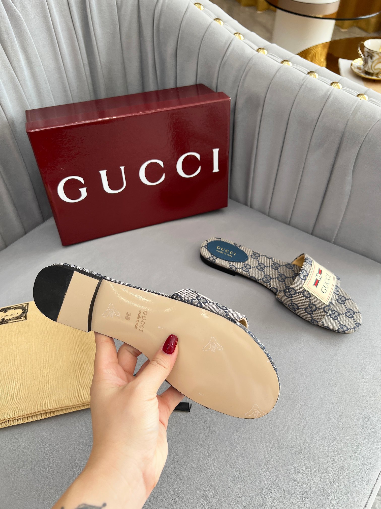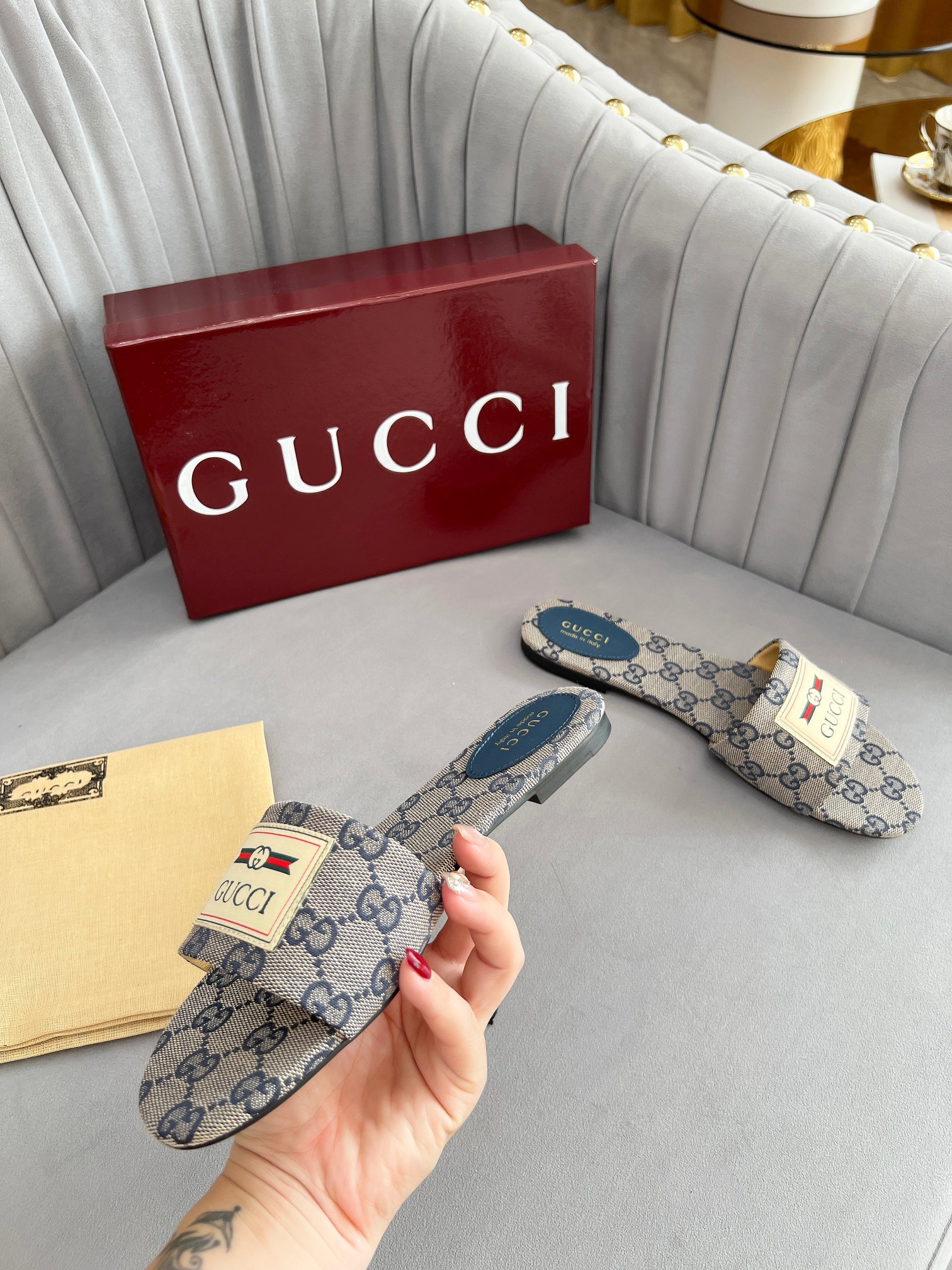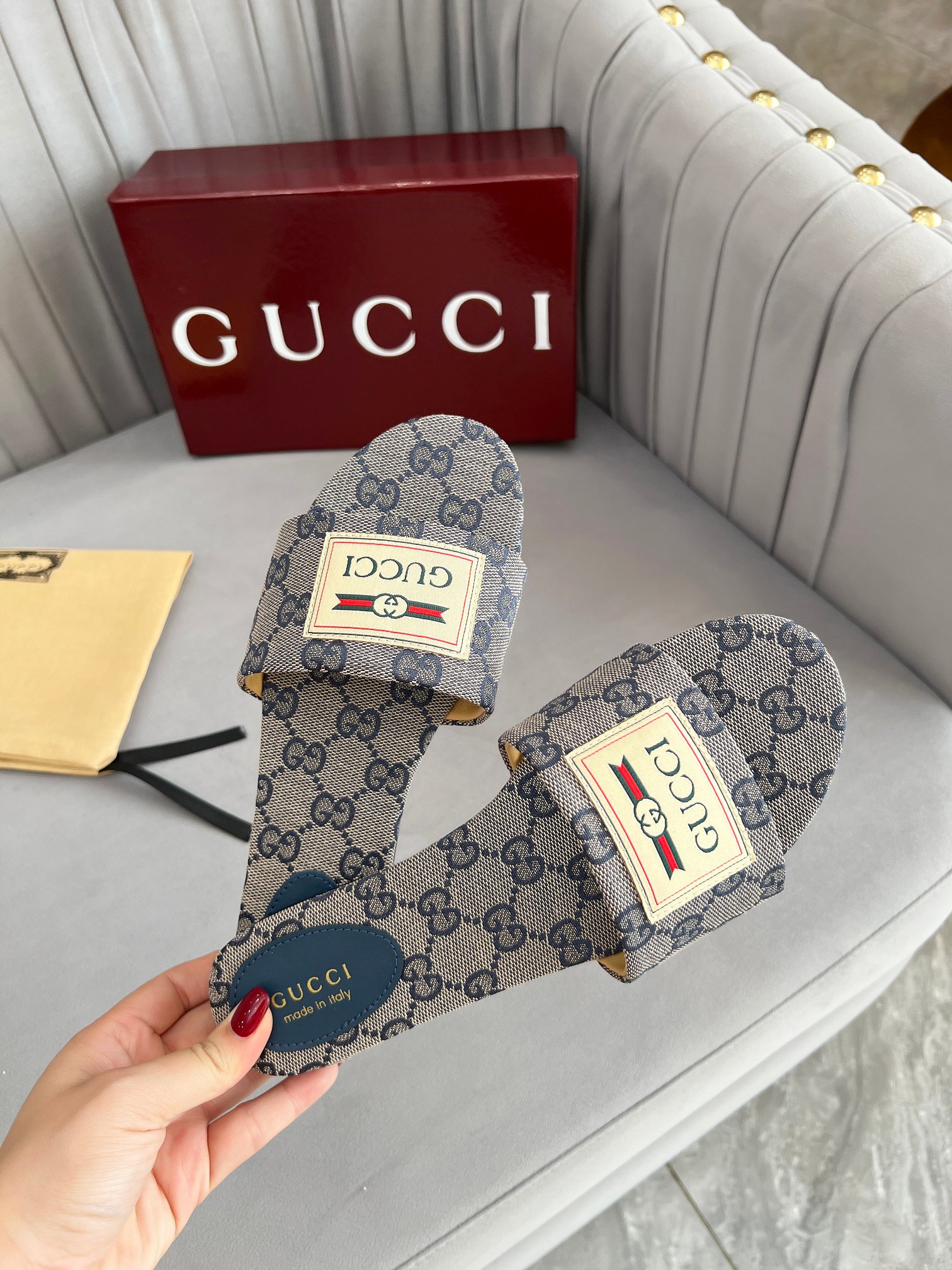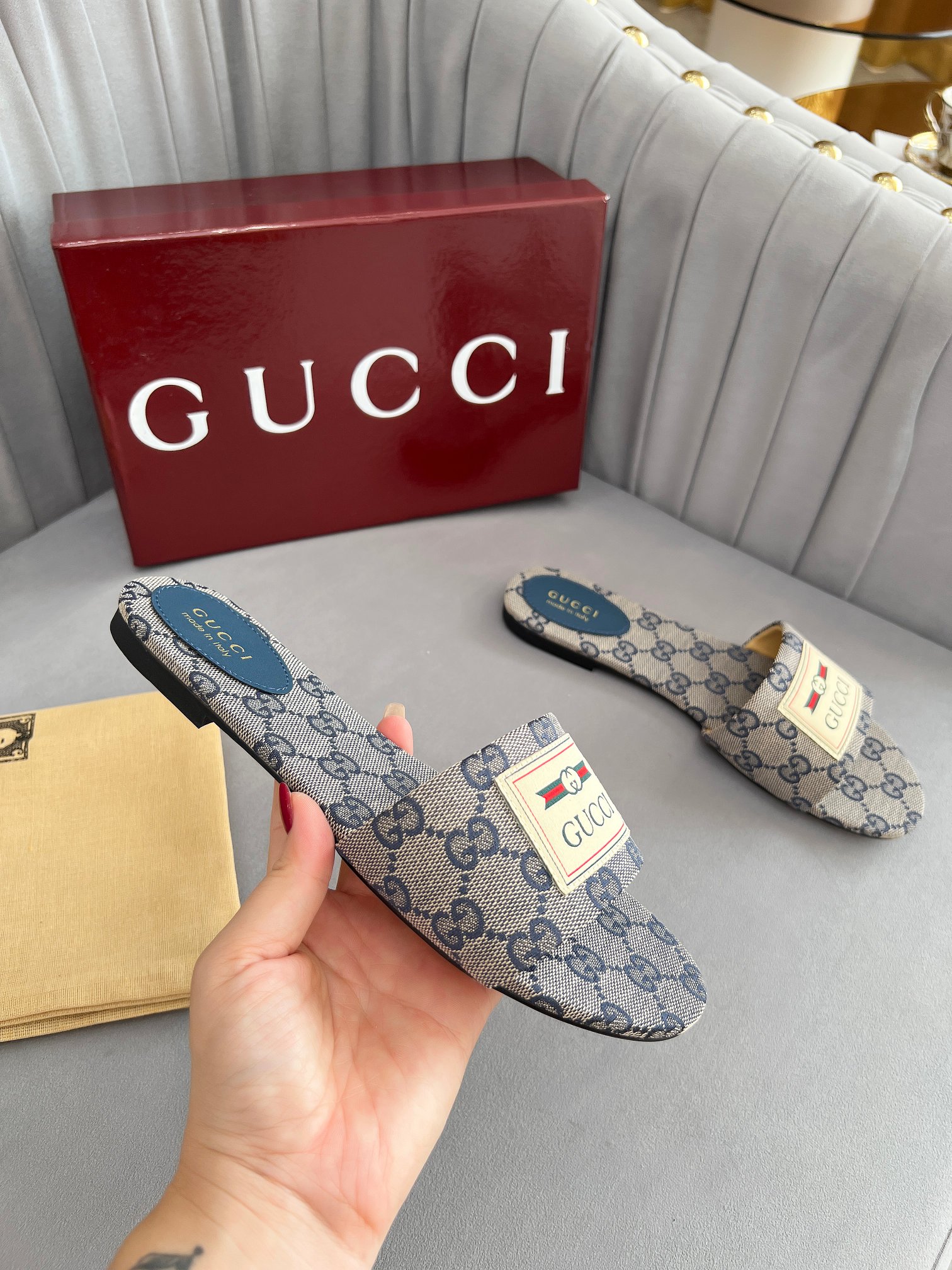 这款鞋子是AAAAA 1:1 质量 (非常棒). 使用了和原版一模一样的材料. 商标部分也保持了和古奇/Gucci一样. 图片拍摄是实物鞋子拍摄, 您所收到的实物保证和我们图片一模一样.