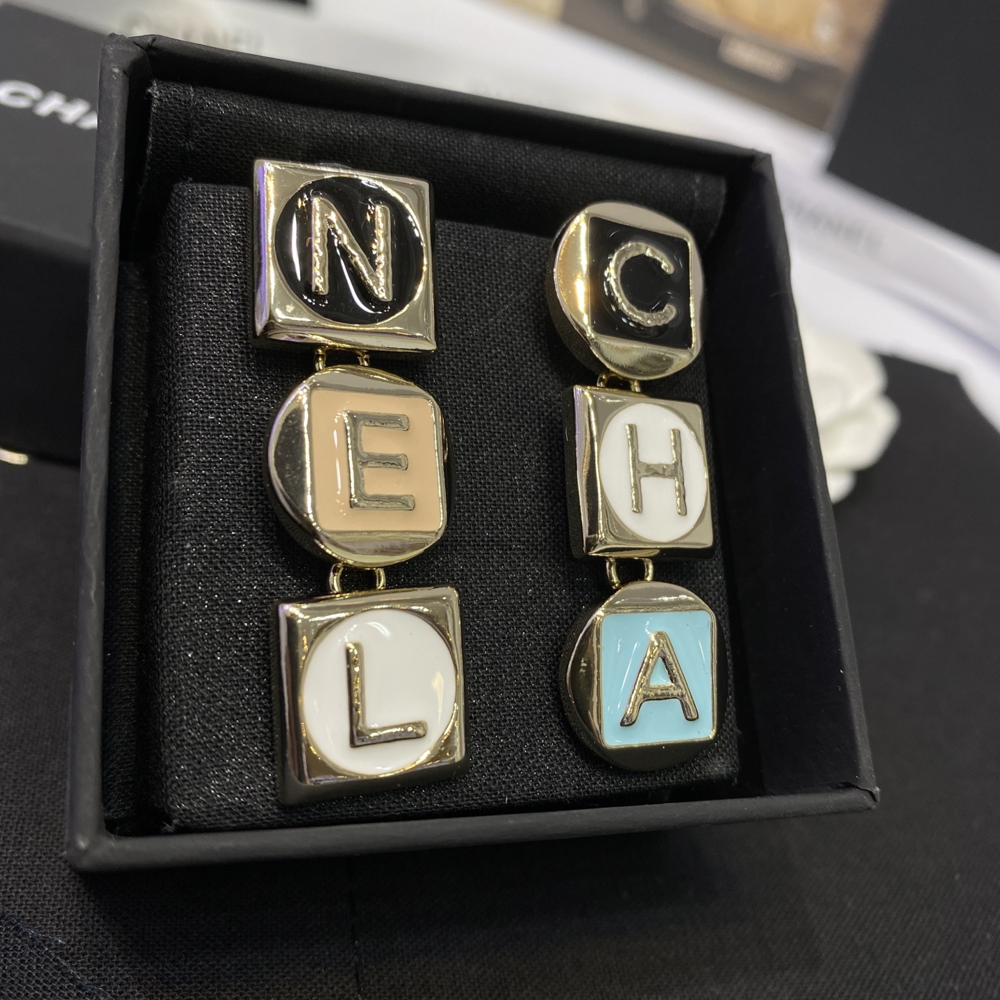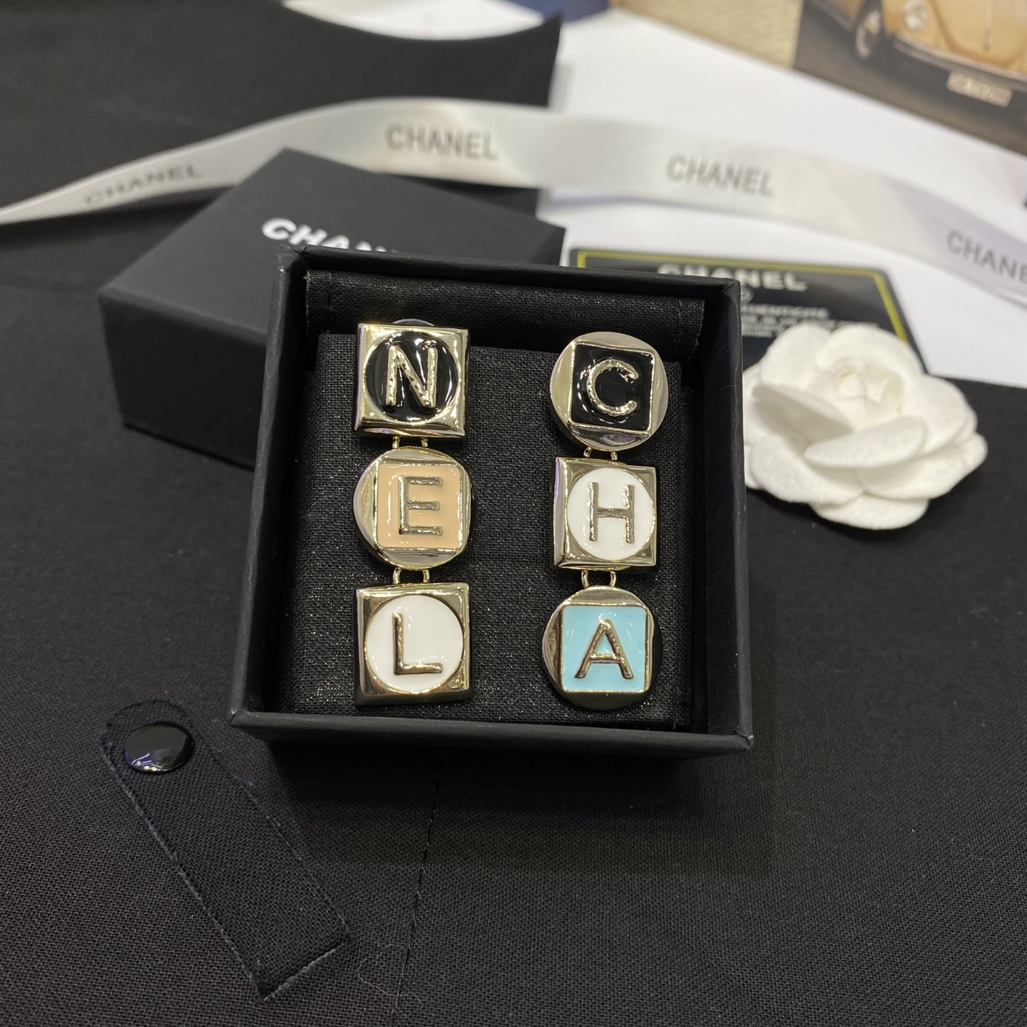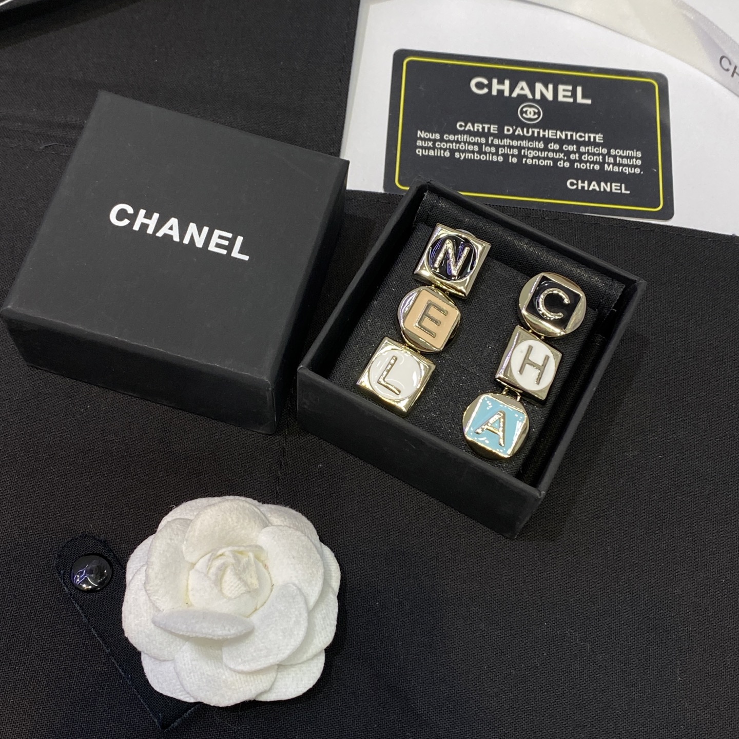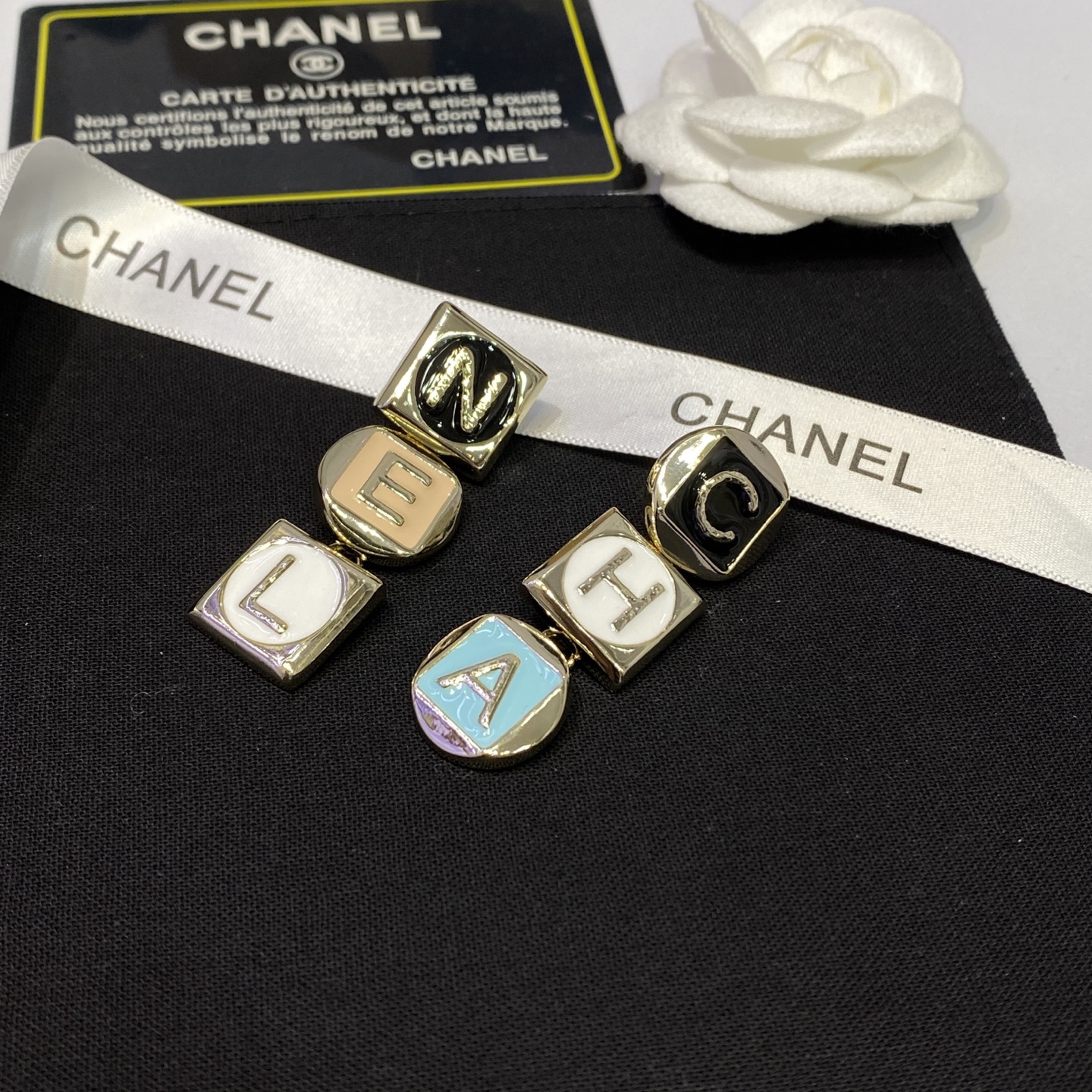 这款首饰是AAAAA 1:1 质量 (非常棒). 使用了和原版一模一样的材料. 商标部分也保持了和香奈儿/Chanel一样. 图片拍摄是实物首饰拍摄, 您所收到的实物保证和我们图片一模一样.