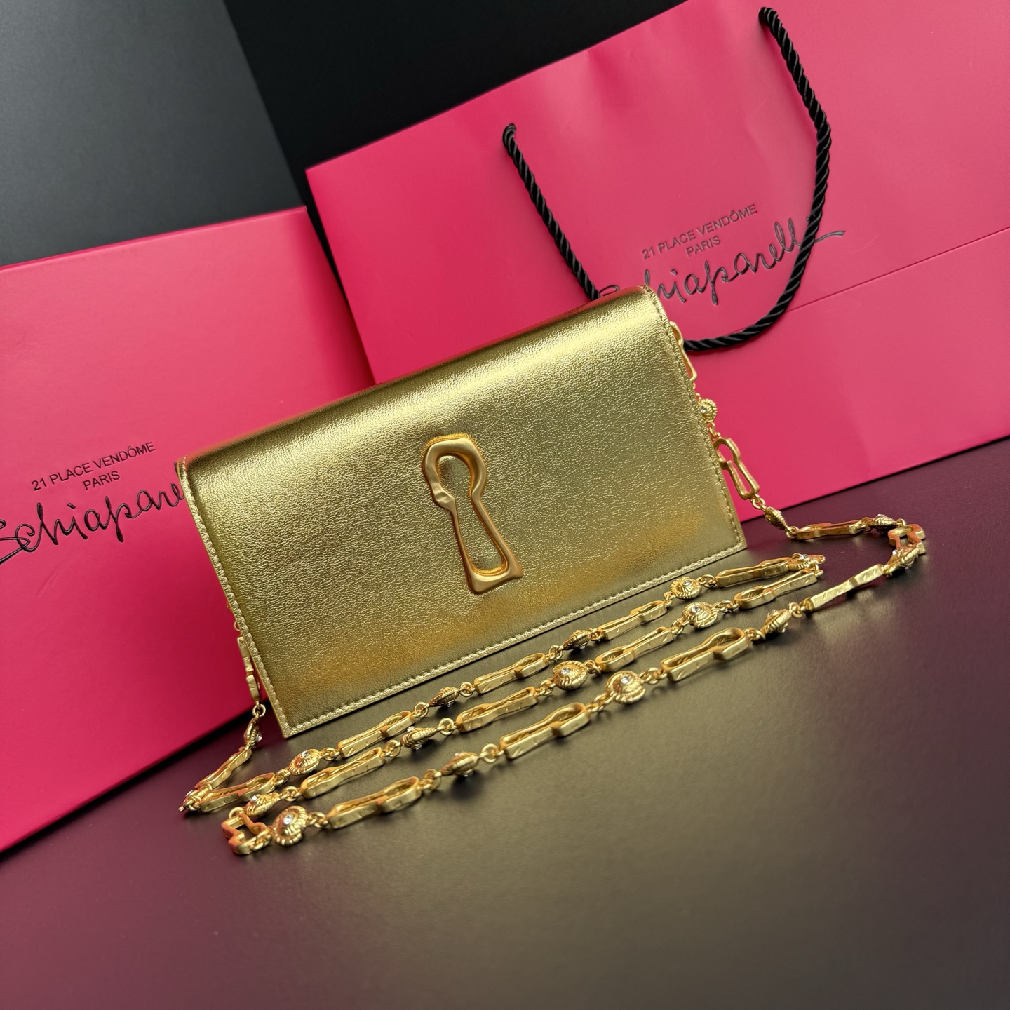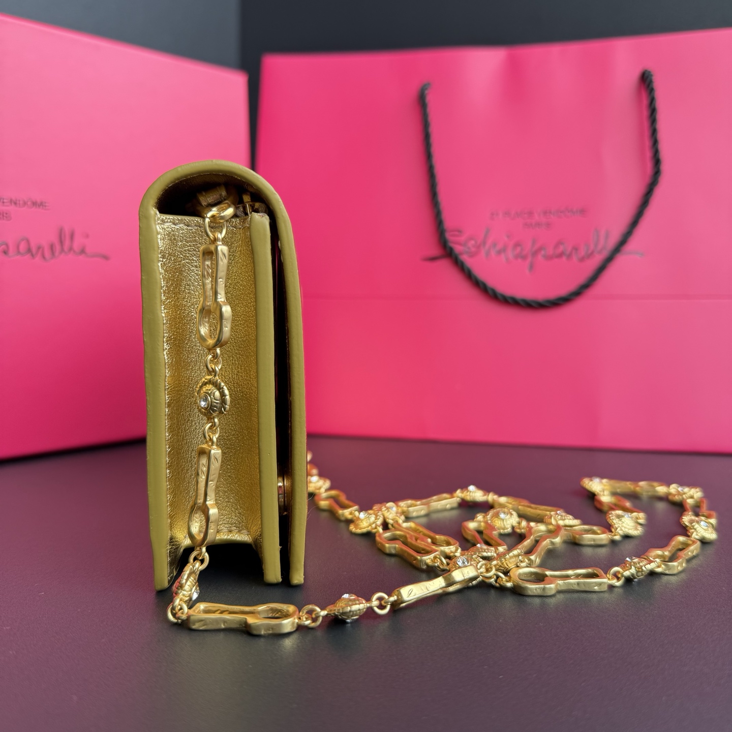 这款首饰是AAAAA 1:1 质量 (非常棒). 使用了和原版一模一样的材料. 商标部分也保持了和Schiaparelli一样. 图片拍摄是实物首饰拍摄, 您所收到的实物保证和我们图片一模一样.