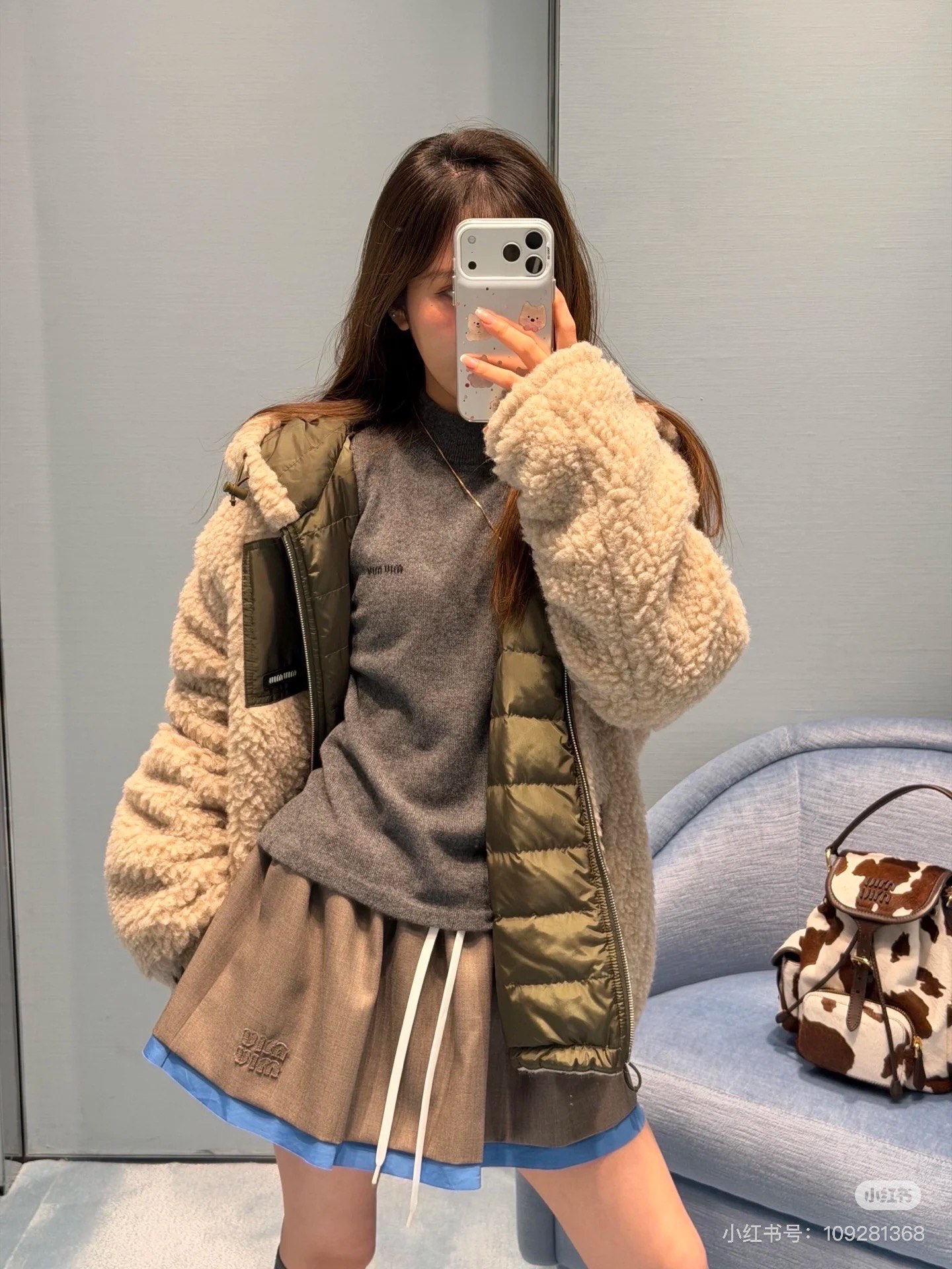 这款衣服是AAAAA 1:1 质量 (非常棒). 使用了和原版一模一样的材料. 商标部分也保持了和缪缪/Miu Miu一样. 图片拍摄是实物衣服拍摄, 您所收到的实物保证和我们图片一模一样.