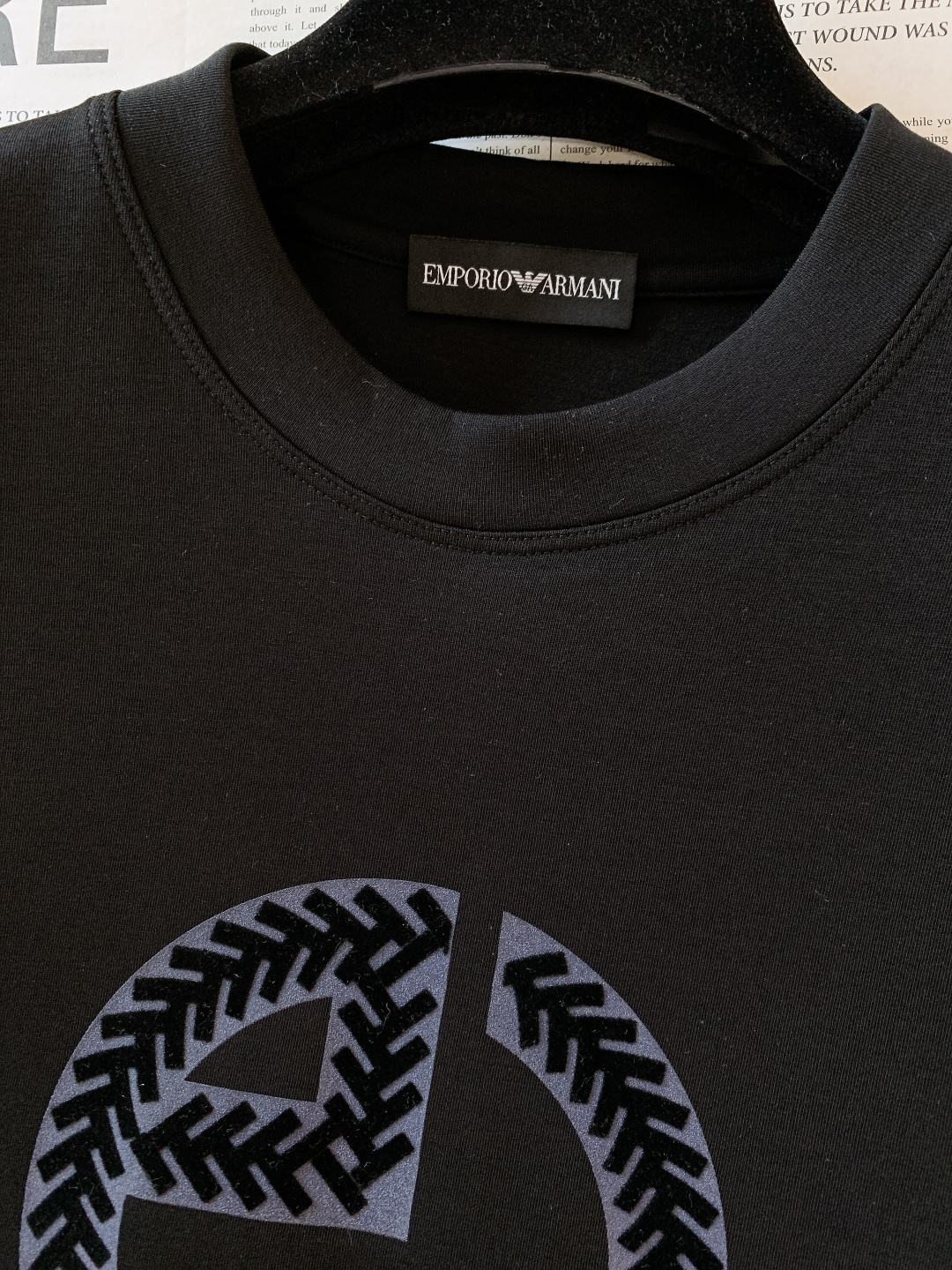 这款衣服是AAAAA 1:1 质量 (非常棒). 使用了和原版一模一样的材料. 商标部分也保持了和阿玛尼/Armani一样. 图片拍摄是实物衣服拍摄, 您所收到的实物保证和我们图片一模一样.
