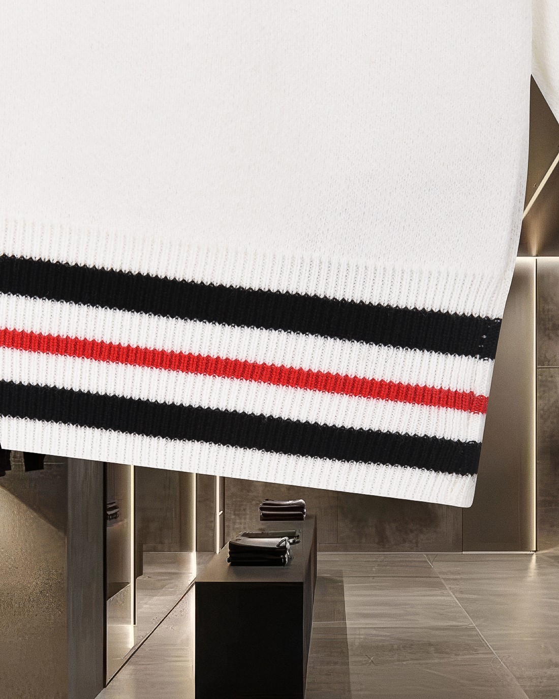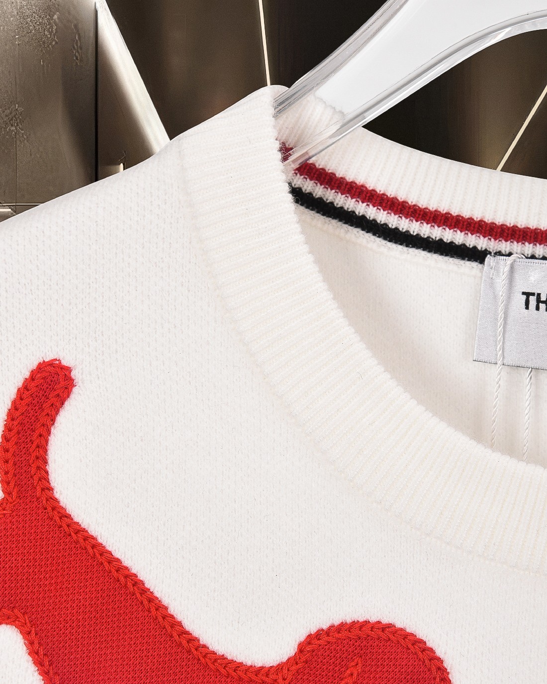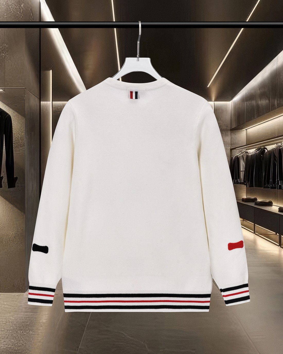 这款衣服是AAAAA 1:1 质量 (非常棒). 使用了和原版一模一样的材料. 商标部分也保持了和汤姆布朗/Thom Browne一样. 图片拍摄是实物衣服拍摄, 您所收到的实物保证和我们图片一模一样.