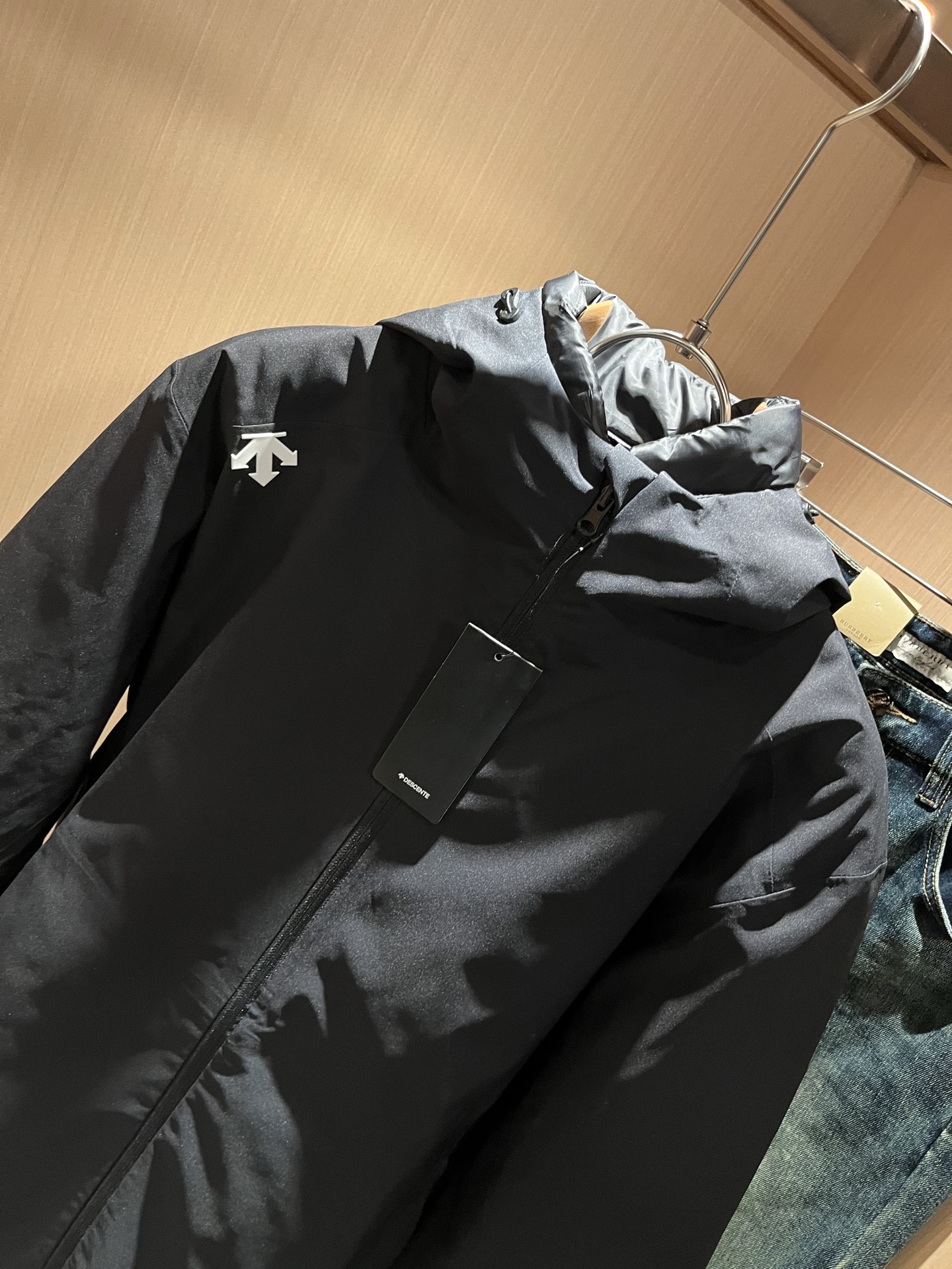 这款衣服是AAAAA 1:1 质量 (非常棒). 使用了和原版一模一样的材料. 商标部分也保持了和Descente一样. 图片拍摄是实物衣服拍摄, 您所收到的实物保证和我们图片一模一样.