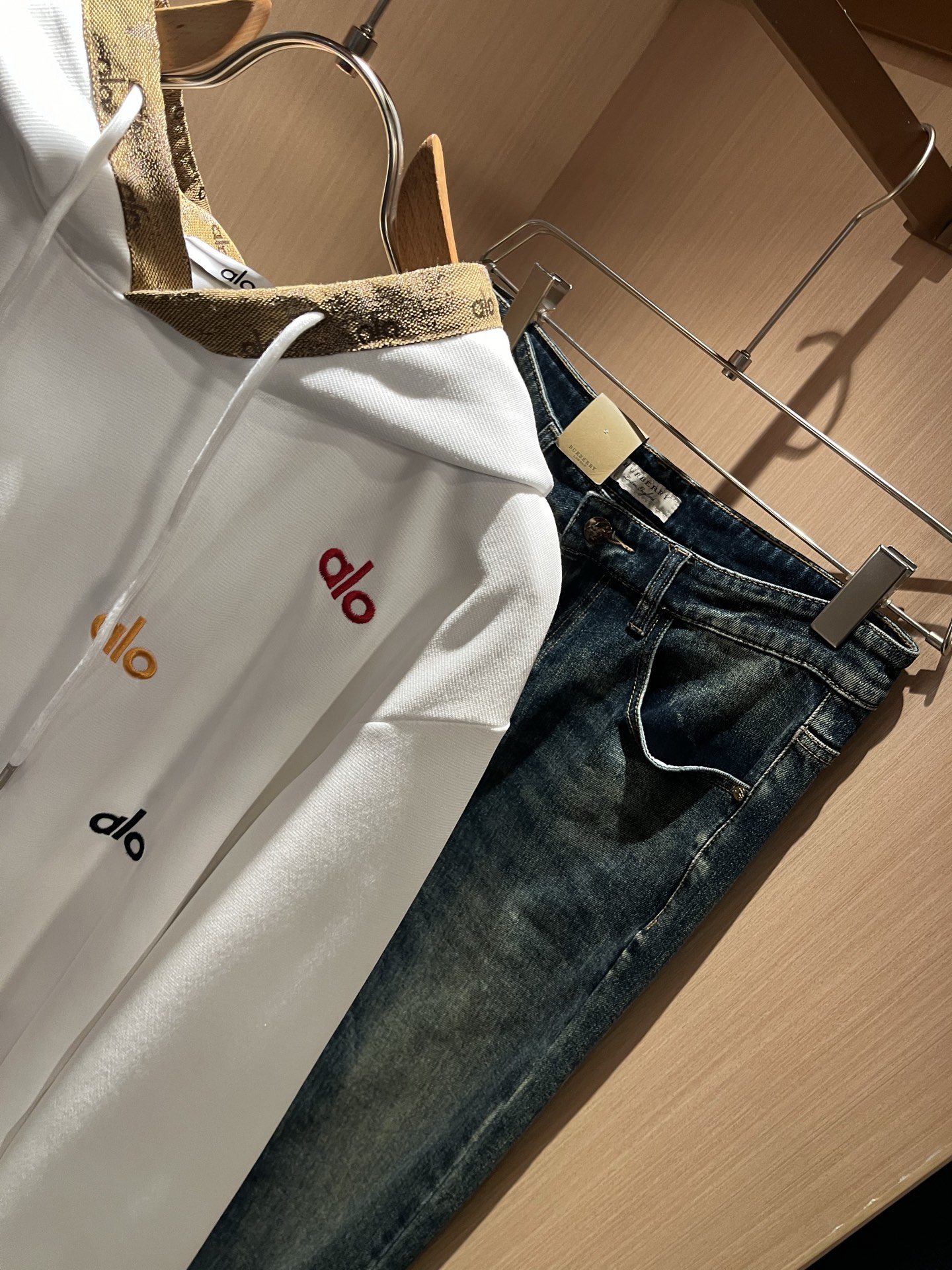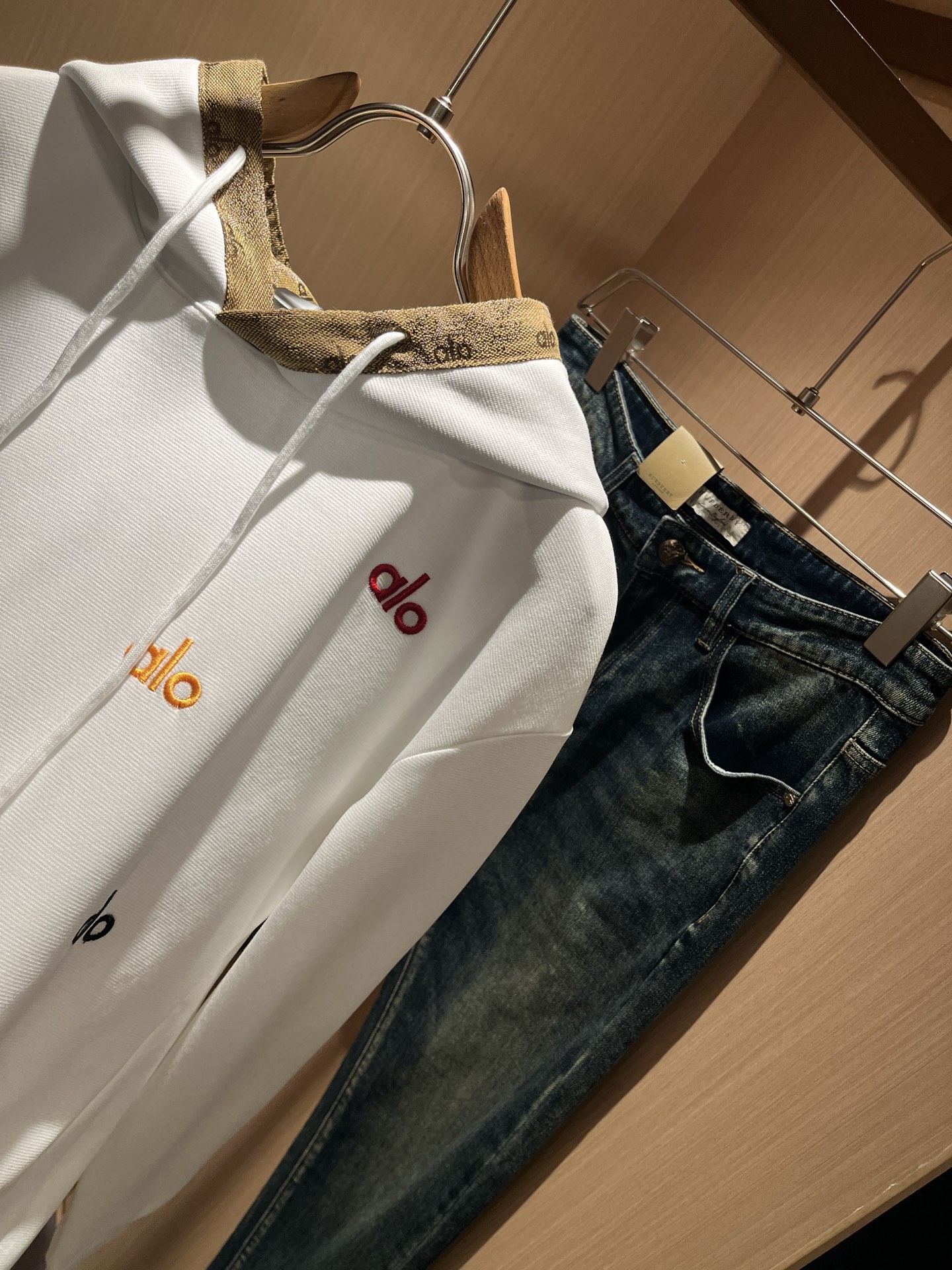 这款衣服是AAAAA 1:1 质量 (非常棒). 使用了和原版一模一样的材料. 商标部分也保持了和Alo Yoga一样. 图片拍摄是实物衣服拍摄, 您所收到的实物保证和我们图片一模一样.