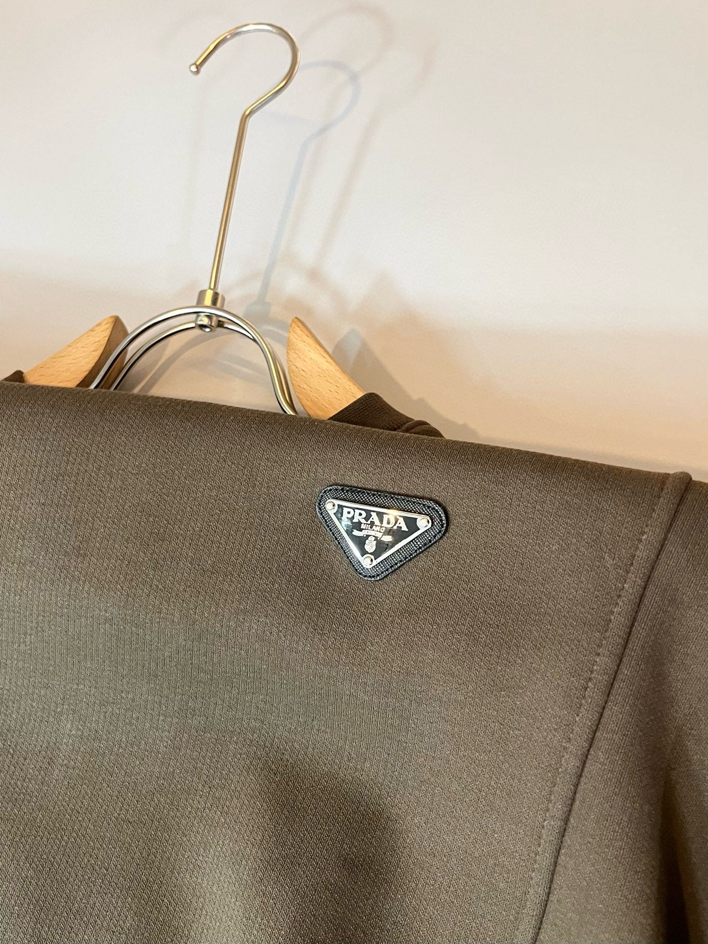 这款衣服是AAAAA 1:1 质量 (非常棒). 使用了和原版一模一样的材料. 商标部分也保持了和普拉达/Prada一样. 图片拍摄是实物衣服拍摄, 您所收到的实物保证和我们图片一模一样.
